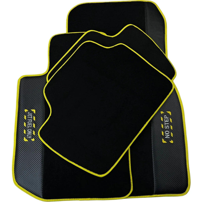 Czarne dywaniki samochodowe do BMW iX (2022-2024) | Edycja myśliwca | Żółty wykończenie