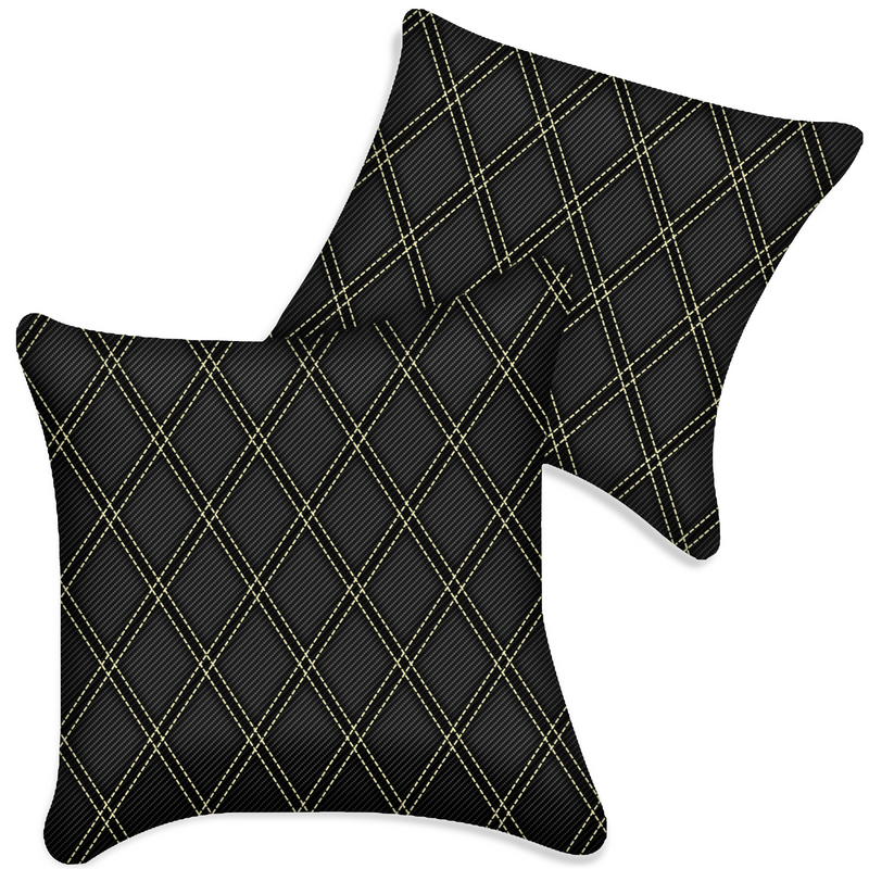 Personalizowane Czarne Poduszki z Włókna Węglowego Zestaw 2 dla Wszystkich Pojazdów | Podwójny Wzór Diamentowy