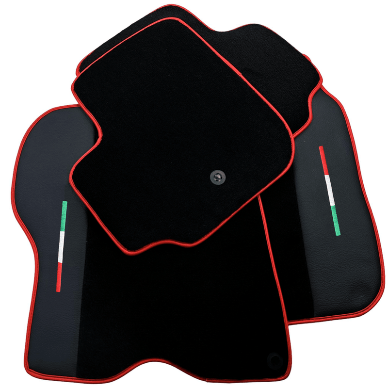 Czarne dywaniki samochodowe do Ferrari GTC4 Lusso (2016-2023) ze skórą i czerwonym wykończeniem