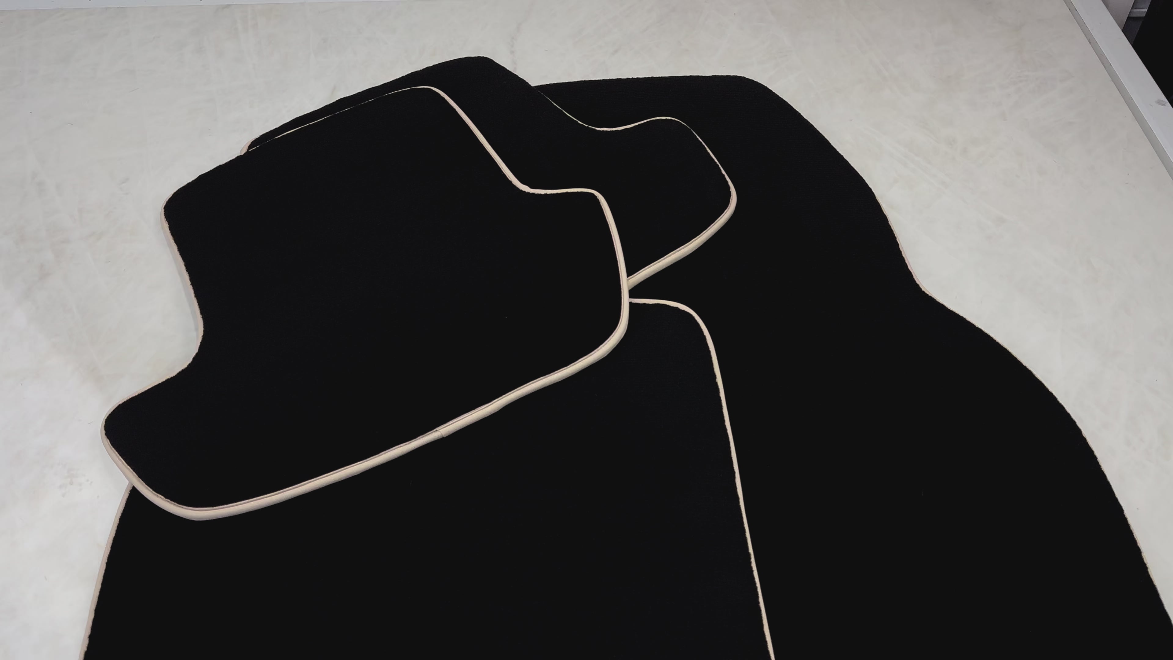 Czarne dywaniki samochodowe do Porsche Cayenne (2018-2023) | Beżowe wykończenie