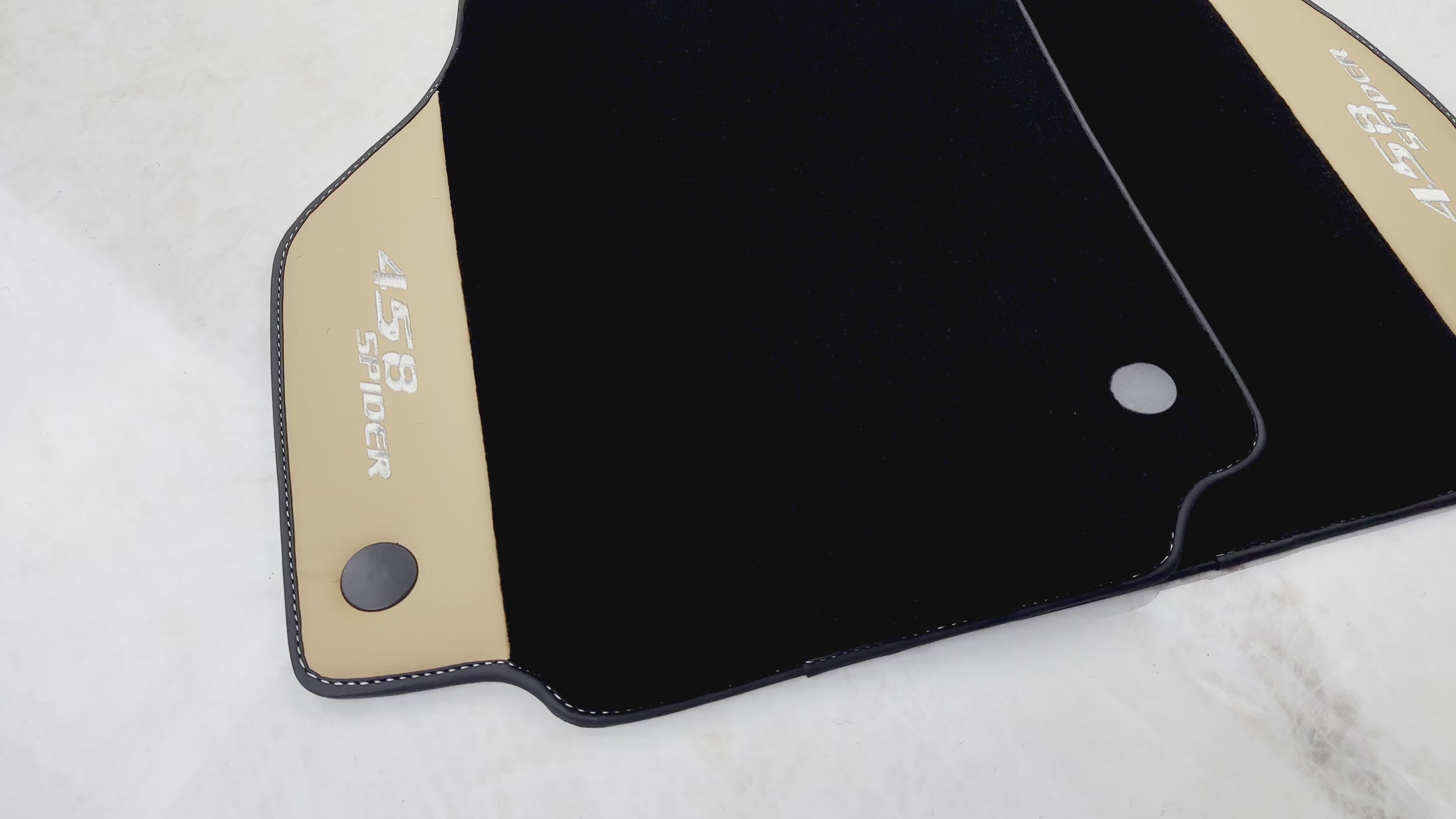 Te maty samochodowe do Ferrari 458 Spider (2012-2015) wykonane są z beżowej skóry Nappa Tradizione dla zapewnienia wysokiej jakości i trwałości. Maty oferują luksusowy, ale praktyczny wygląd, który podkreśla wnętrze pojazdu.