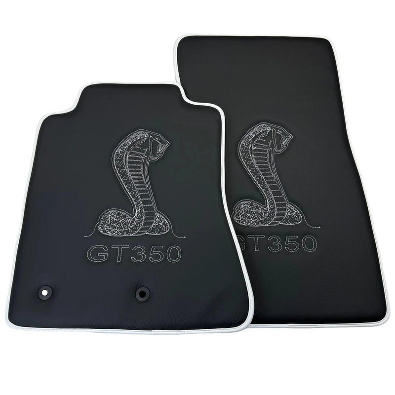 Skórzane dywaniki samochodowe do Ford Mustang GT350 Shelby (2015-2021) z przeszyciem Cobra | Biała lamówka