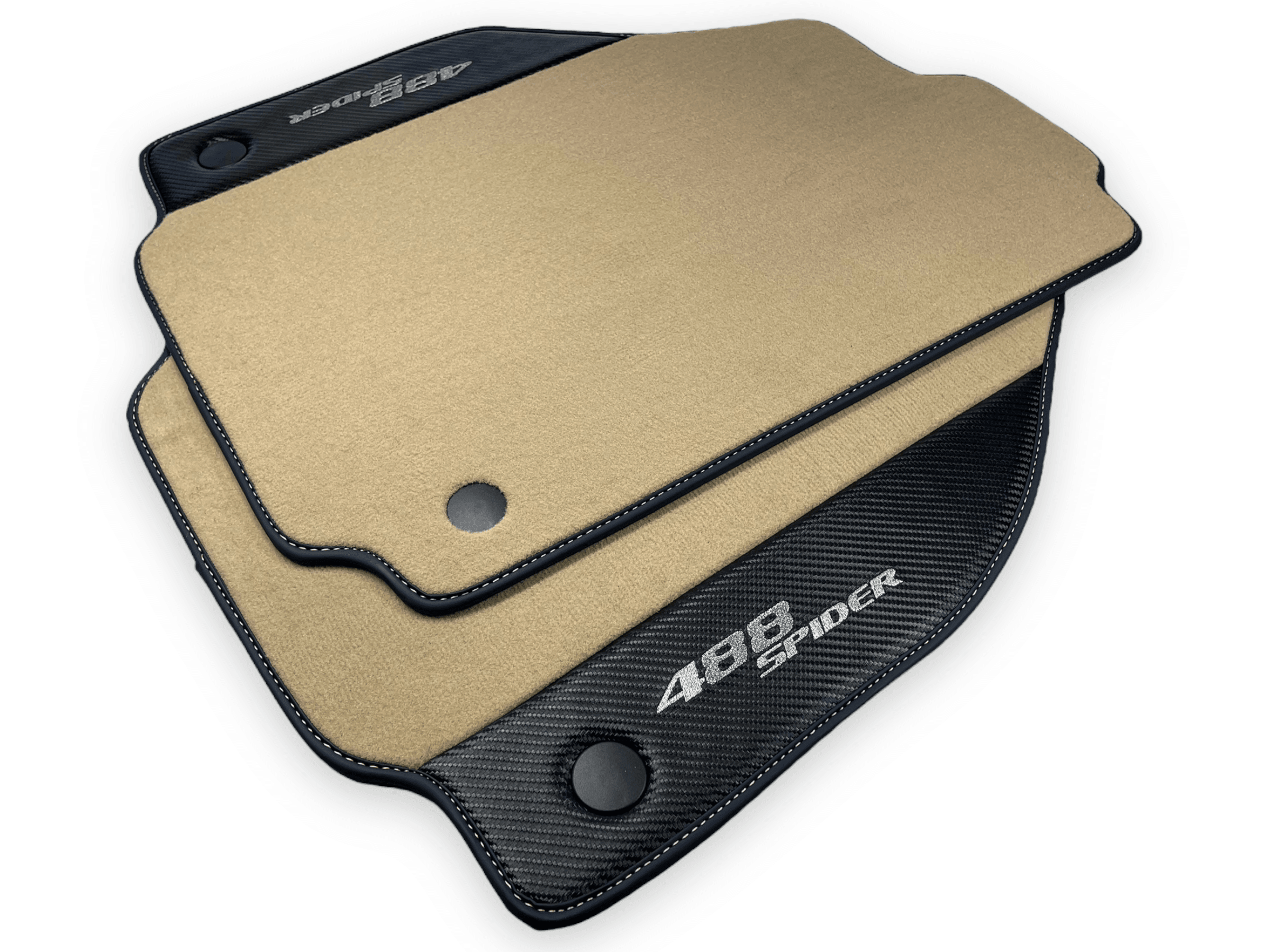Beżowe dywaniki samochodowe do Ferrari 488 Spider 2015-2022 z materiału z włókna węglowego