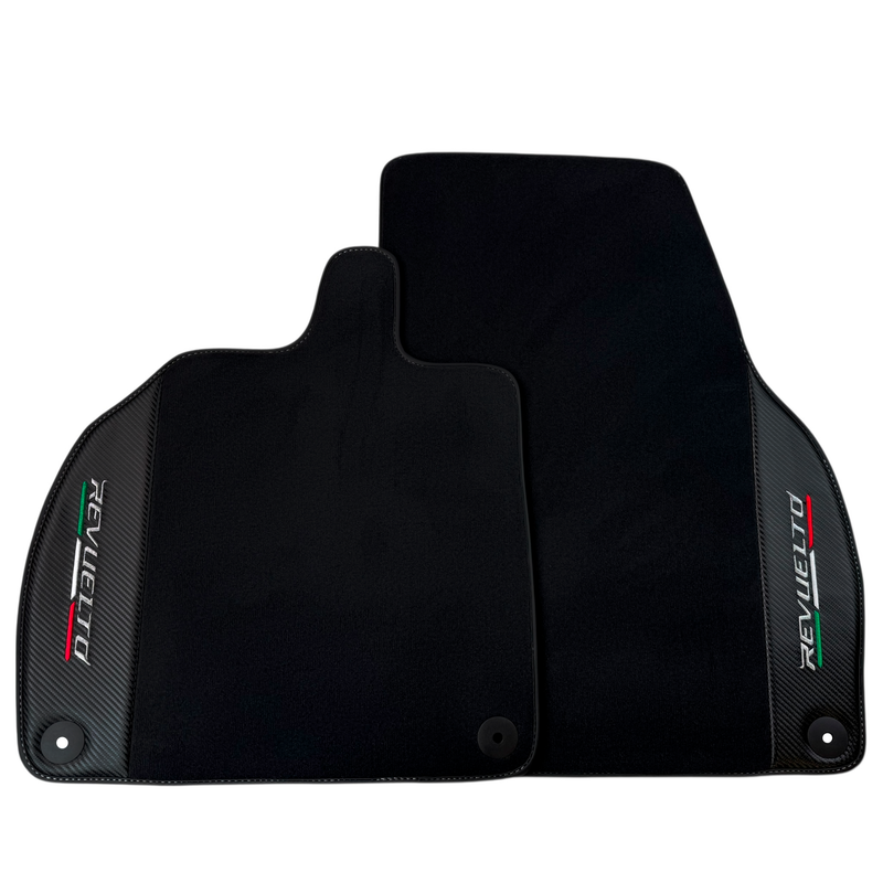 Black Floor Mats with Carbon Fiber Leather for Lamborghini Revuelto (2024-2025)