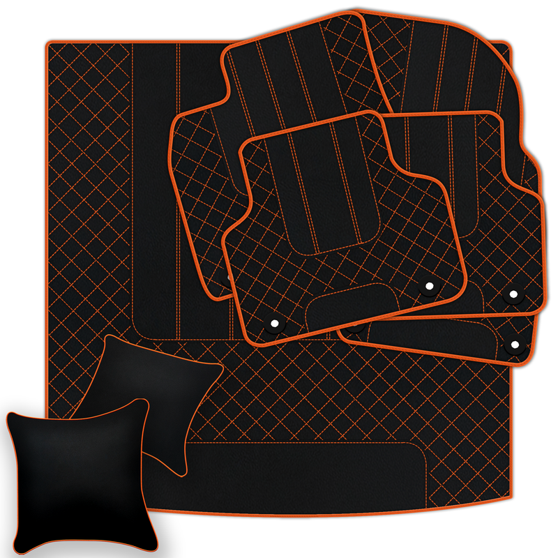 Transform your Bentley Flying Spur's cabin with these handcrafted black leather floor mats, expertly designed for 2005-2013 models. The signature AW1 design delivers refined elegance while safeguarding your original carpeting from daily wear. This comprehensive full set provides seamless coverage across all interior spaces, combining luxurious leather with exceptional durability. Each mat is precision-fitted to your vehicle's contours for a flawless installation experience. Perfect for owners who appreciate meticulous craftsmanship, these mats enhance your driving environment with understated sophistication and long-lasting protection.