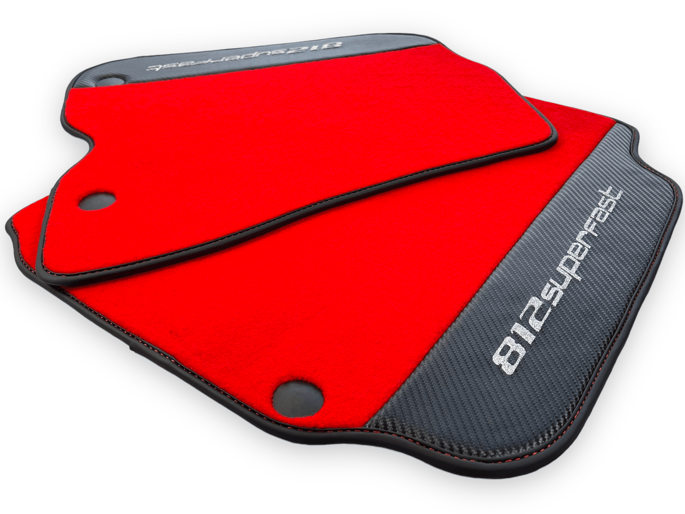 Red Floor Mats For Ferrari 812 Superfast With Carbon Fiber Leather