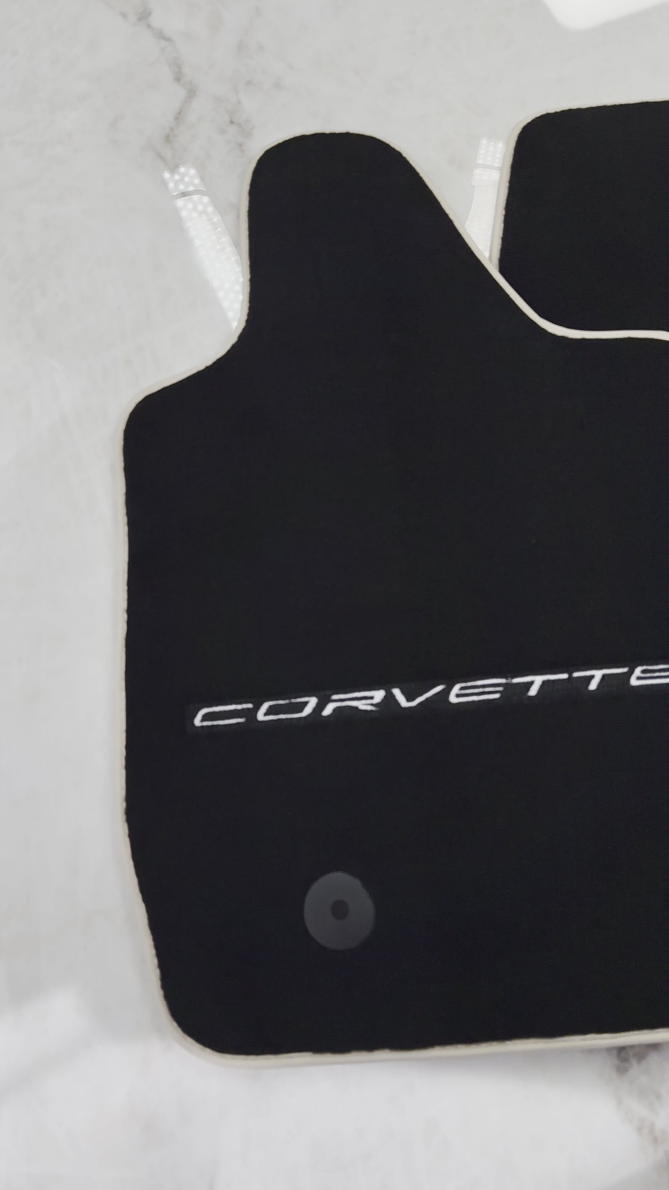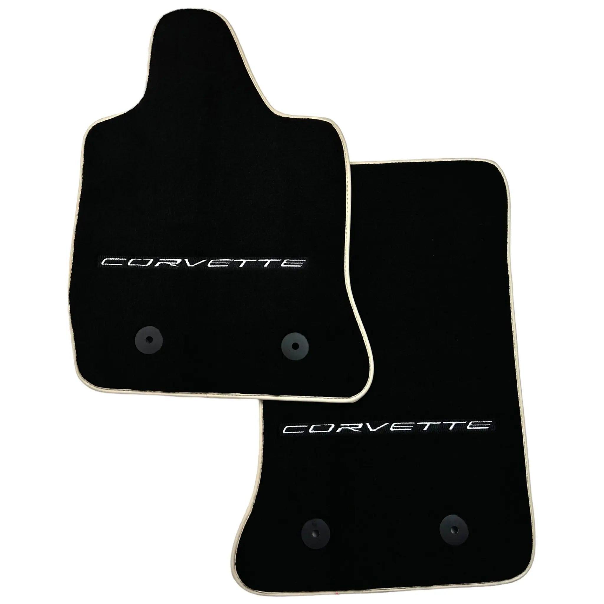 Black Floor Mats For Chevrolet Corvette C7 Convertible (2014-2019) with Beige Trim