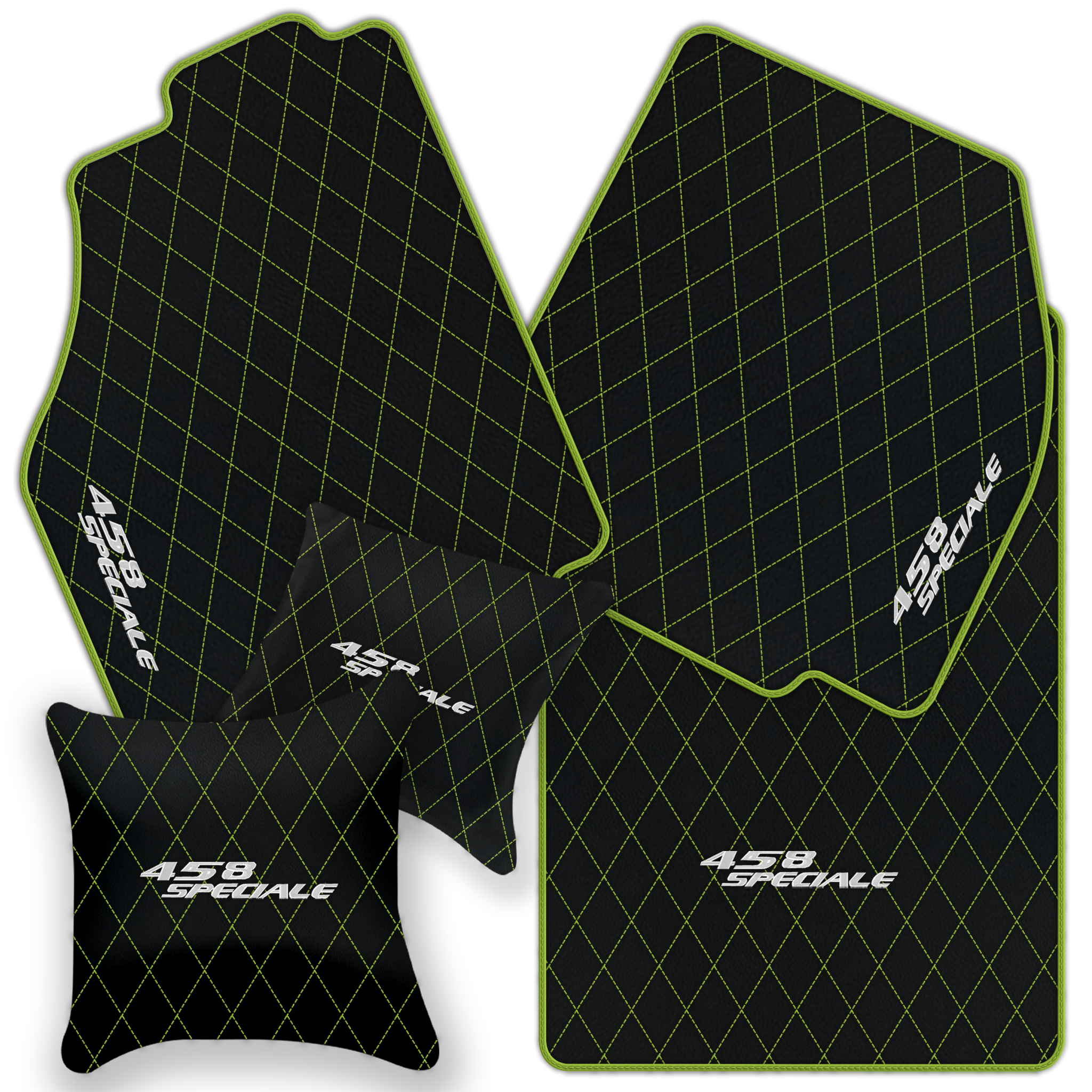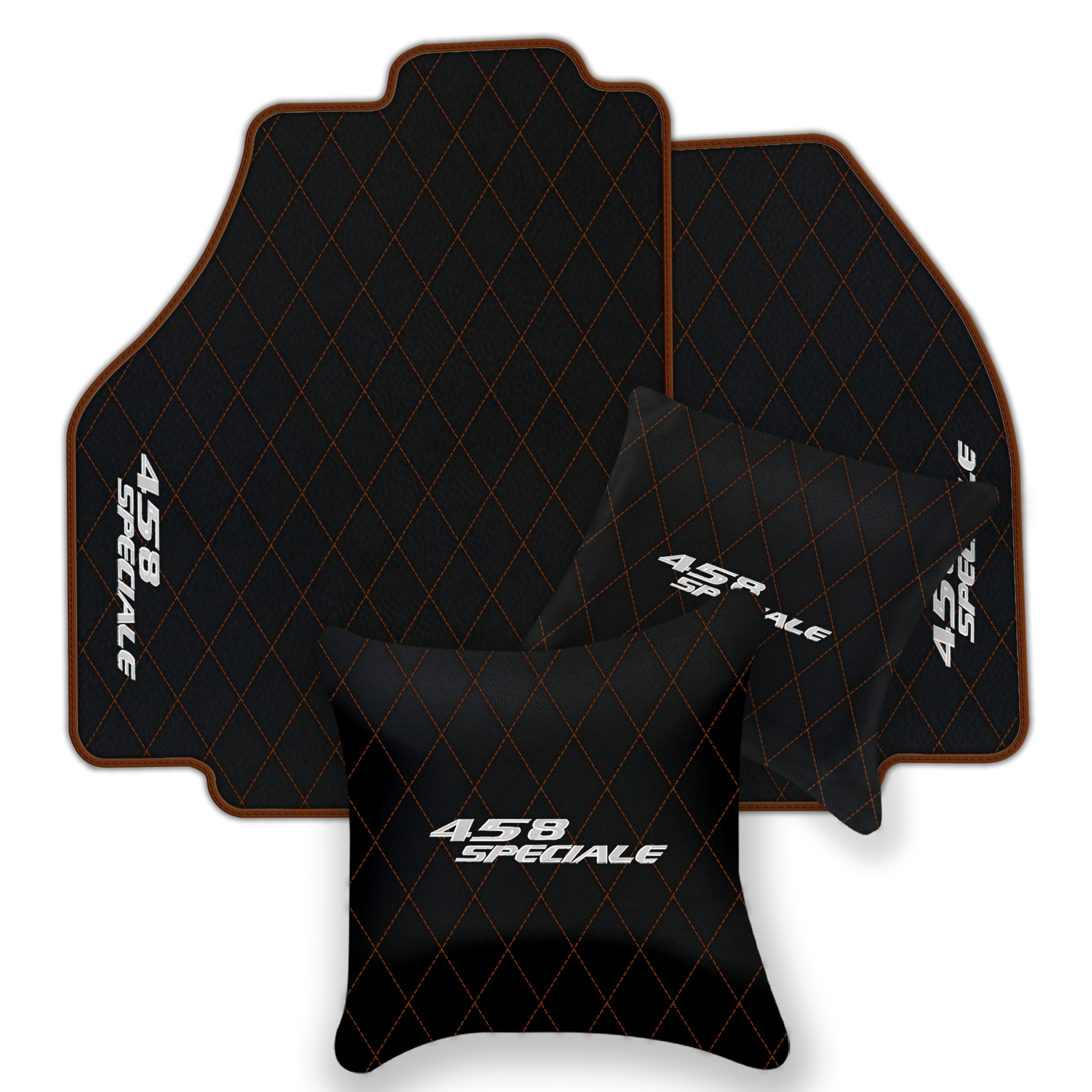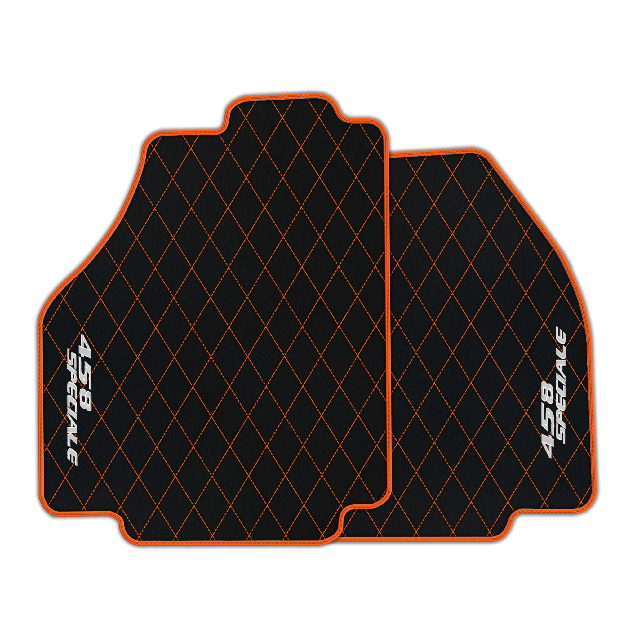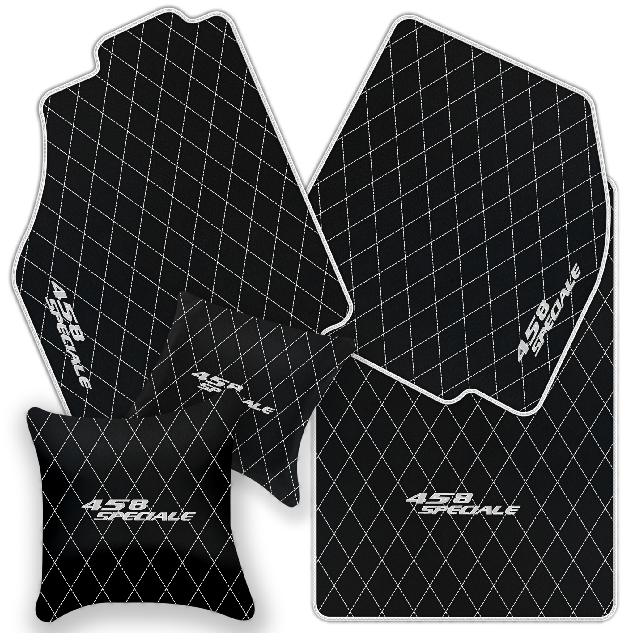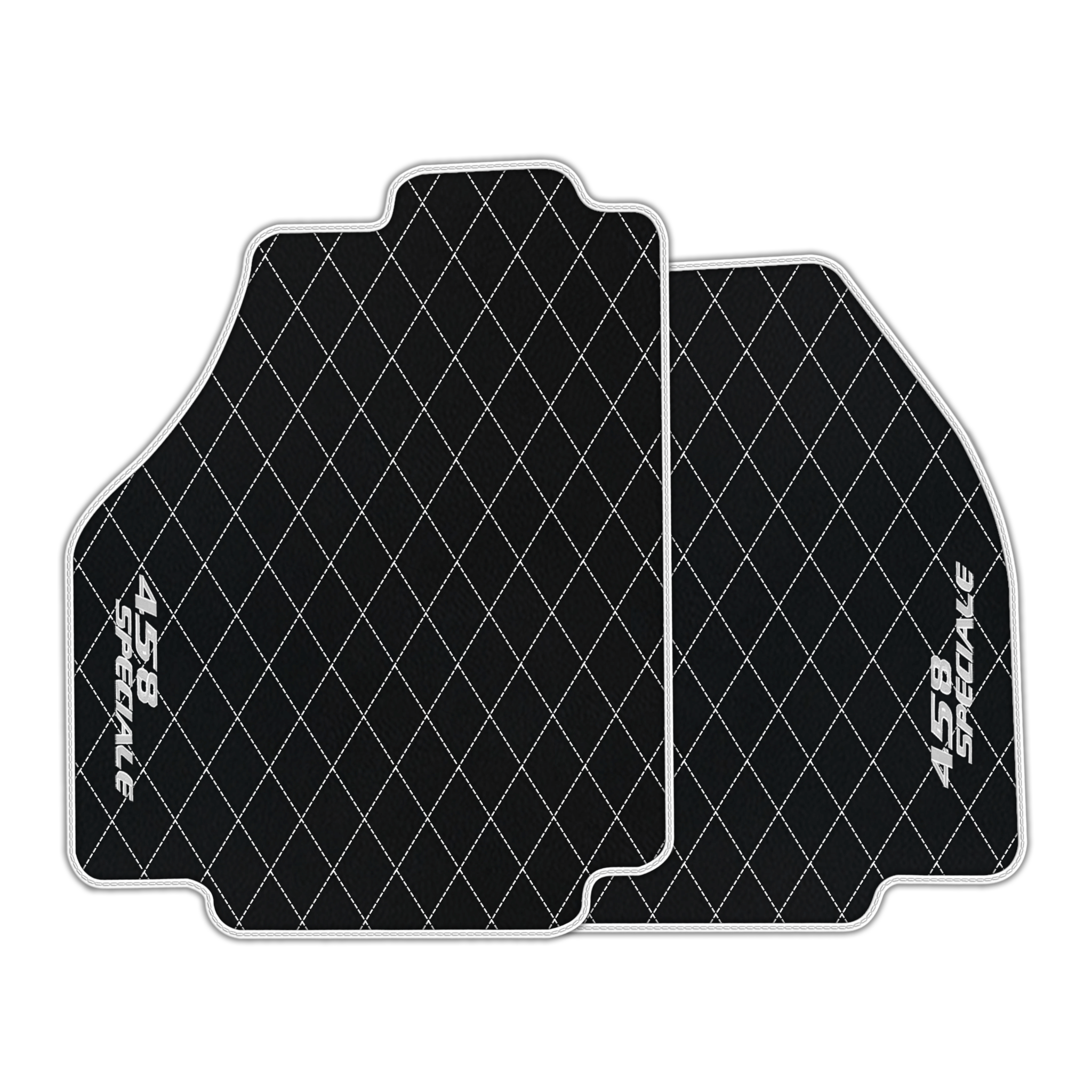 Upgrade your Ferrari 458 Speciale interior with premium leather floor mats. Choose from multiple design patterns and custom stitching to match your style.