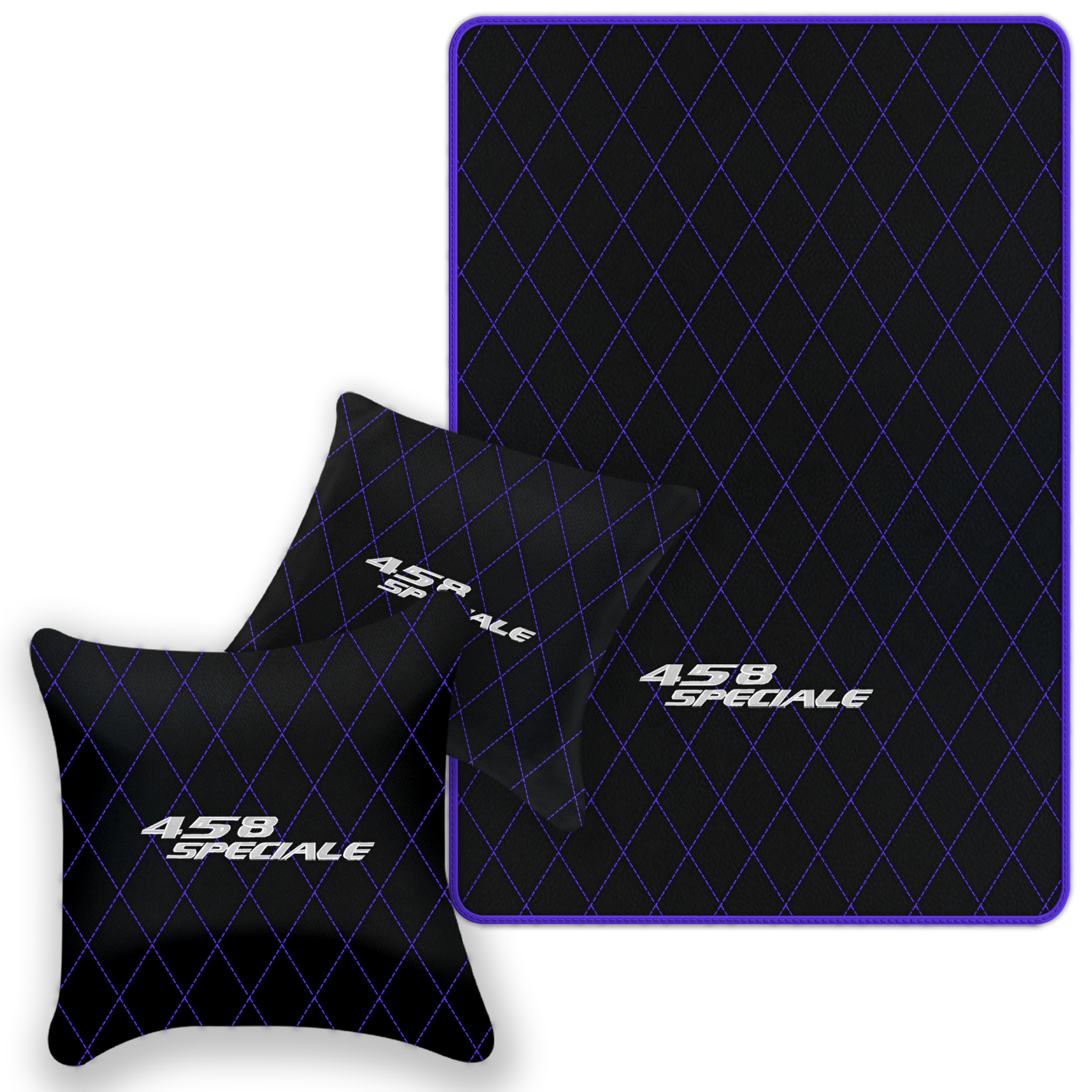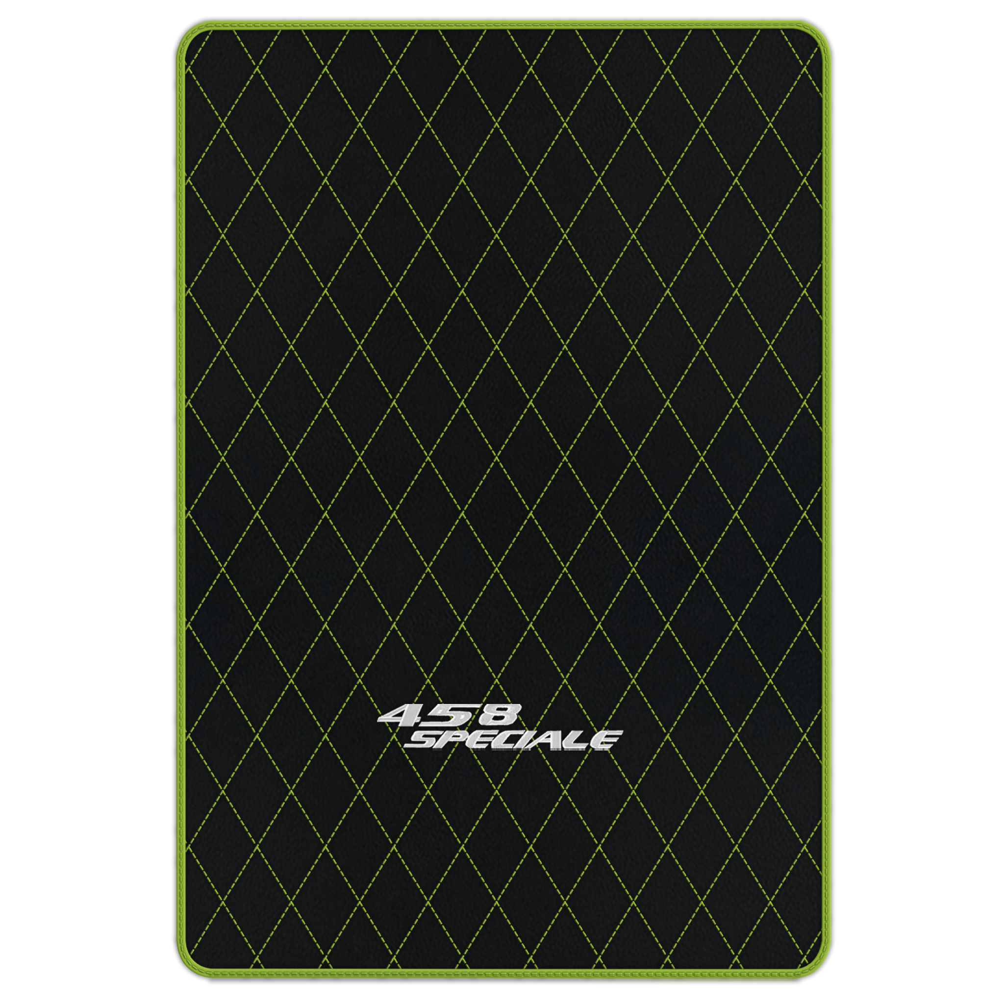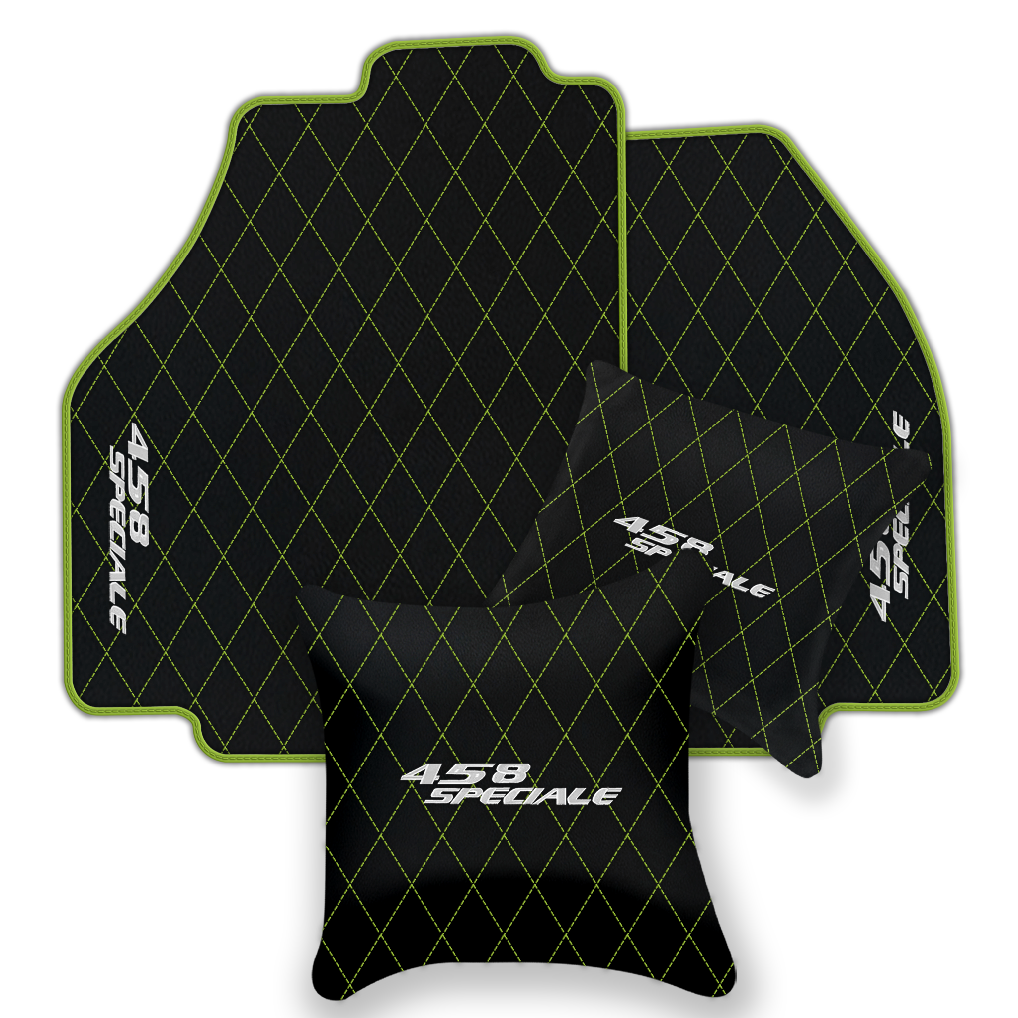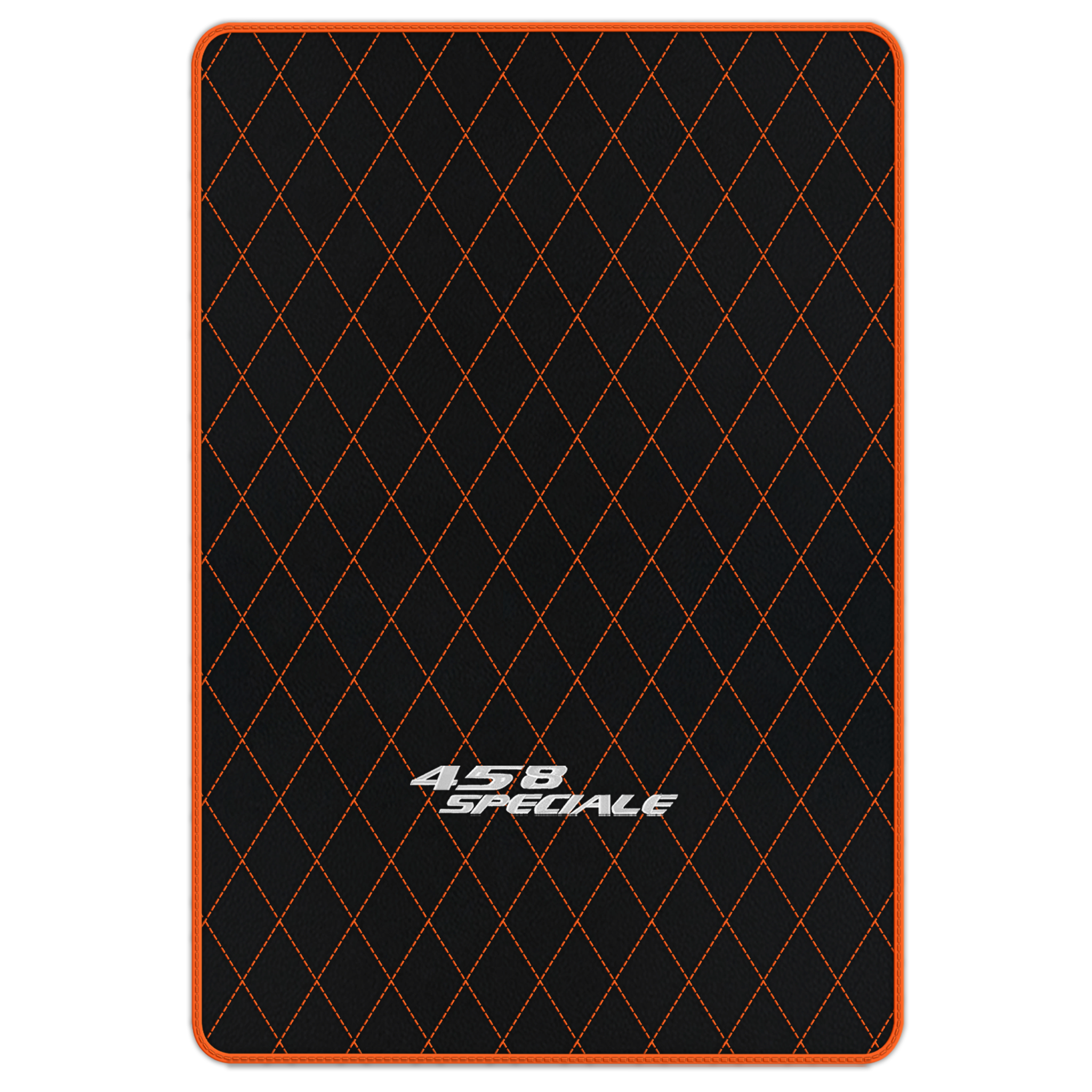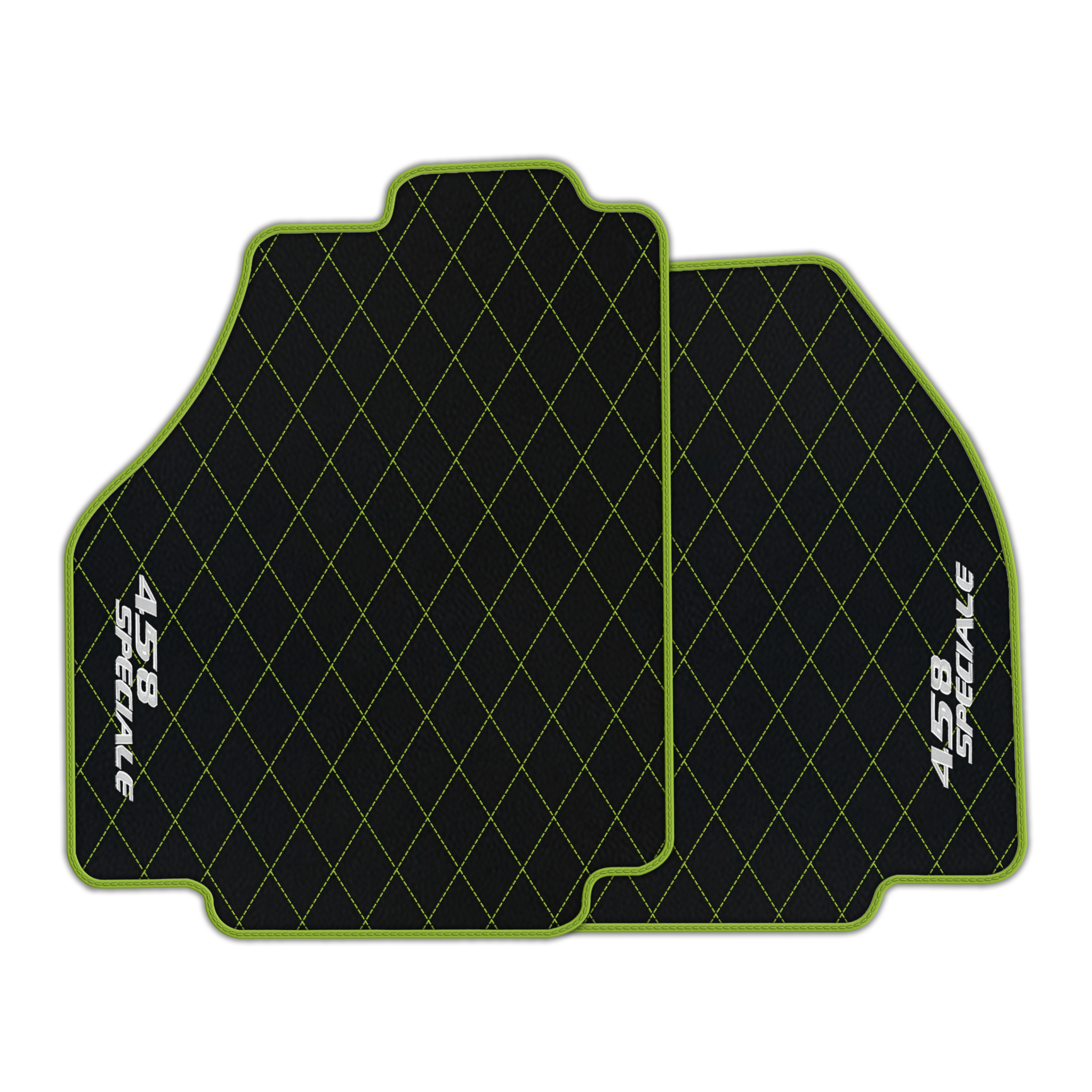 Upgrade your Ferrari 458 Speciale interior with premium leather floor mats. Choose from multiple design patterns and custom stitching to match your style.