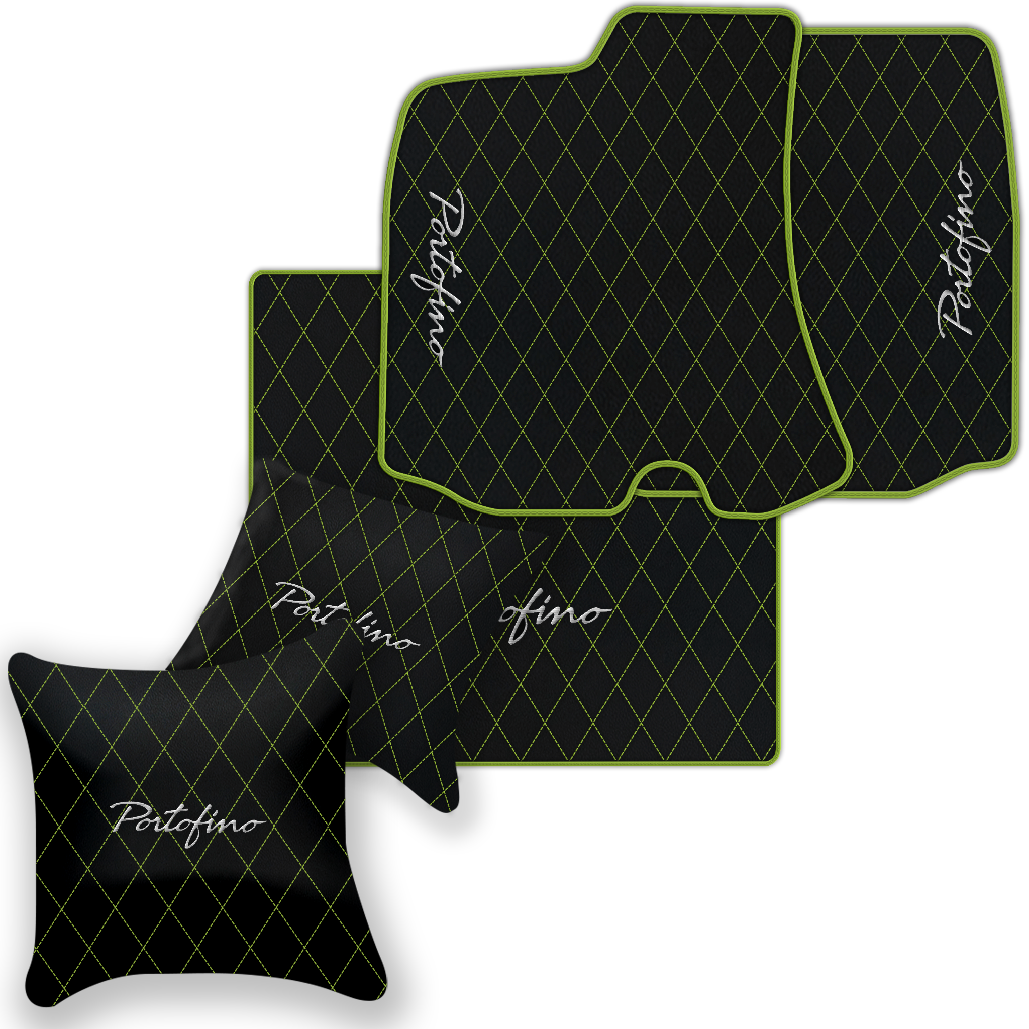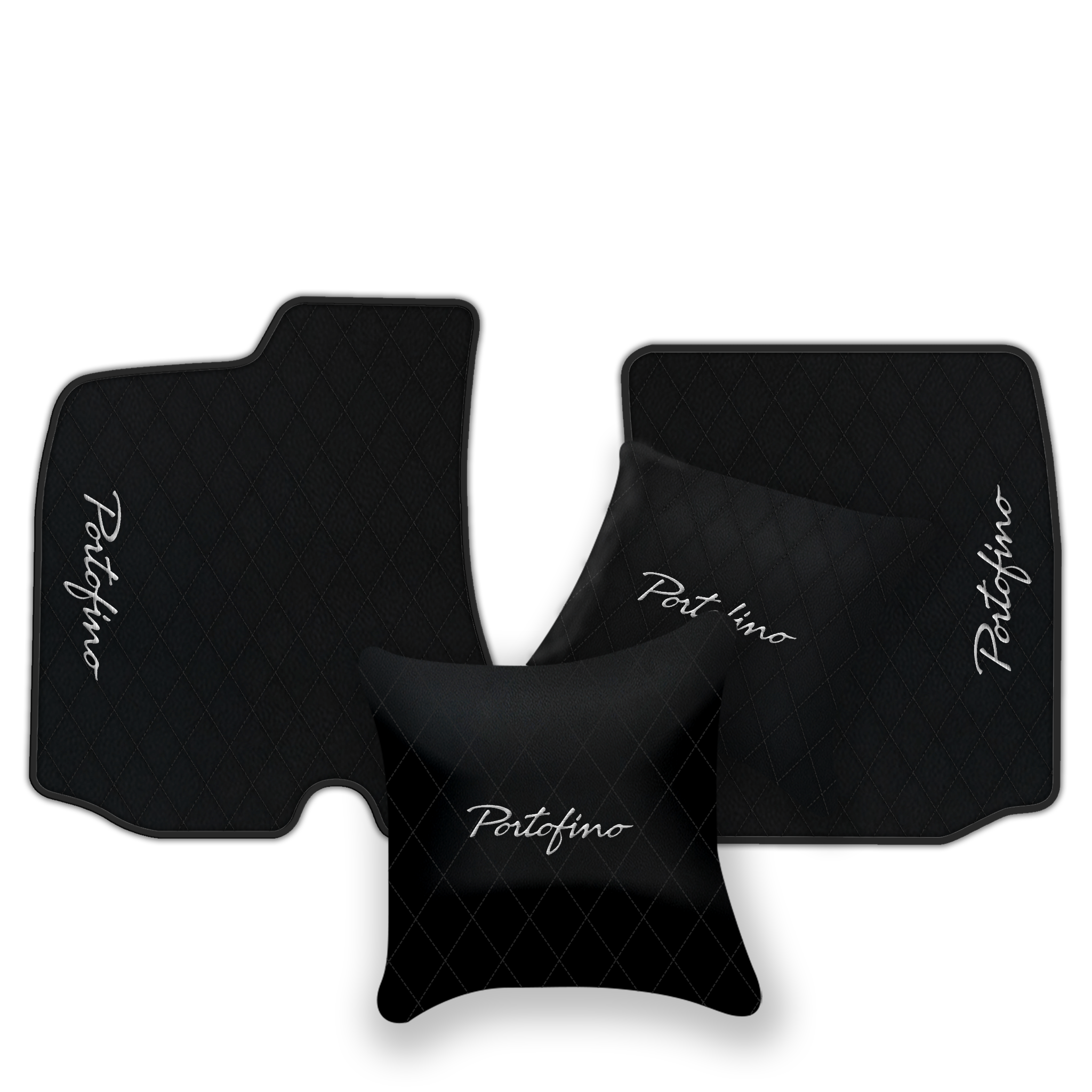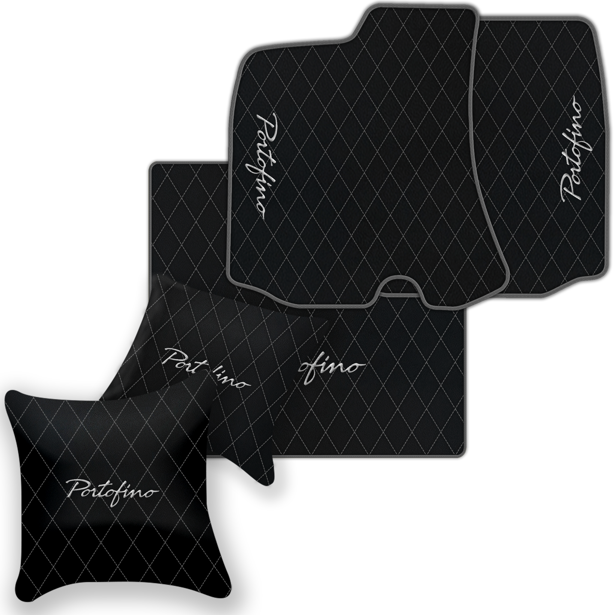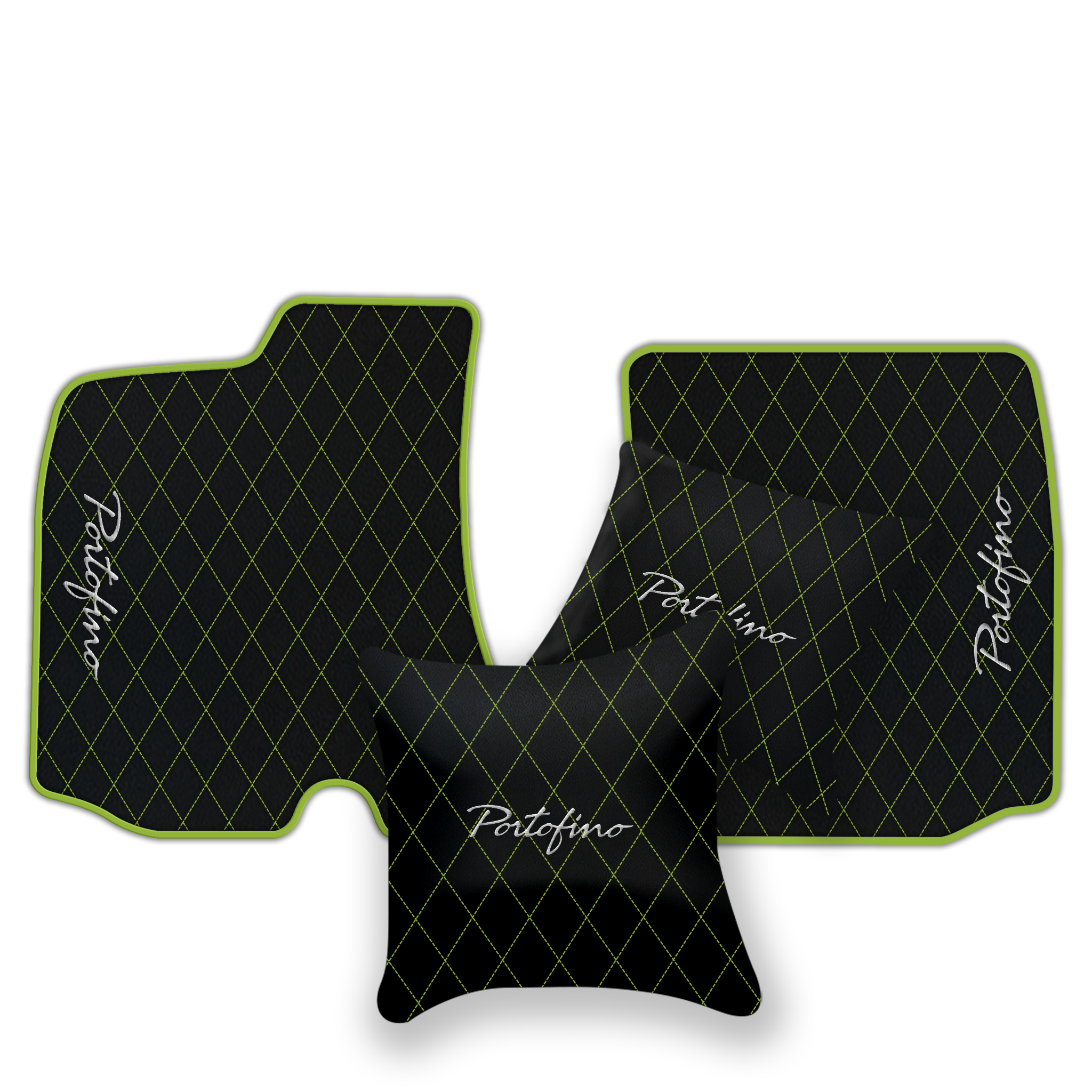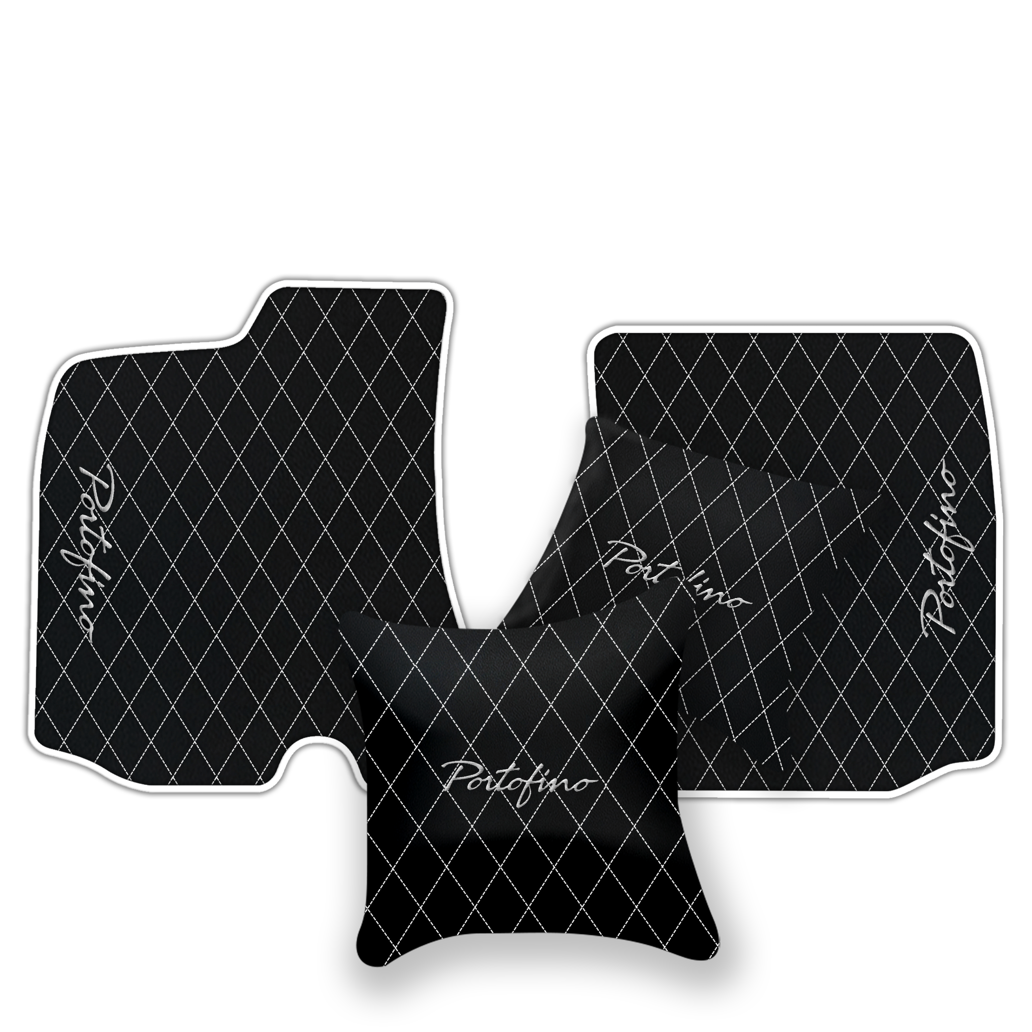Upgrade your Ferrari Portofino interior with premium leather floor mats. Choose from multiple design patterns and custom stitching to match your style.