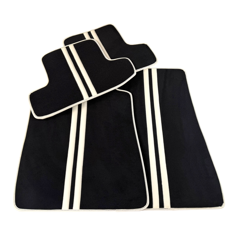 Black Floor Mats with White Leather Line for Ford GT500 Shelby (2015-2021)