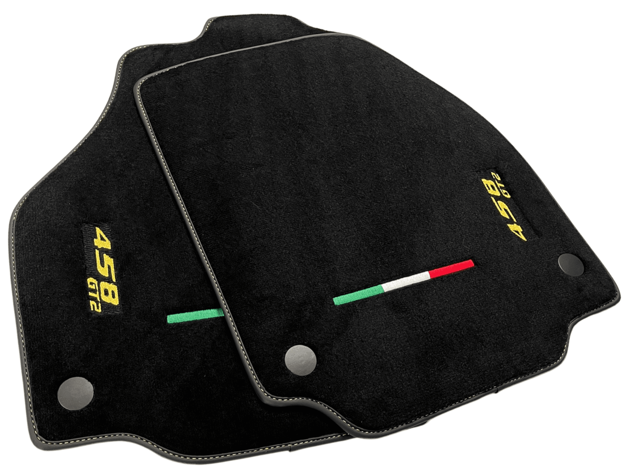Elevate the interior of your Ferrari 458 Gt2 2012-2015 with these sleek and stylish Black Floor Mats. Designed with yellow stitching for a pop of color, these mats not only provide a custom look but also protect your car's floor from wear and tear. Expertly crafted to fit perfectly in your vehicle, these mats are the perfect addition to any Ferrari enthusiast's collection.