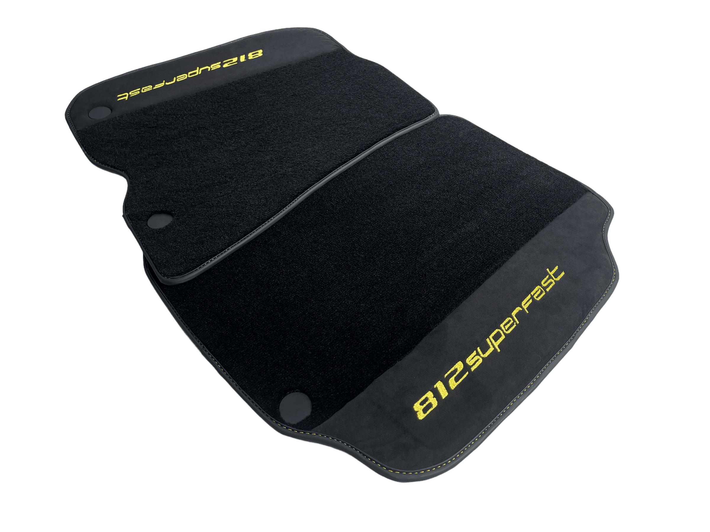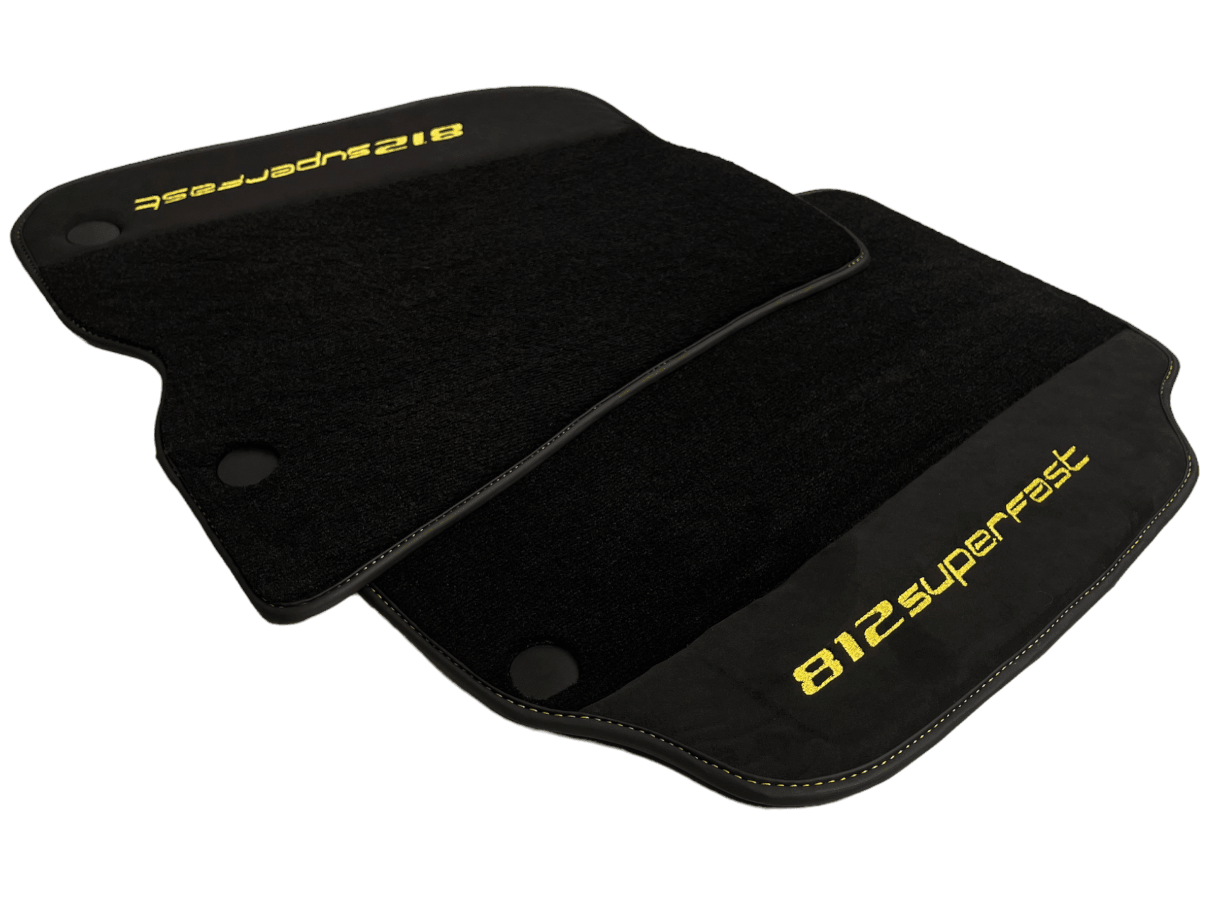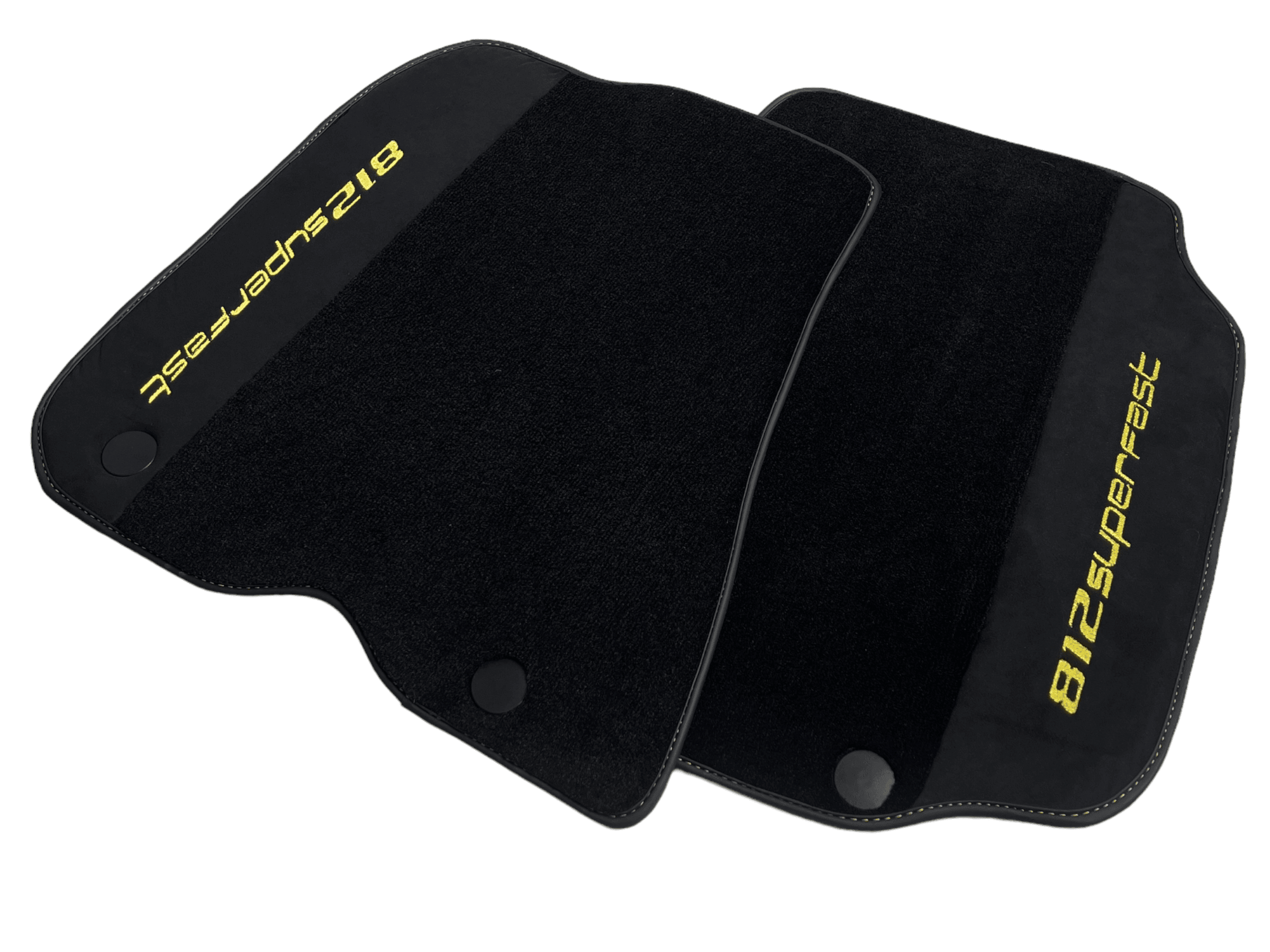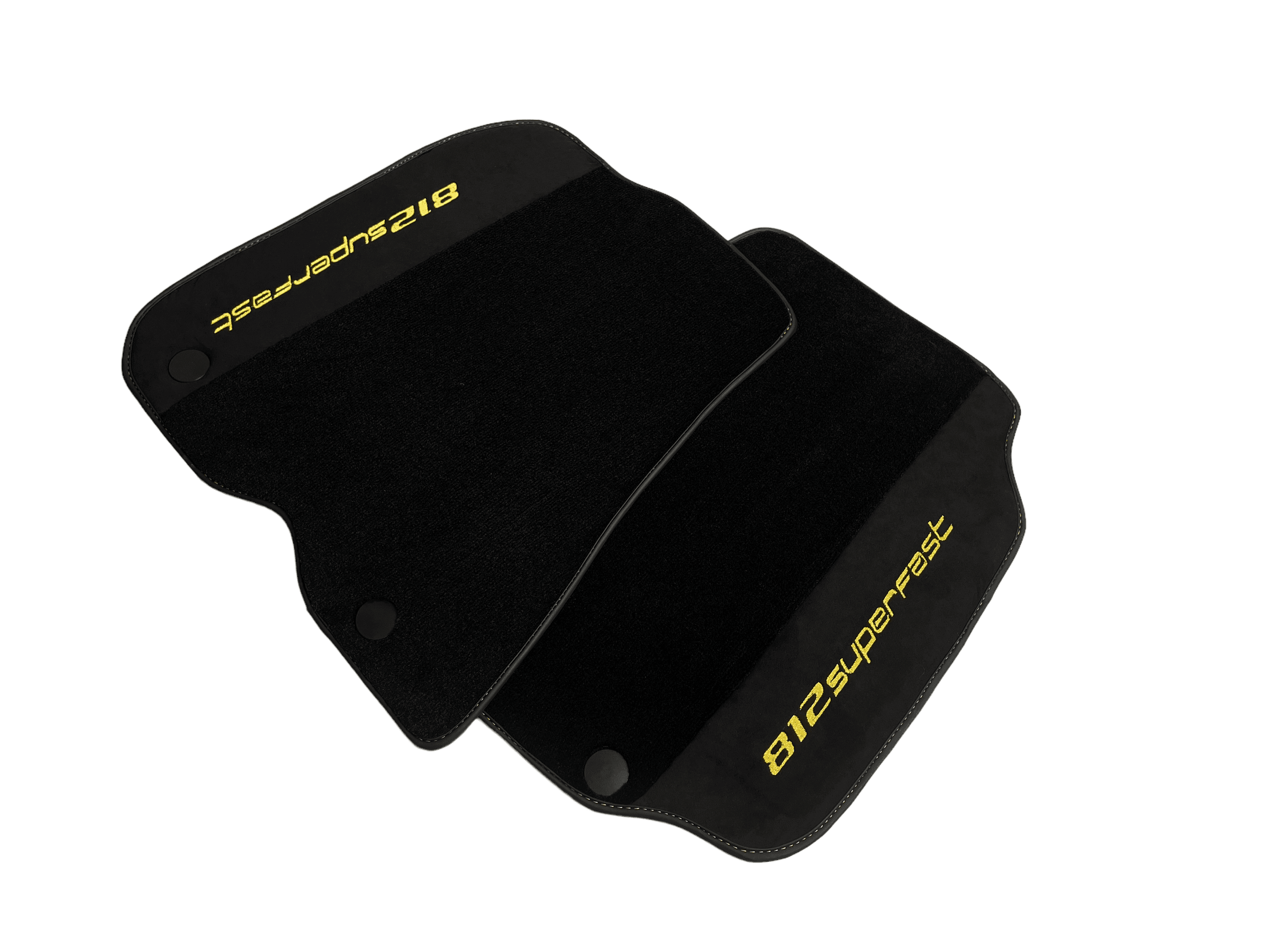 Black Floor Mats For Ferrari 812 Superfast With Alcantara Leather Yellow Edition