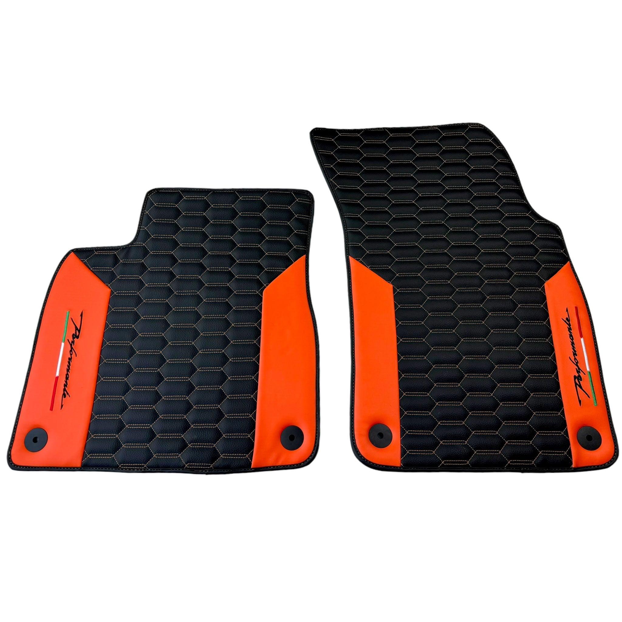 Black Floor Mats for Lamborghini Urus with Orange Leather