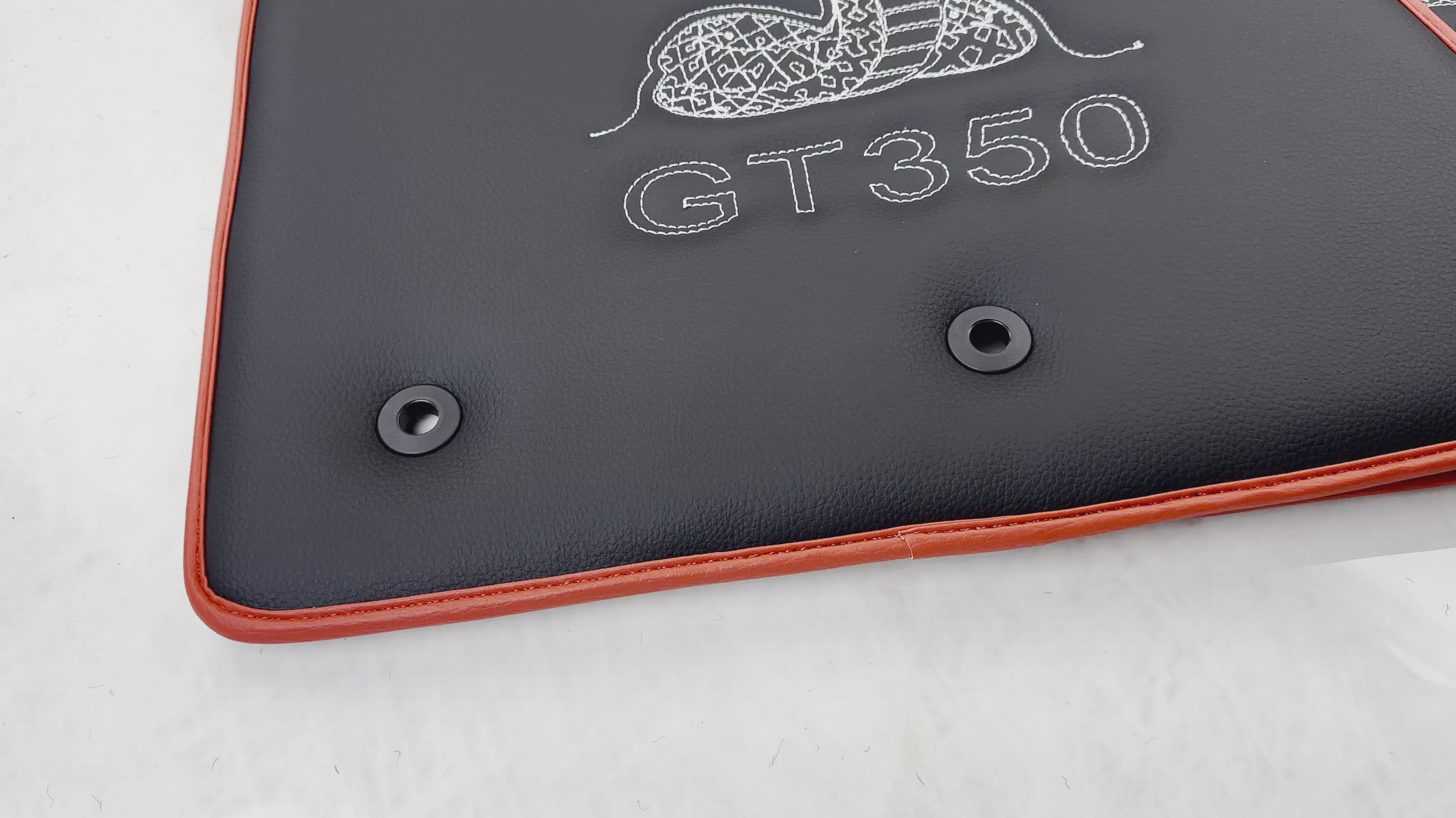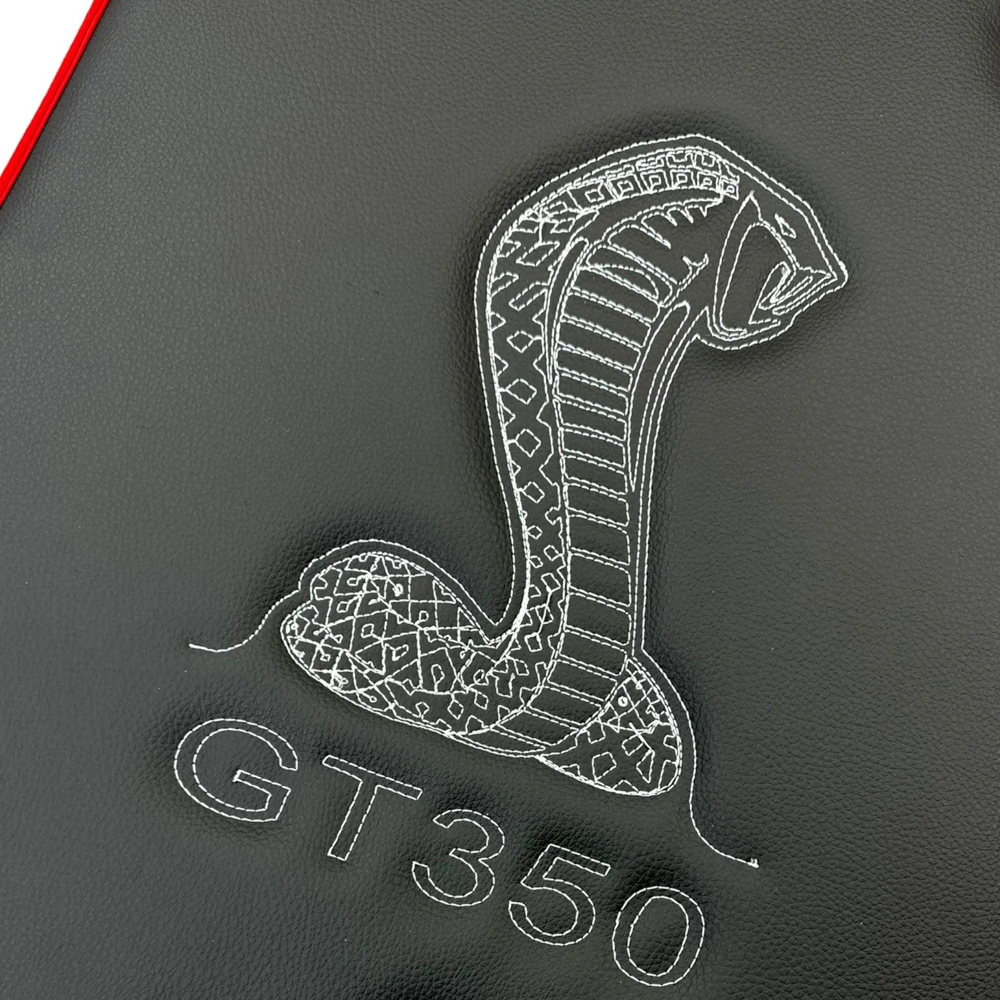 Leather Floor Mats with Red Trim for Ford Mustang GT350 Shelby (2015-2021) with Cobra Sewing