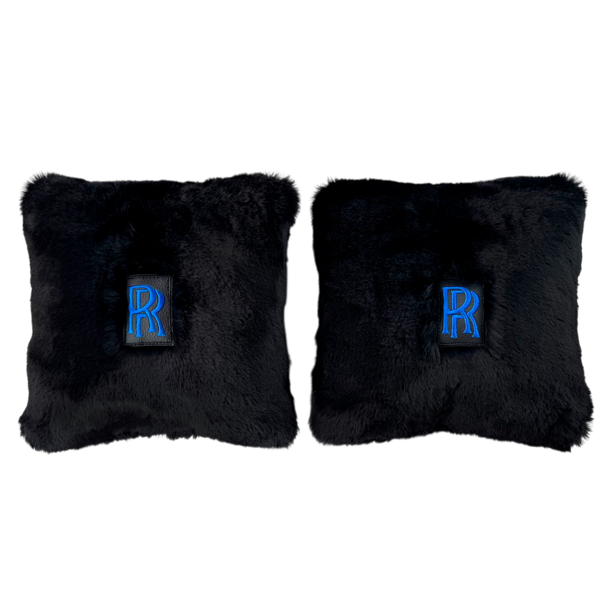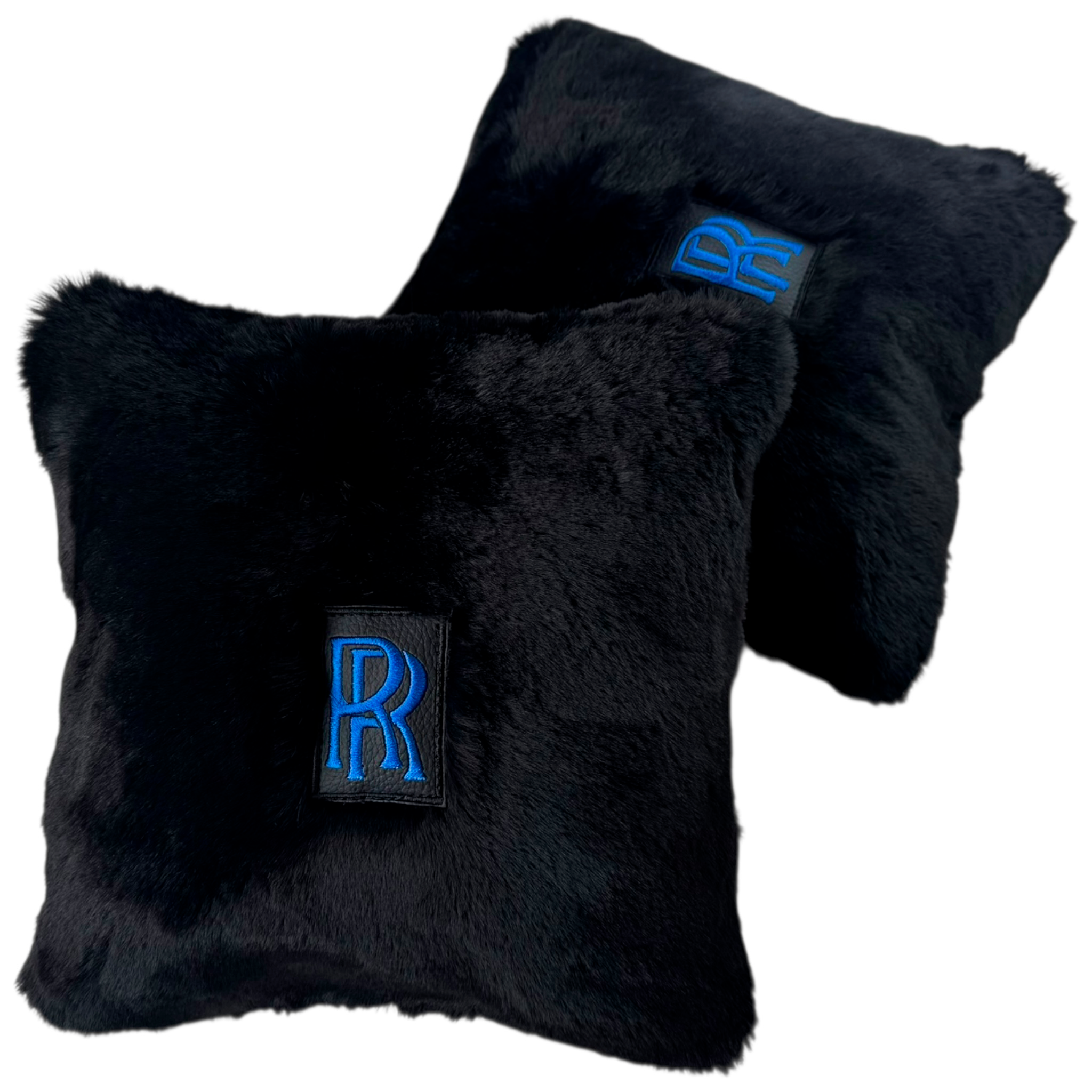 Black Sheepskin Pillows Design Set of 2 for Rolls-Royce Vehicles - Blue Logo