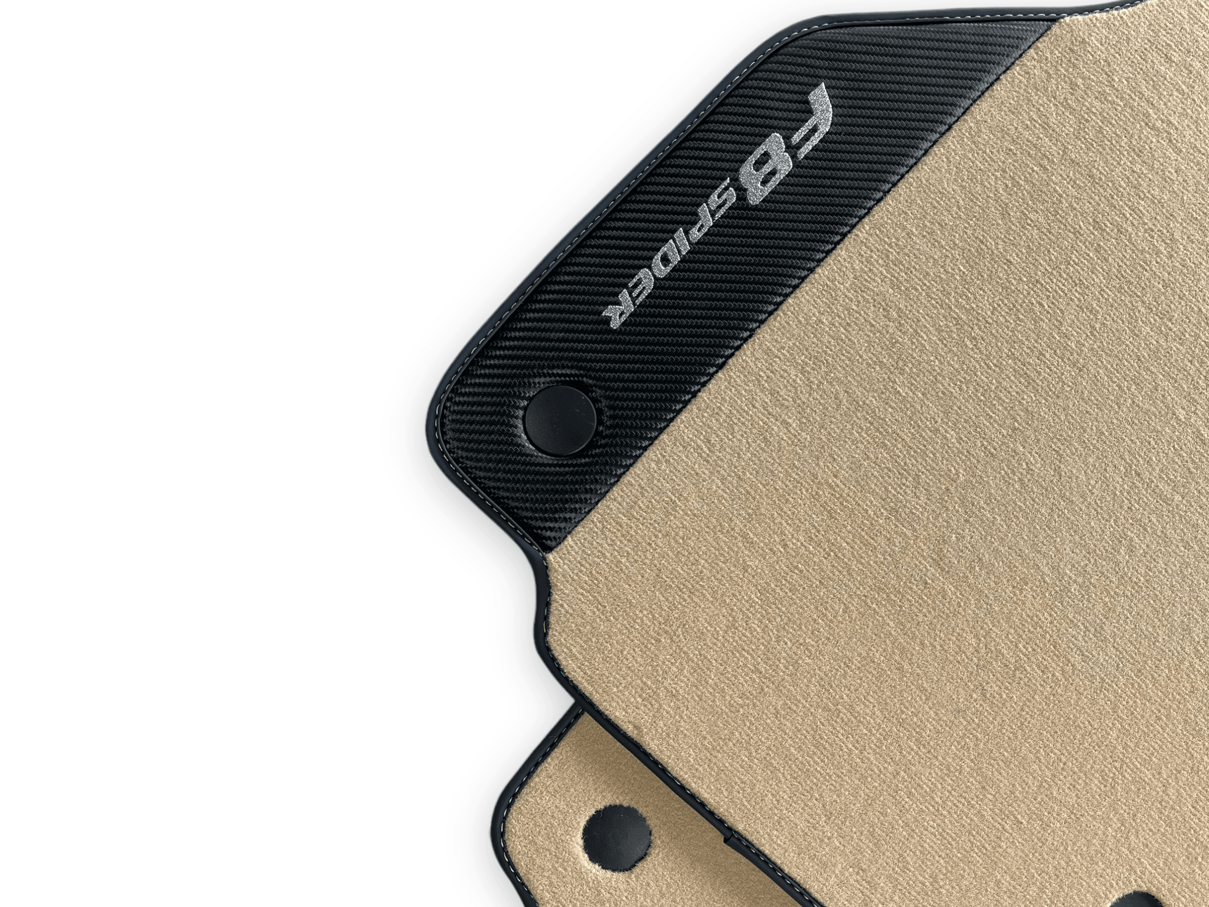 Protect your Ferrari F8 Spider 2019-2022's interior with these Beige Floor Mats. Made with Carbon Fiber Leather, these mats provide a sleek and luxurious touch. Keep your car's floor clean and stylish while adding a touch of elegance. Expertly crafted for a perfect fit, these mats will elevate your driving experience.