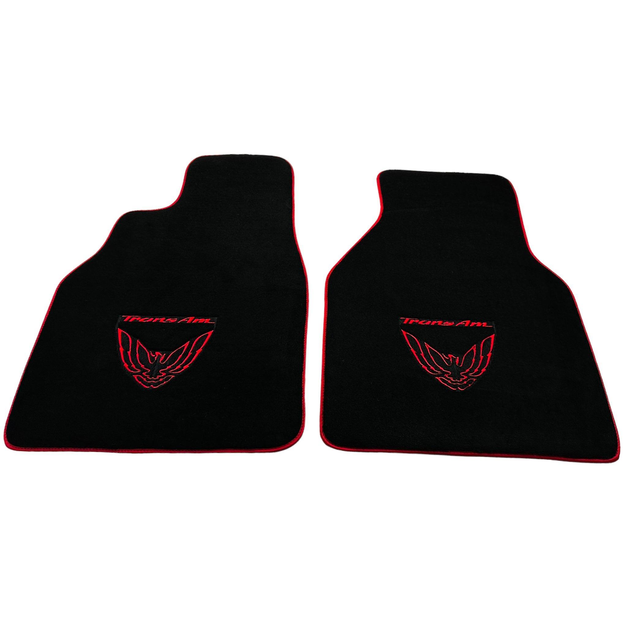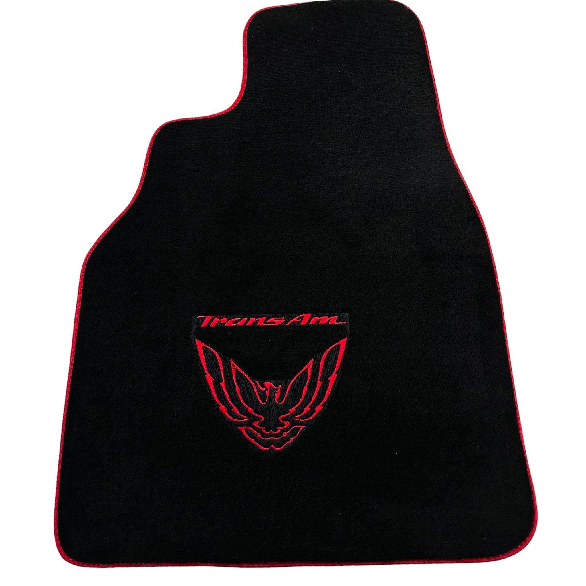 Bring your Pontiac Firebird to life with these officially licensed TransAm Logo floor mats. Crafted to perfection for 1970-1981 models, these stylish black mats feature a unique red trim design. Keep your classic car looking sleek and stylish.