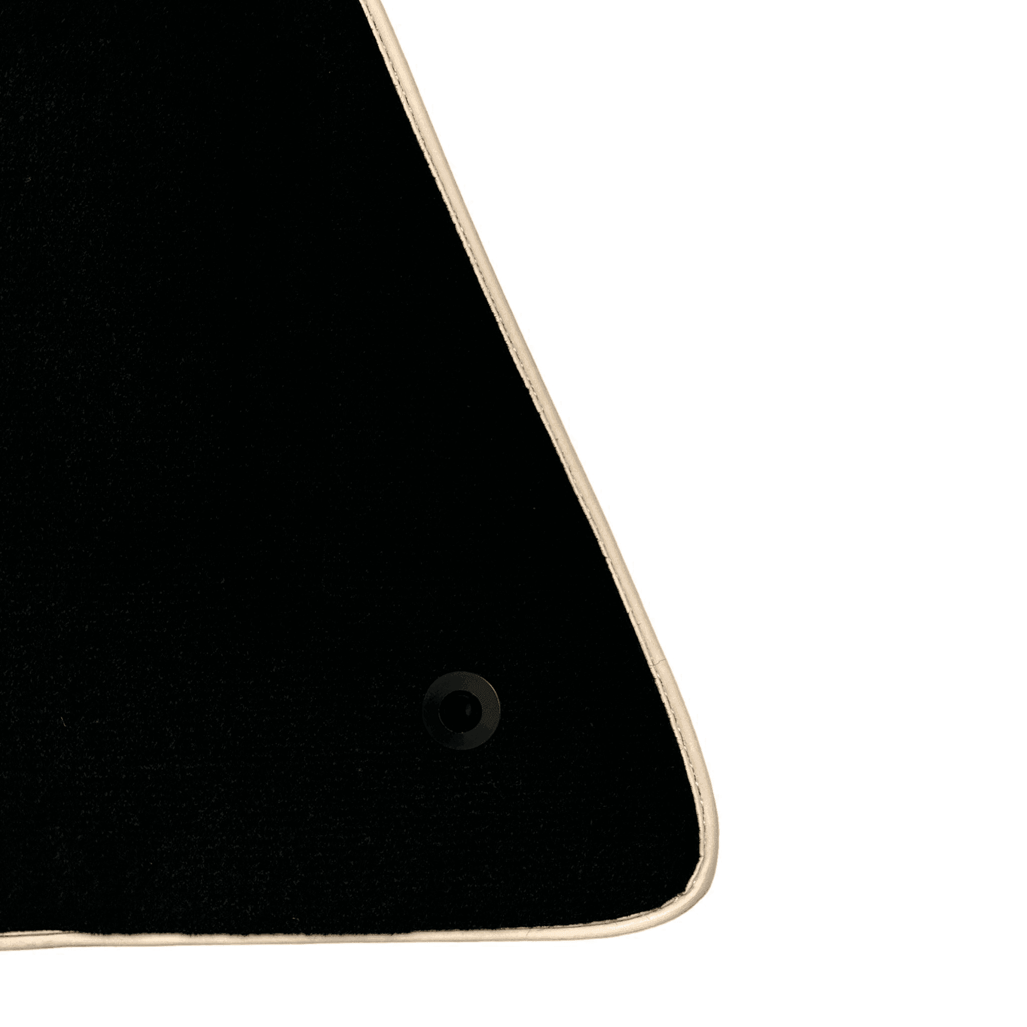 Experience enhanced luxury with this set of black floor mats for the Ferrari 296 GTB (2022-2024). Crafted from premium materials and finished with beige trim, these mats will add a luxurious touch to your interior. Enjoy a perfect fit and maximum protection while also upgrading your vehicle's aesthetic.