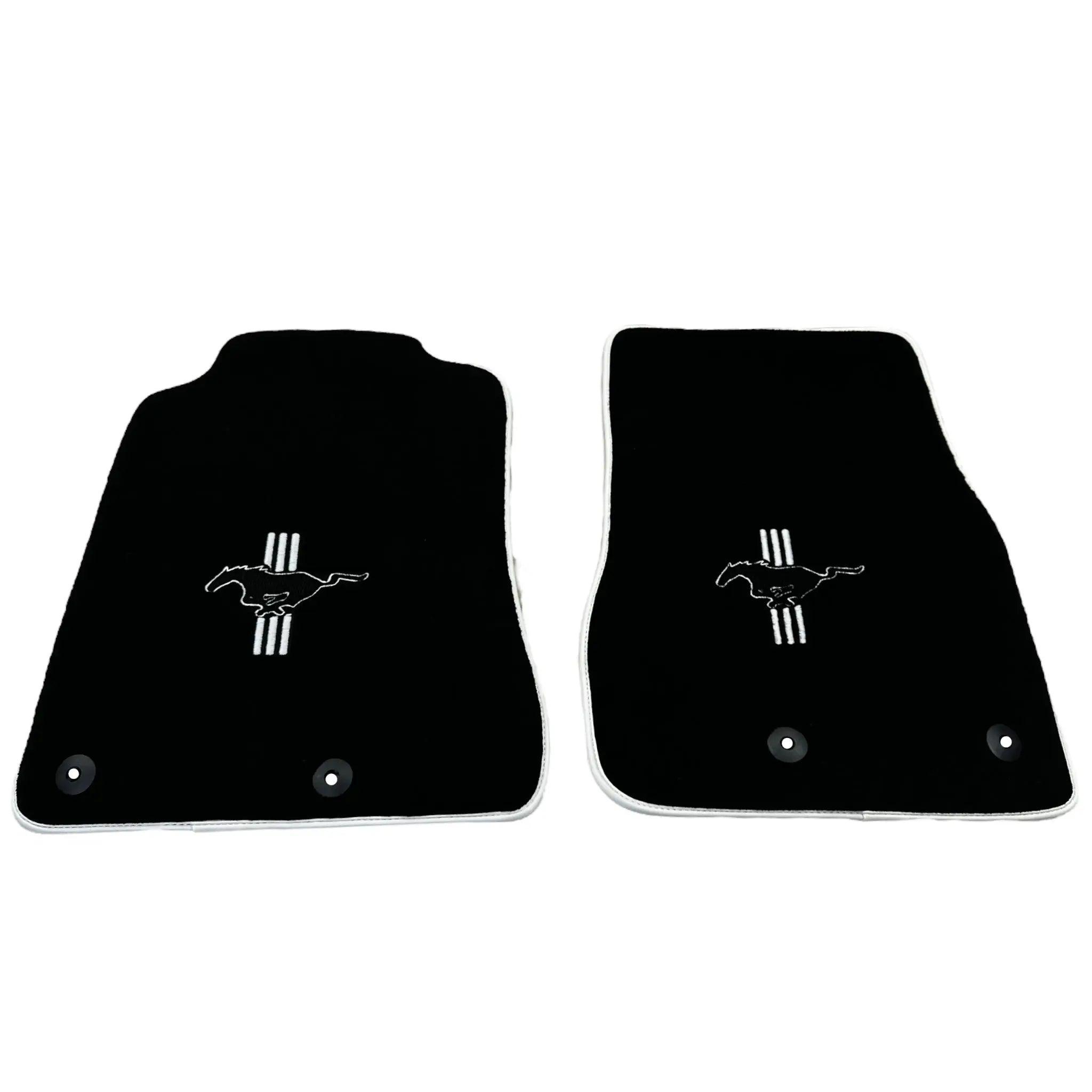 Black Floor Mats with White Trim for Ford Mustang V FL (2011-2014) With Pony