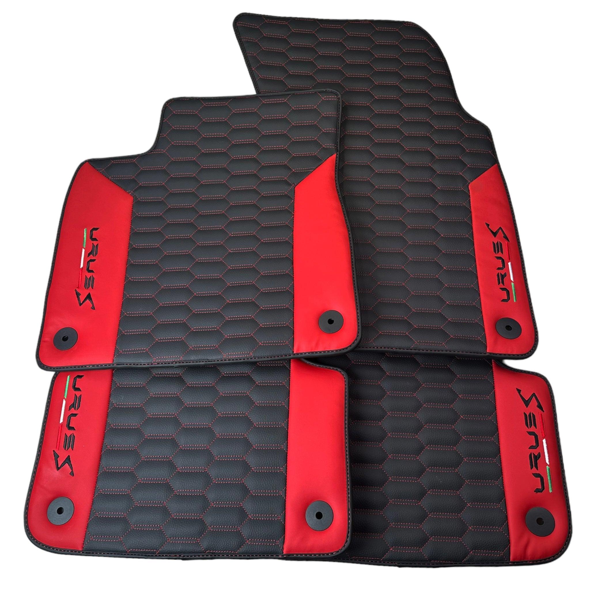 Black Leather Floor Mats For Lamborghini Urus S With Red Nappa Leather