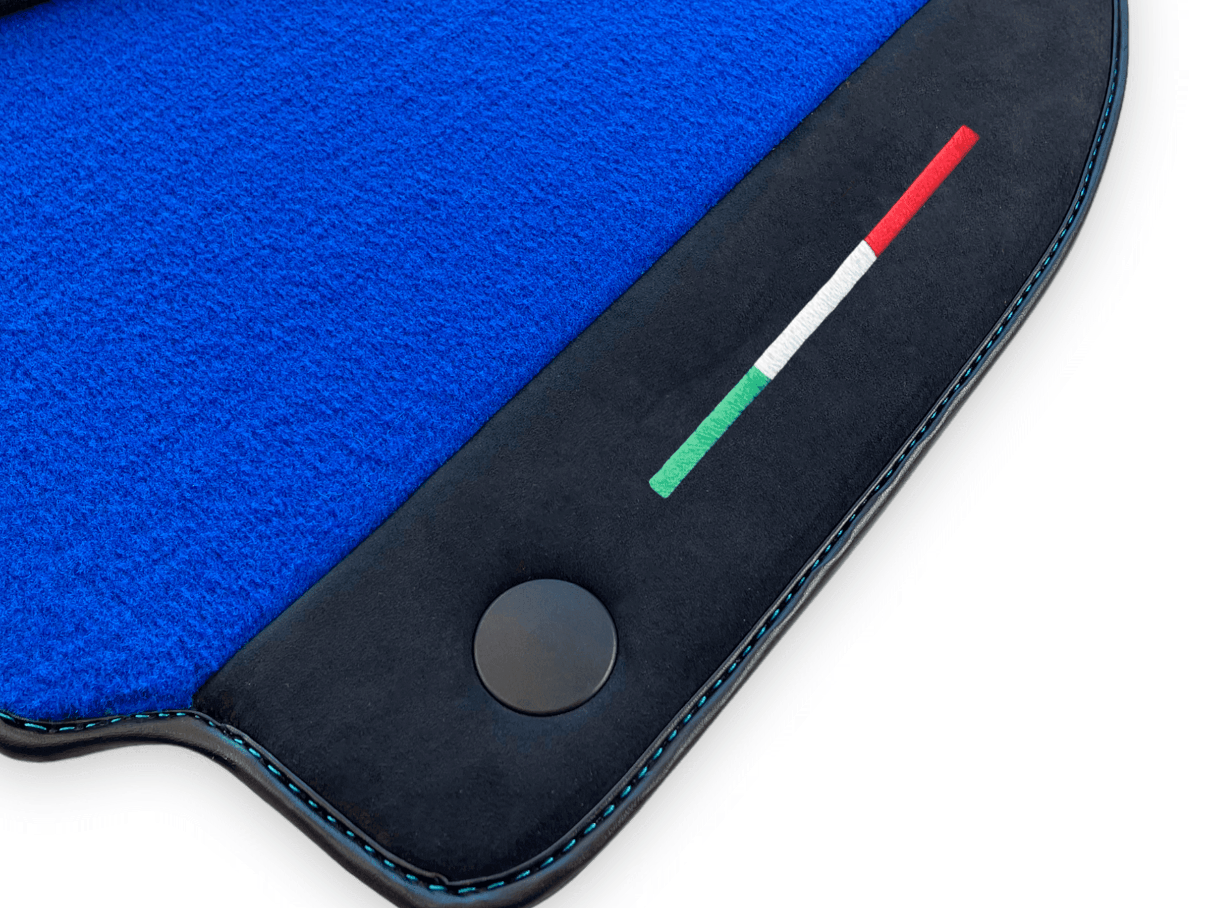 Enhance your Ferrari 488 Pista Spider (2019-2021) interior with these custom blue floor mats crafted from premium Alcantara leather. Designed to fit perfectly, they offer durable protection while adding a touch of luxury and style. Easy to clean and maintain, these mats help keep your car’s interior pristine, combining elegance with practical functionality.