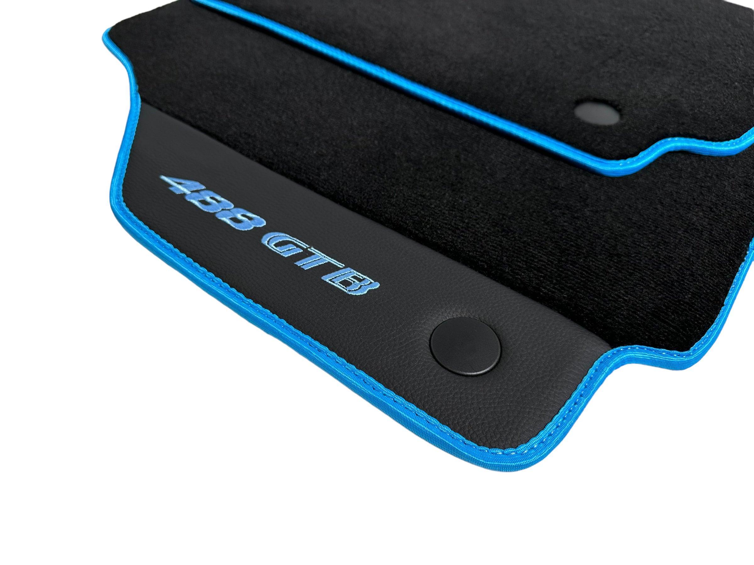 Floor Mats For Ferrari 488 GTB 2015-2022 Alcantara Leather Light Blue Trim
