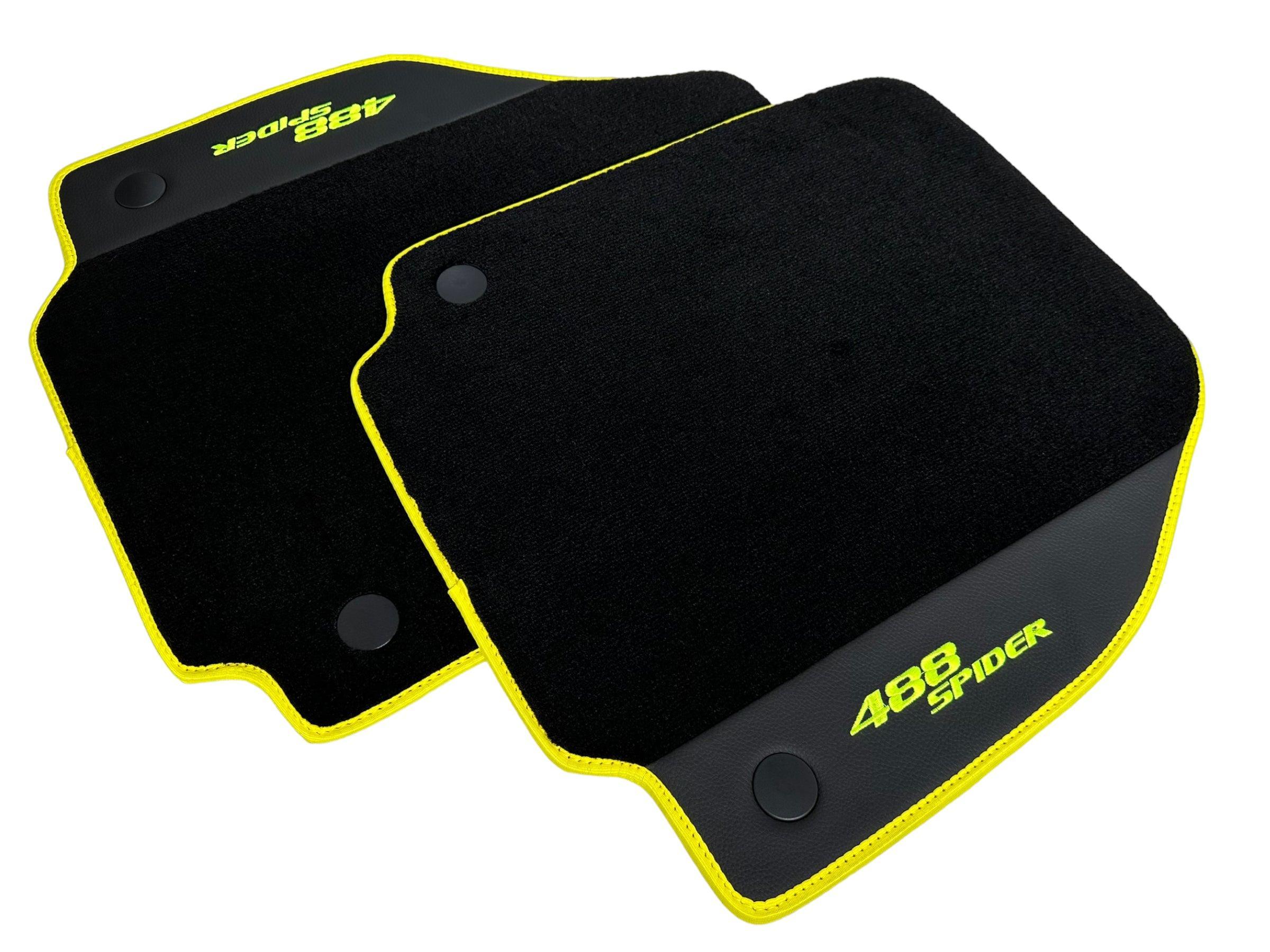 Floor Mats For Ferrari 488 Spider 2015-2022 Leather and Yellow Trim