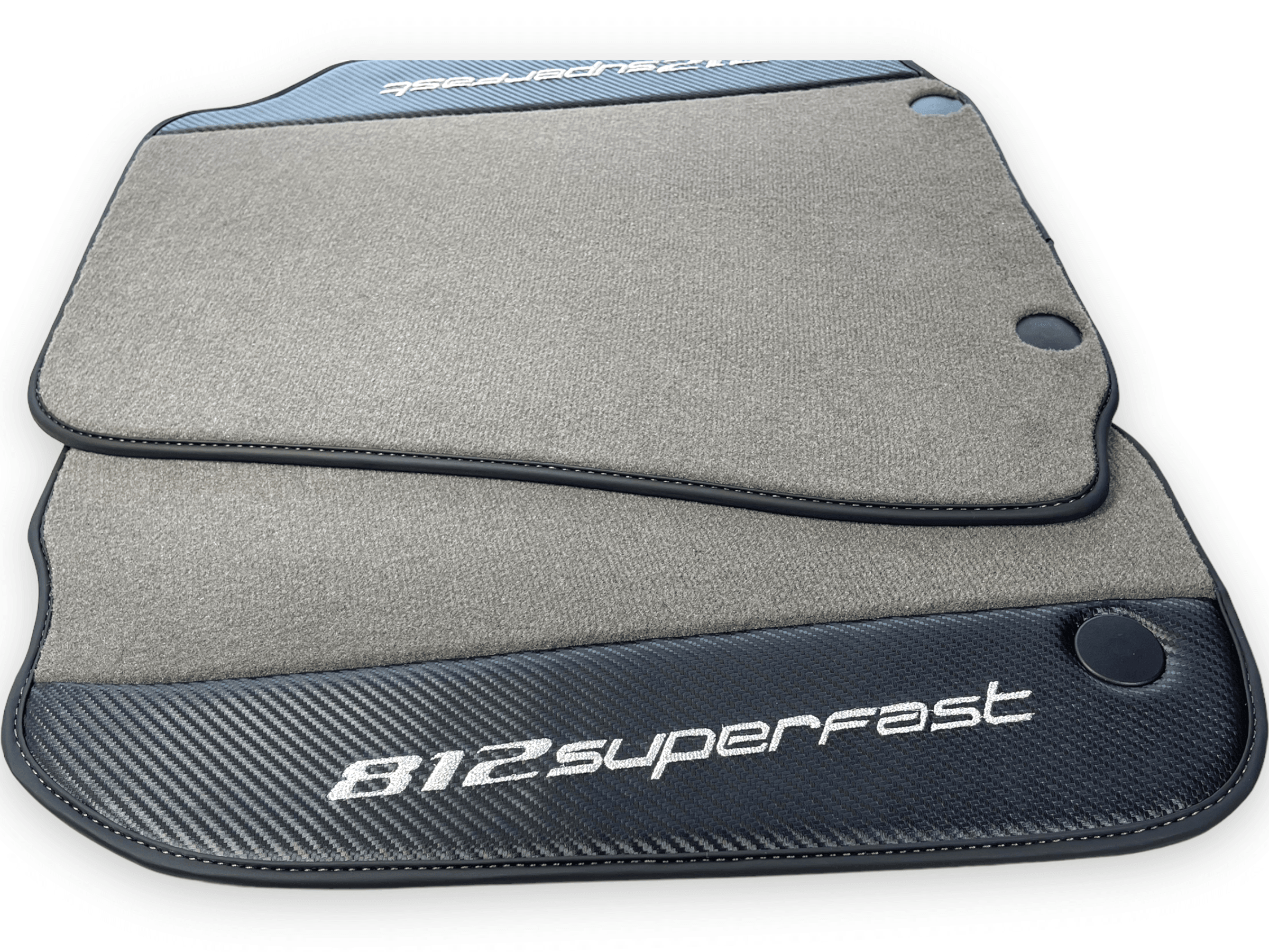 Gray Floor Mats For Ferrari 812 Superfast With Carbon Fiber Leather