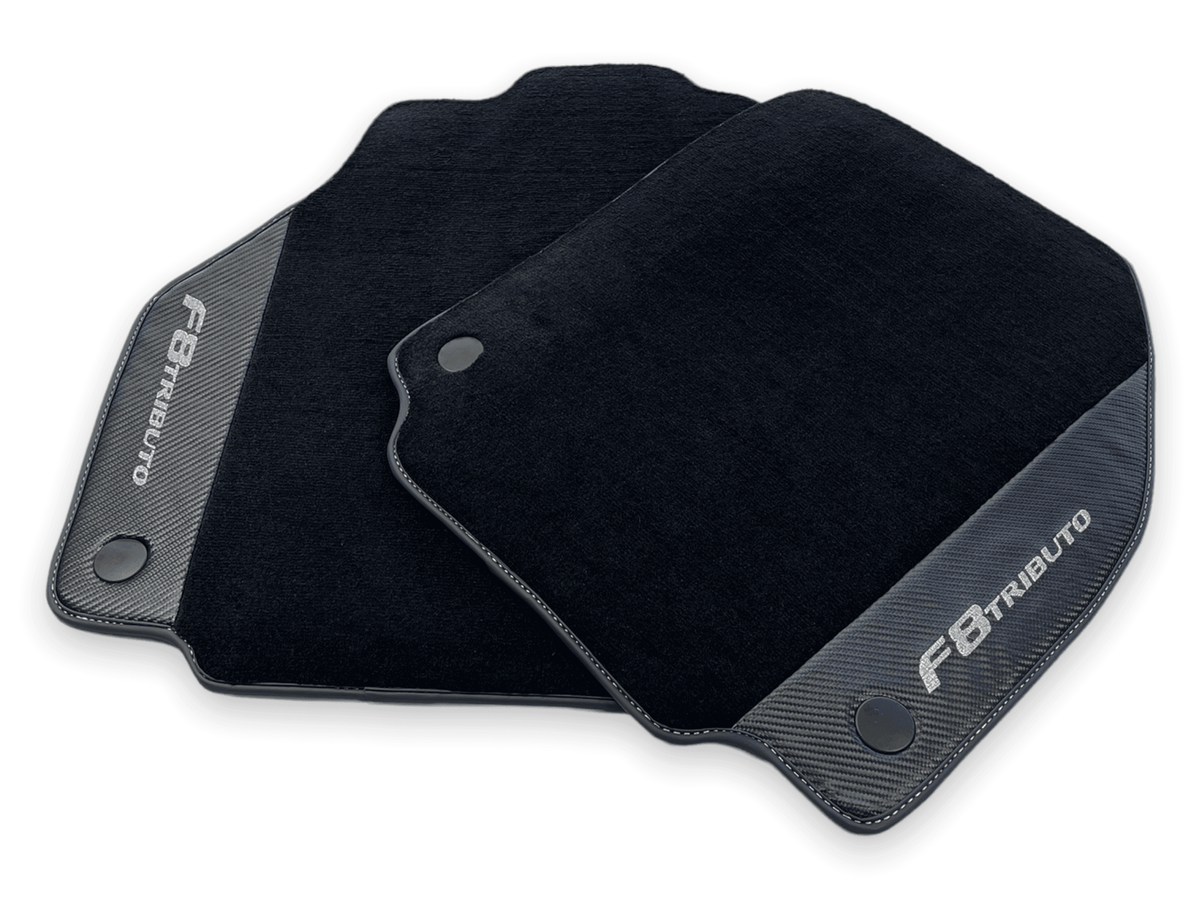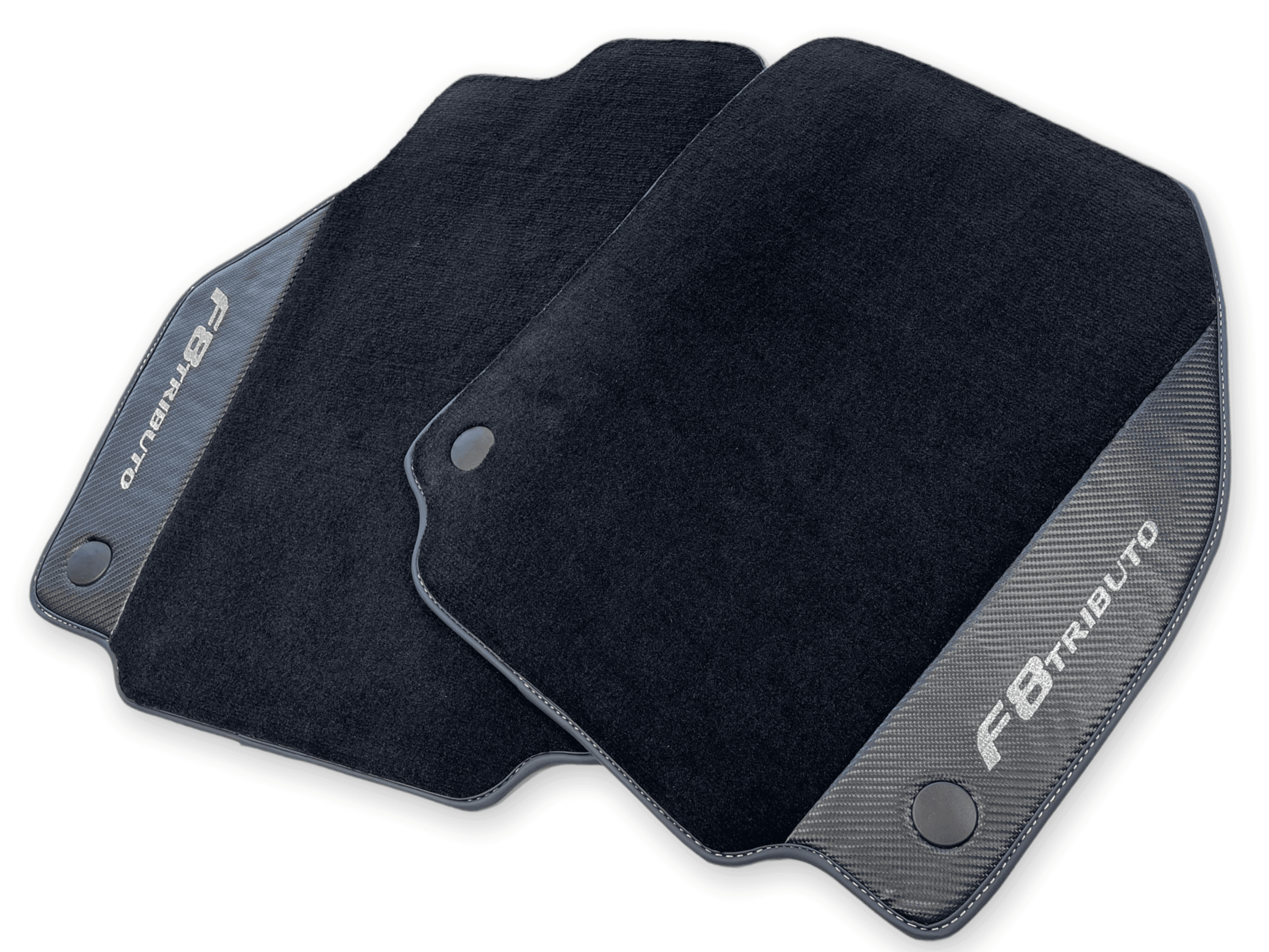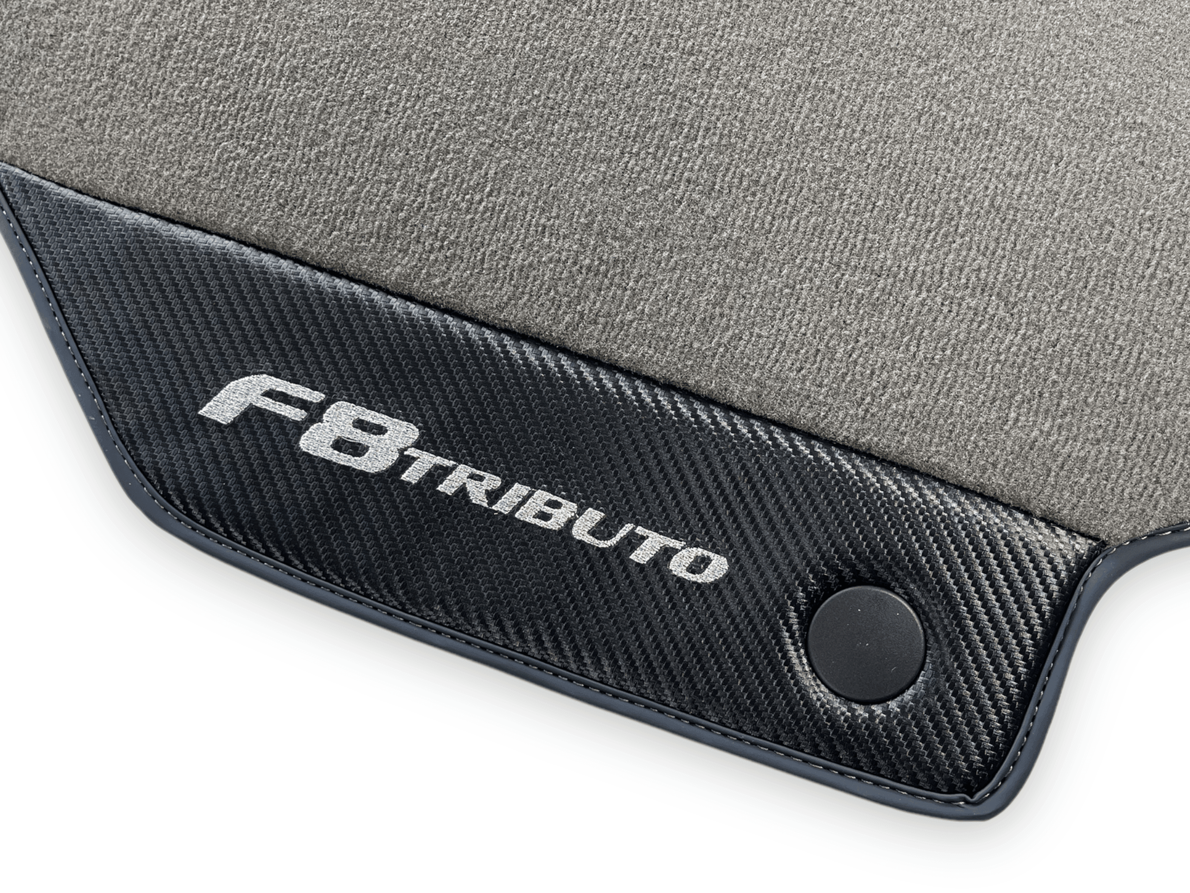 Introducing top-of-the-line gray floor mats for your Ferrari F8 Tributo. Made with carbon leather, these mats provide superior durability and style. Protect your car's floor while adding a touch of luxury with these custom-fit mats. Drive with confidence and style.