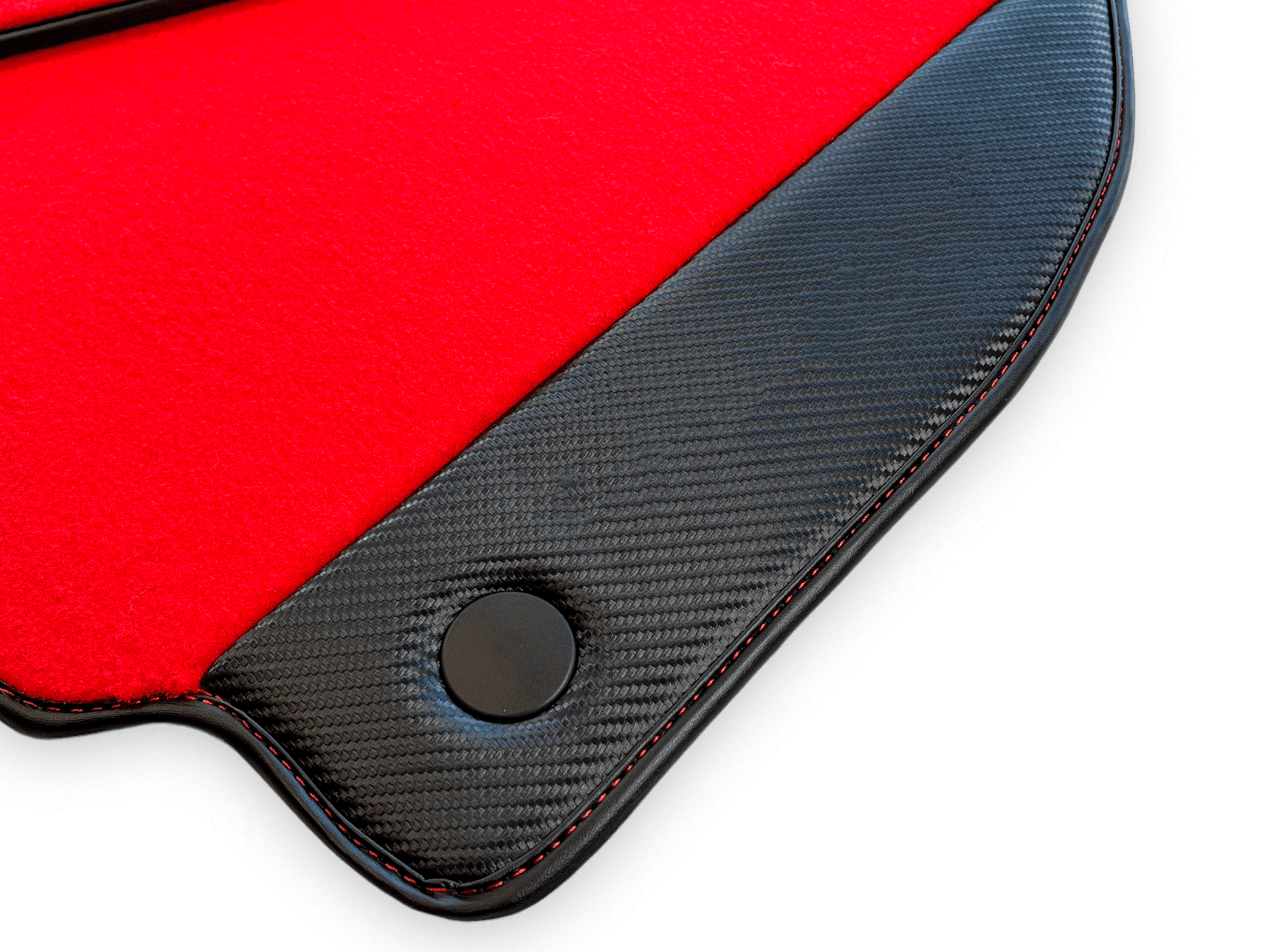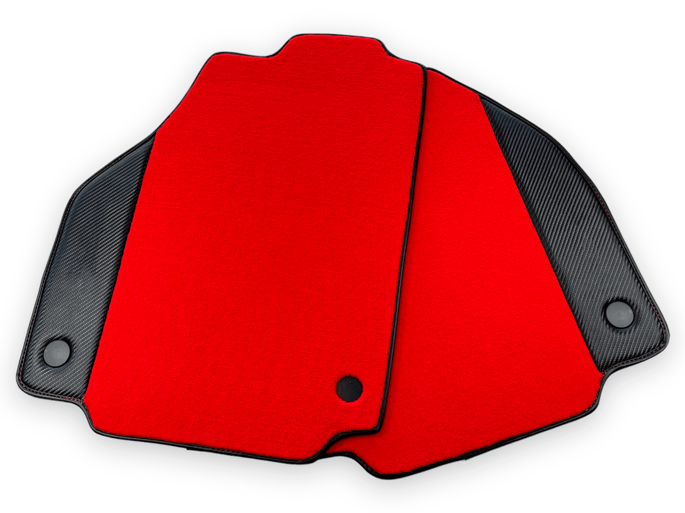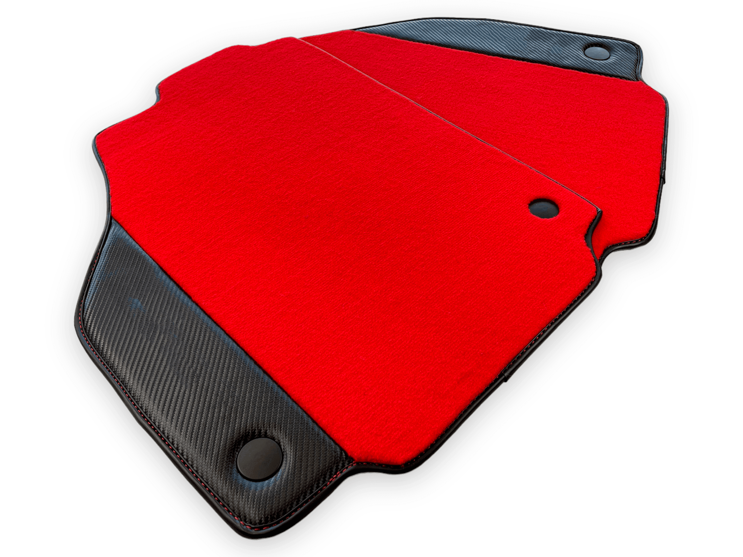 Expertly crafted for the Ferrari 488 Pista Spider 2019-2021, these red floor mats feature a luxurious carbon fiber leather material that adds a touch of sophistication to your vehicle's interior. Keep your floor protected while elevating your driving experience.