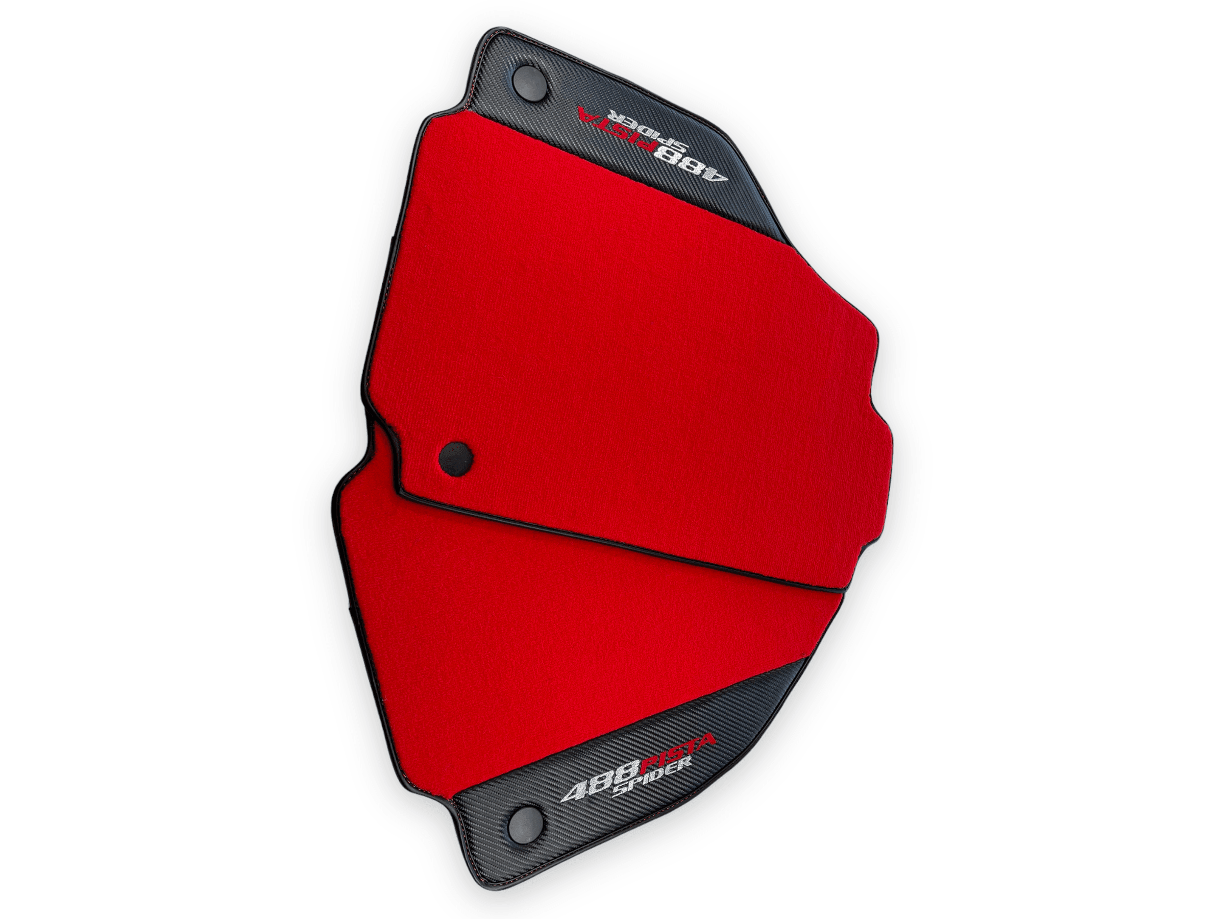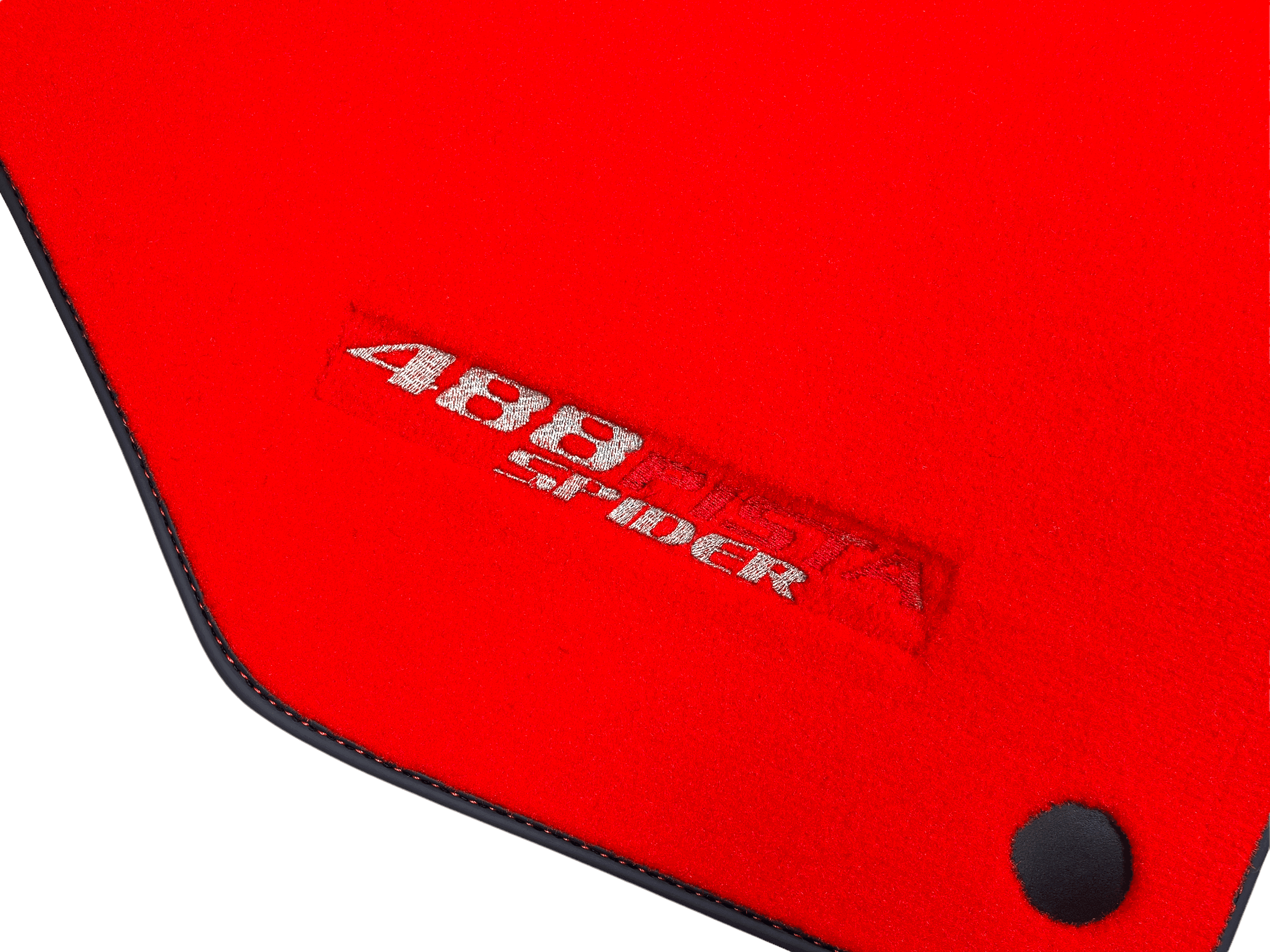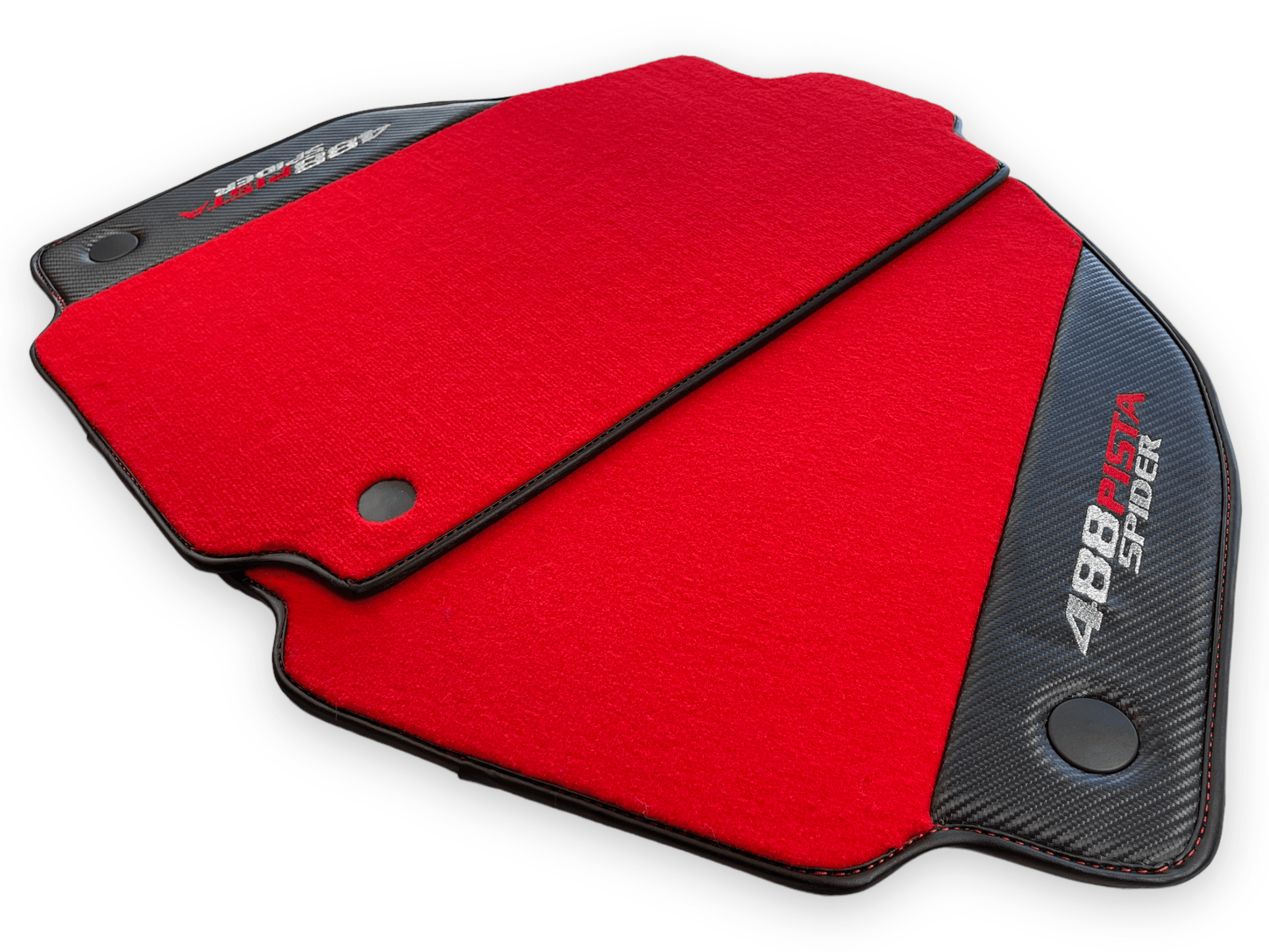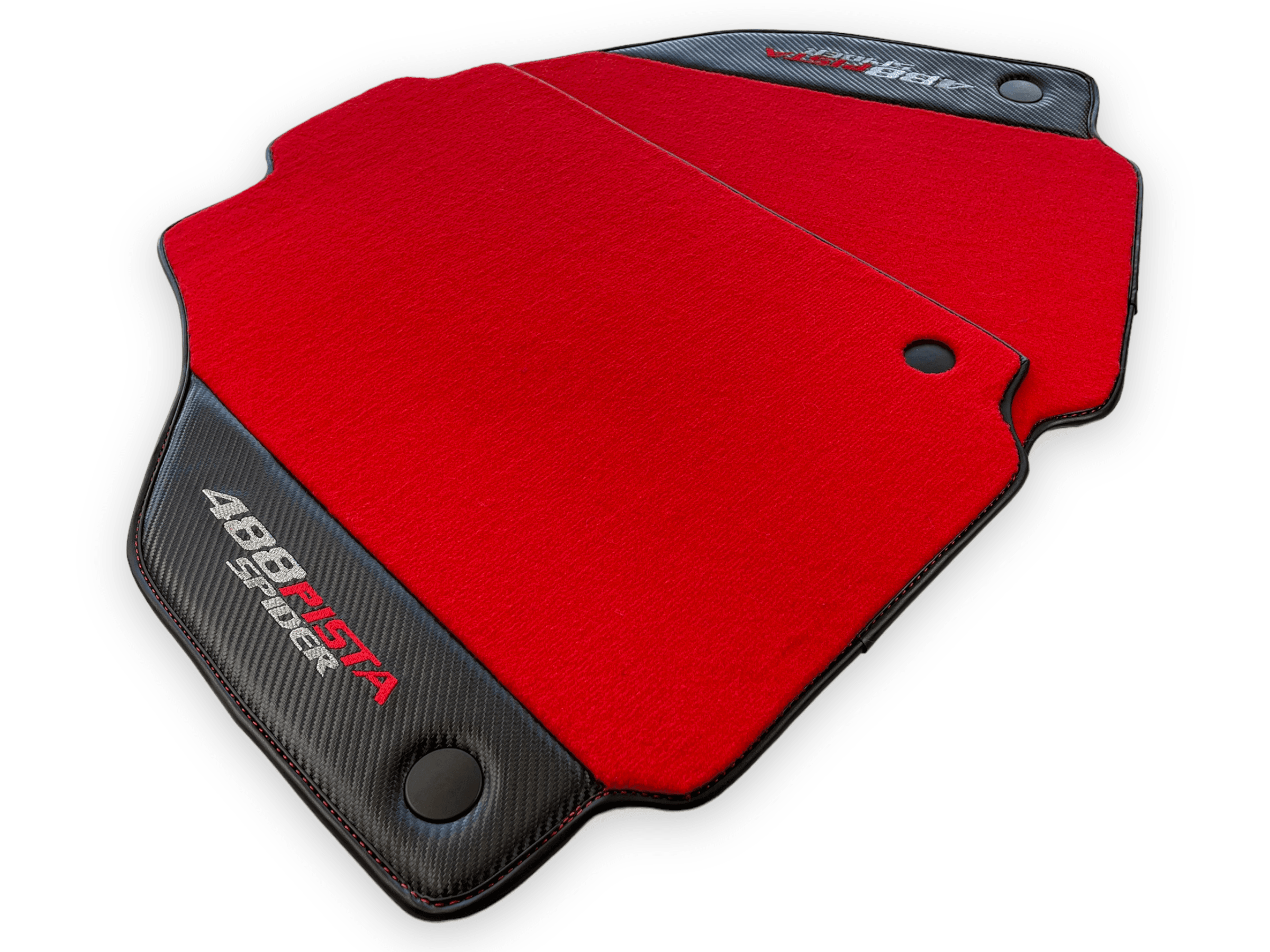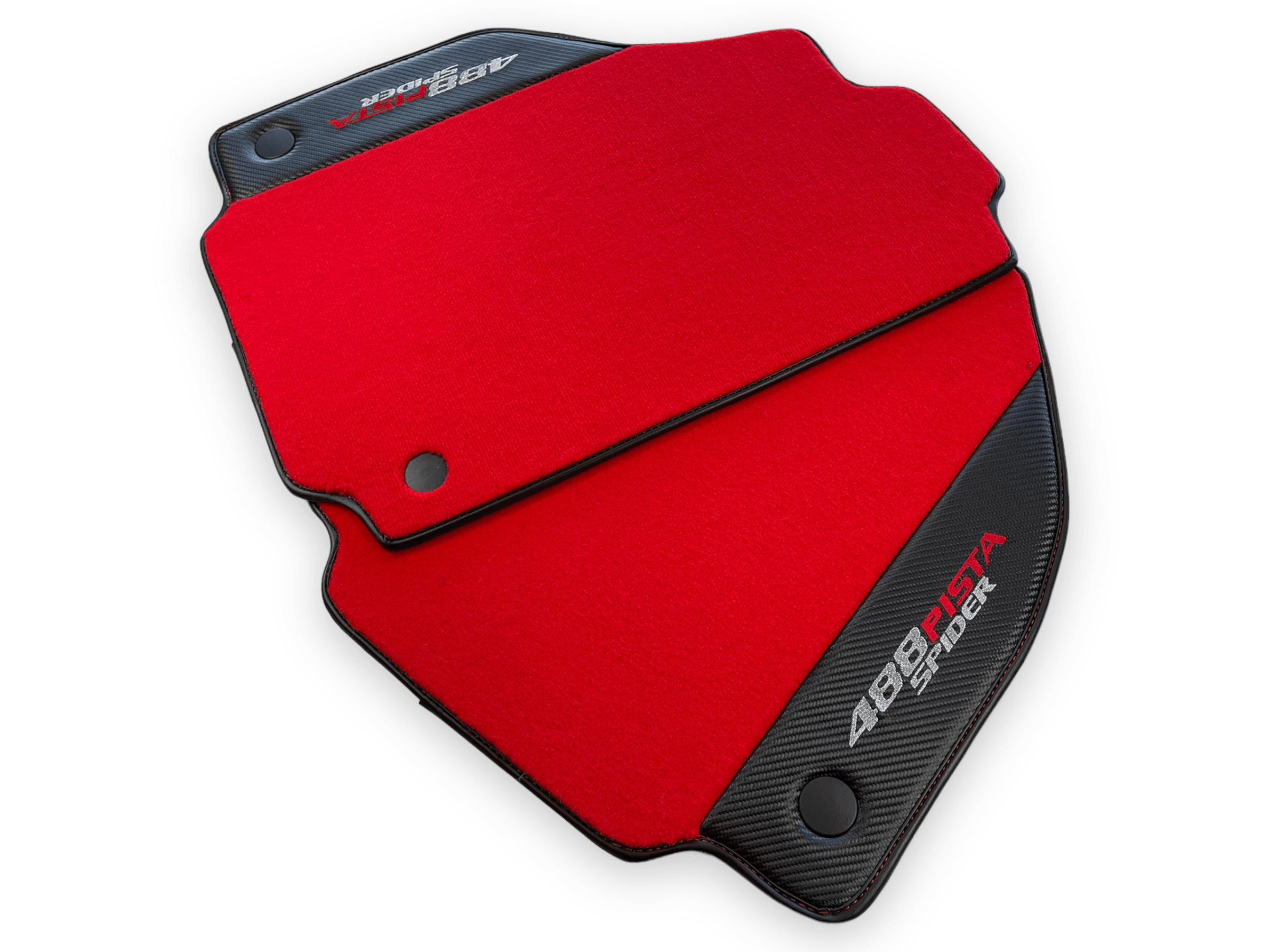 Expertly crafted for the Ferrari 488 Pista Spider 2019-2021, these red floor mats feature a luxurious carbon fiber leather material that adds a touch of sophistication to your vehicle's interior. Keep your floor protected while elevating your driving experience.