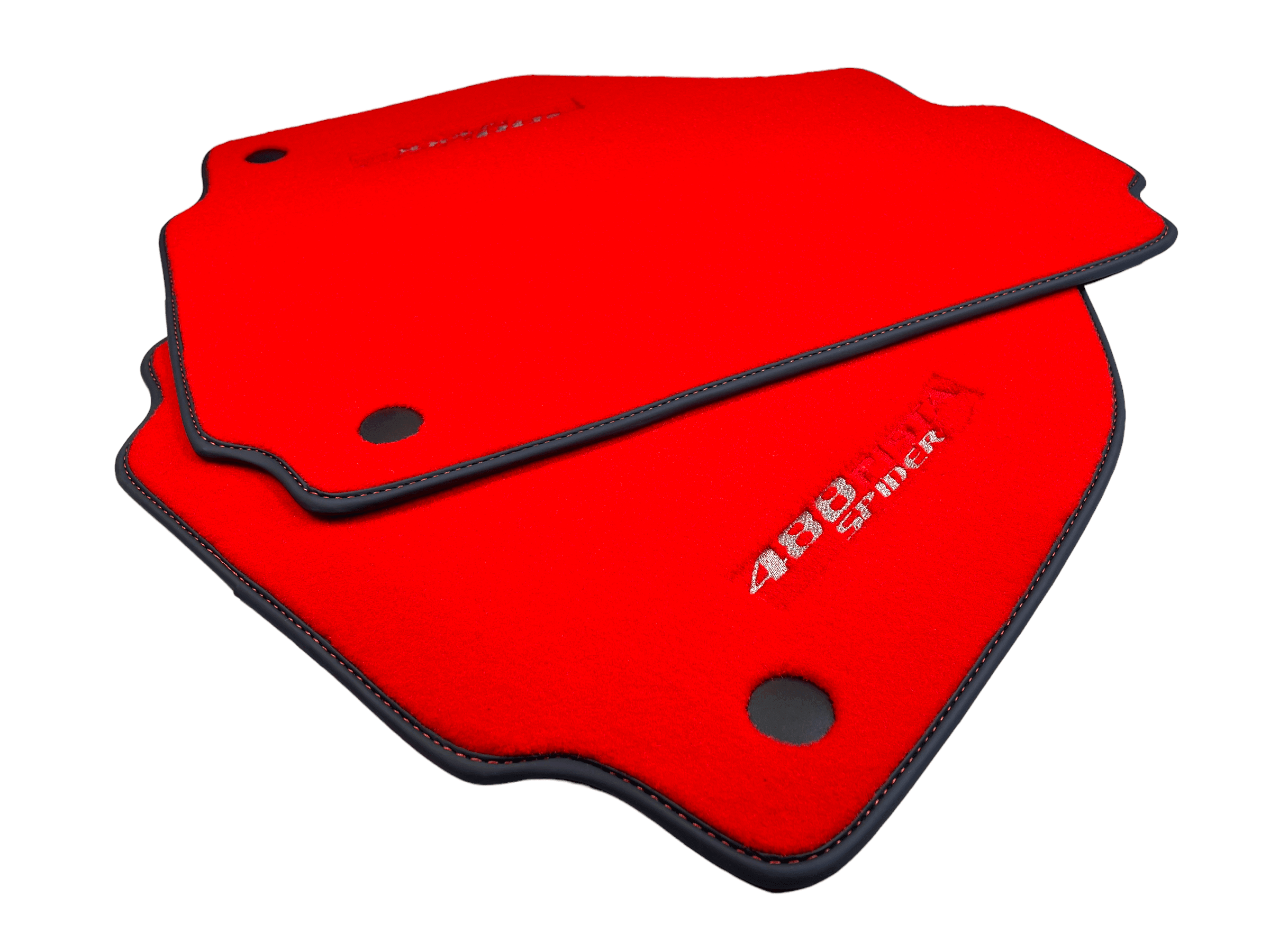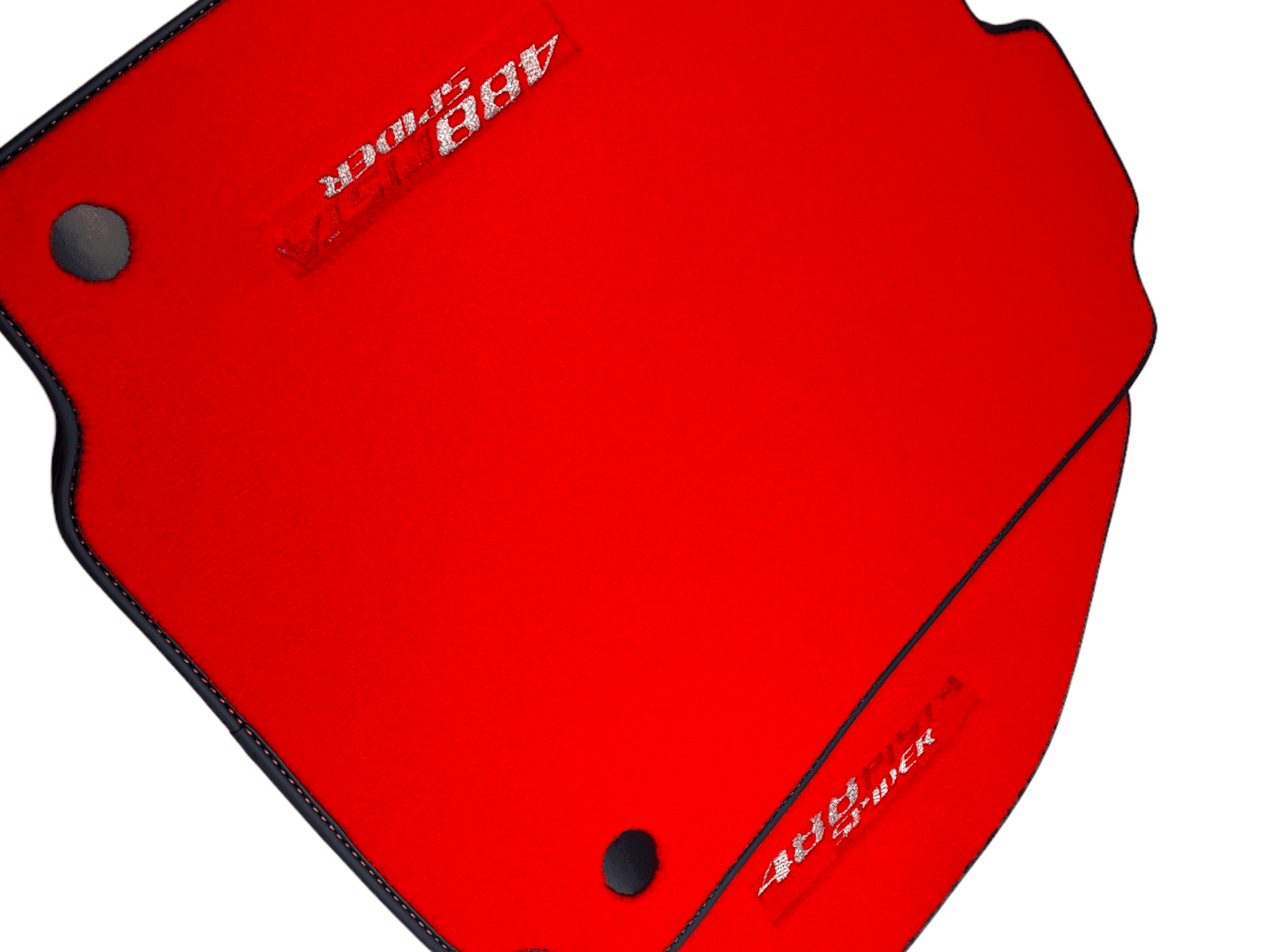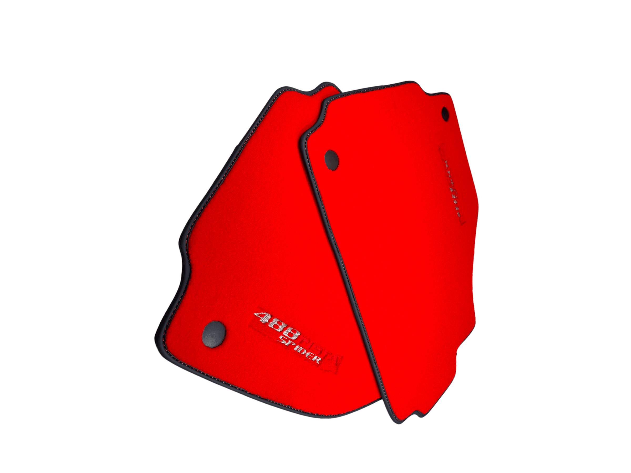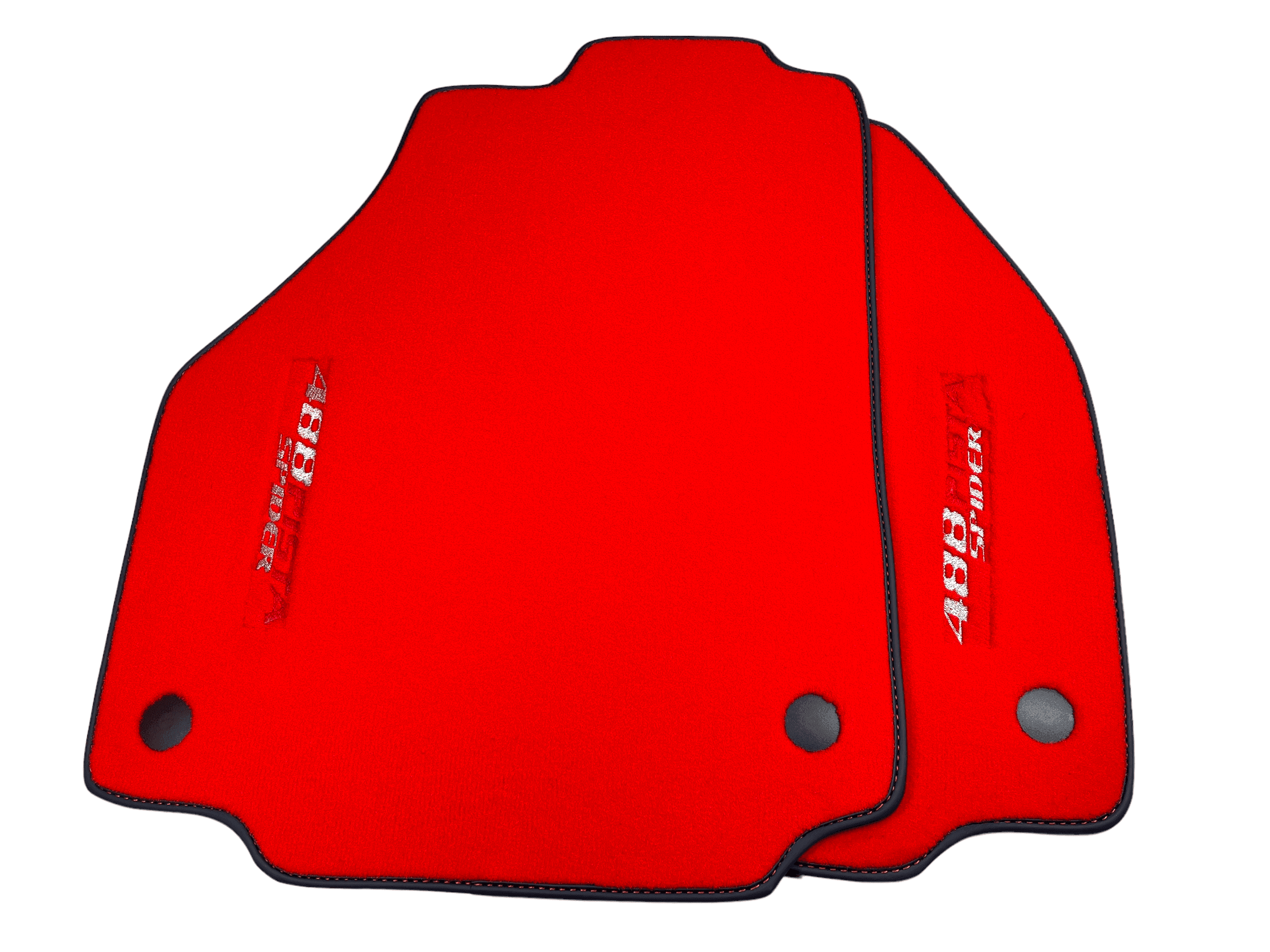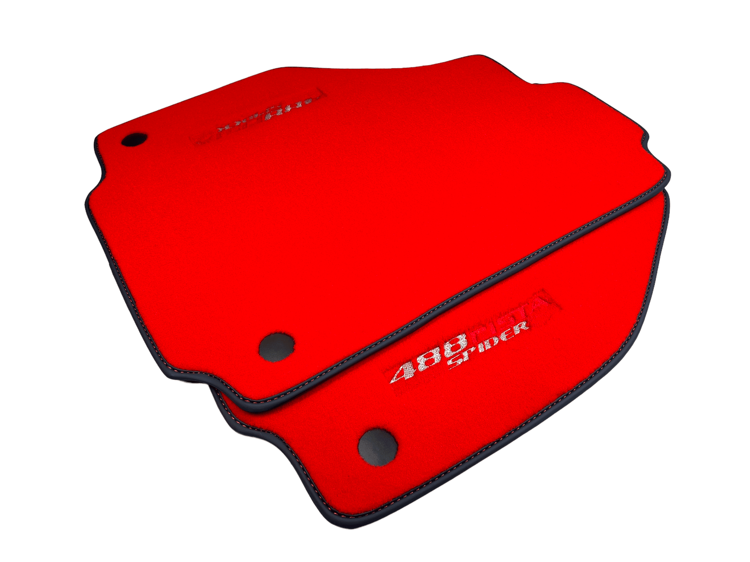 Expertly crafted for the Ferrari 488 Pista Spider 2019-2021, these red floor mats feature a luxurious carbon fiber leather material that adds a touch of sophistication to your vehicle's interior. Keep your floor protected while elevating your driving experience.