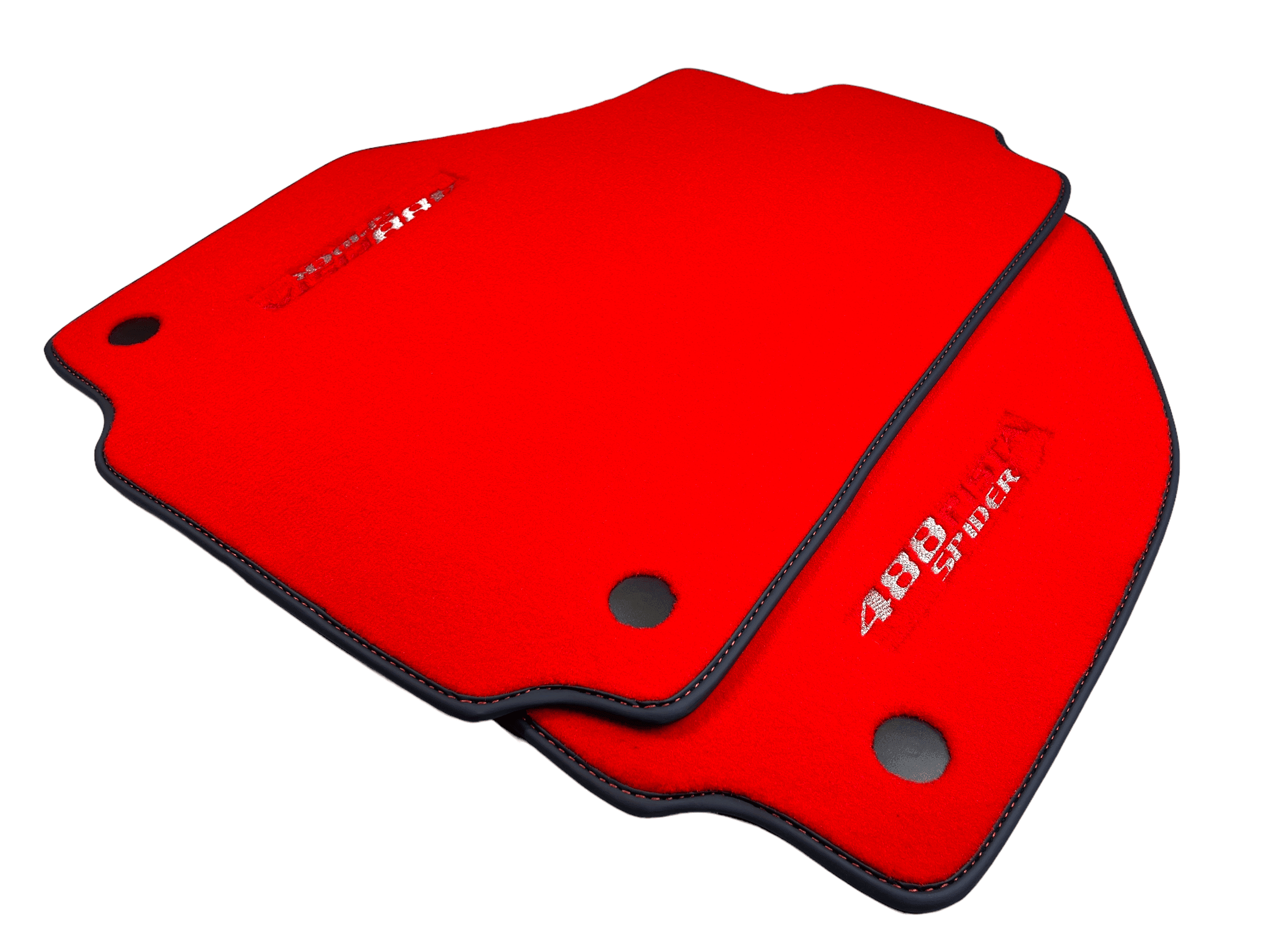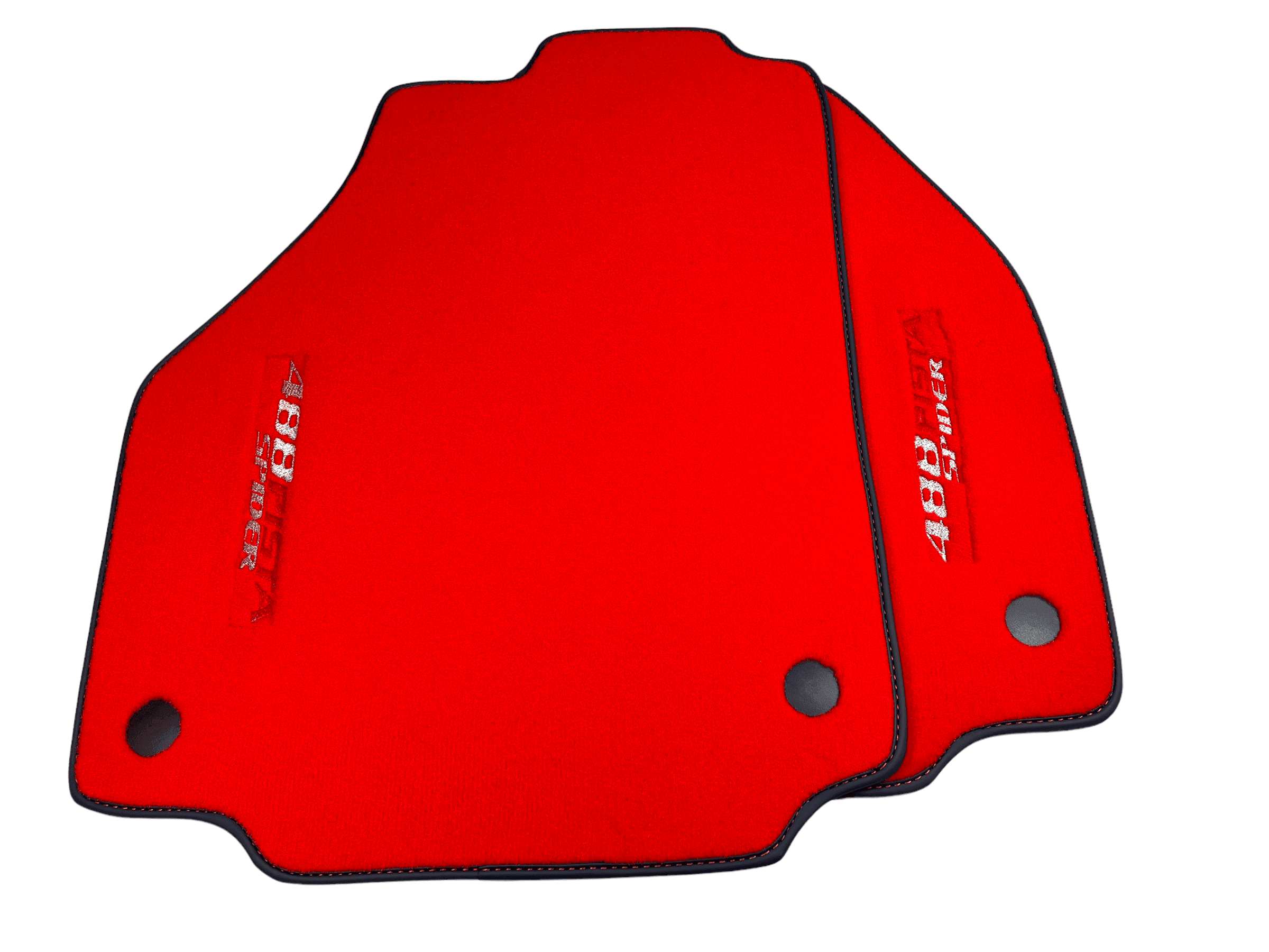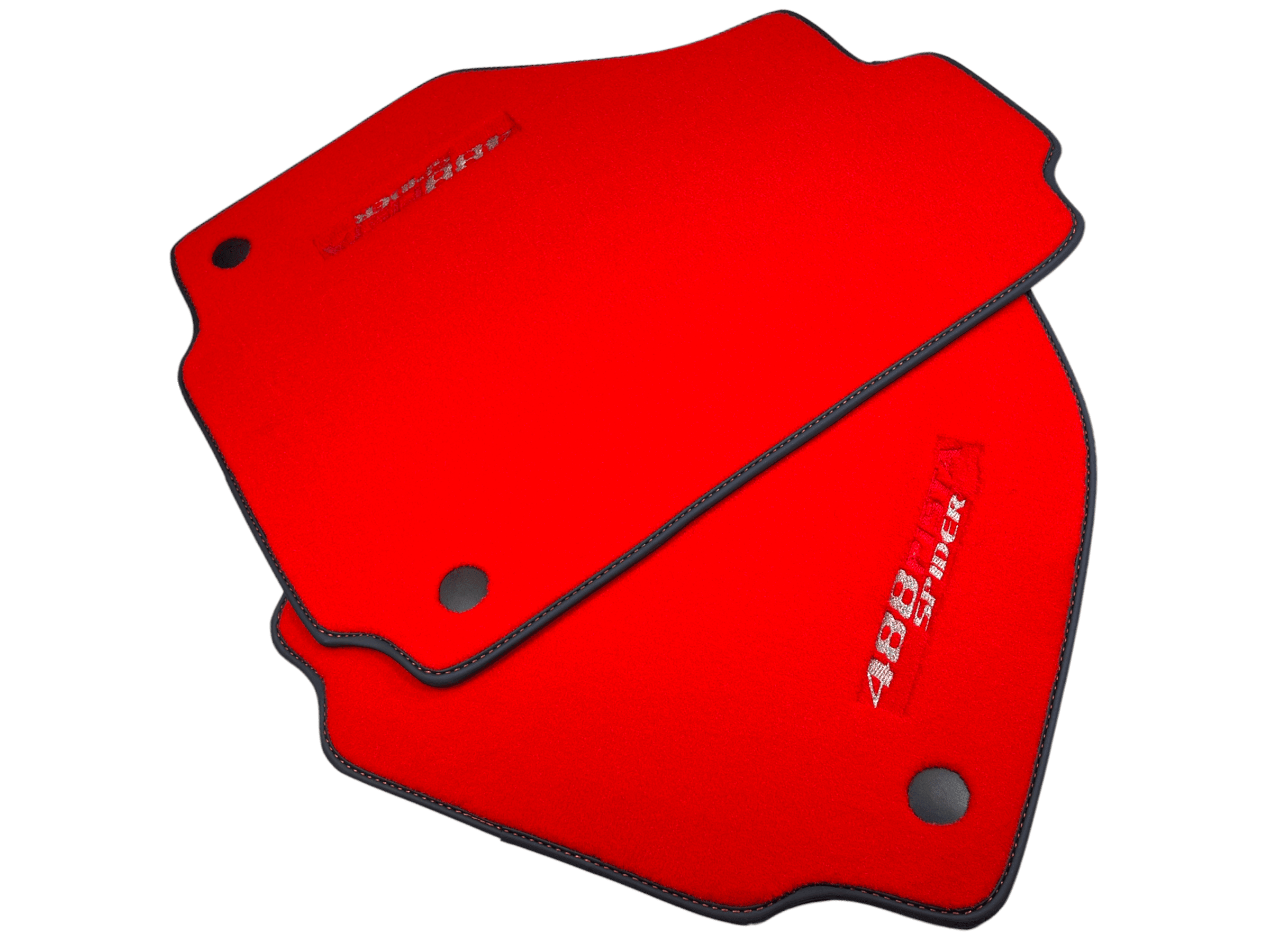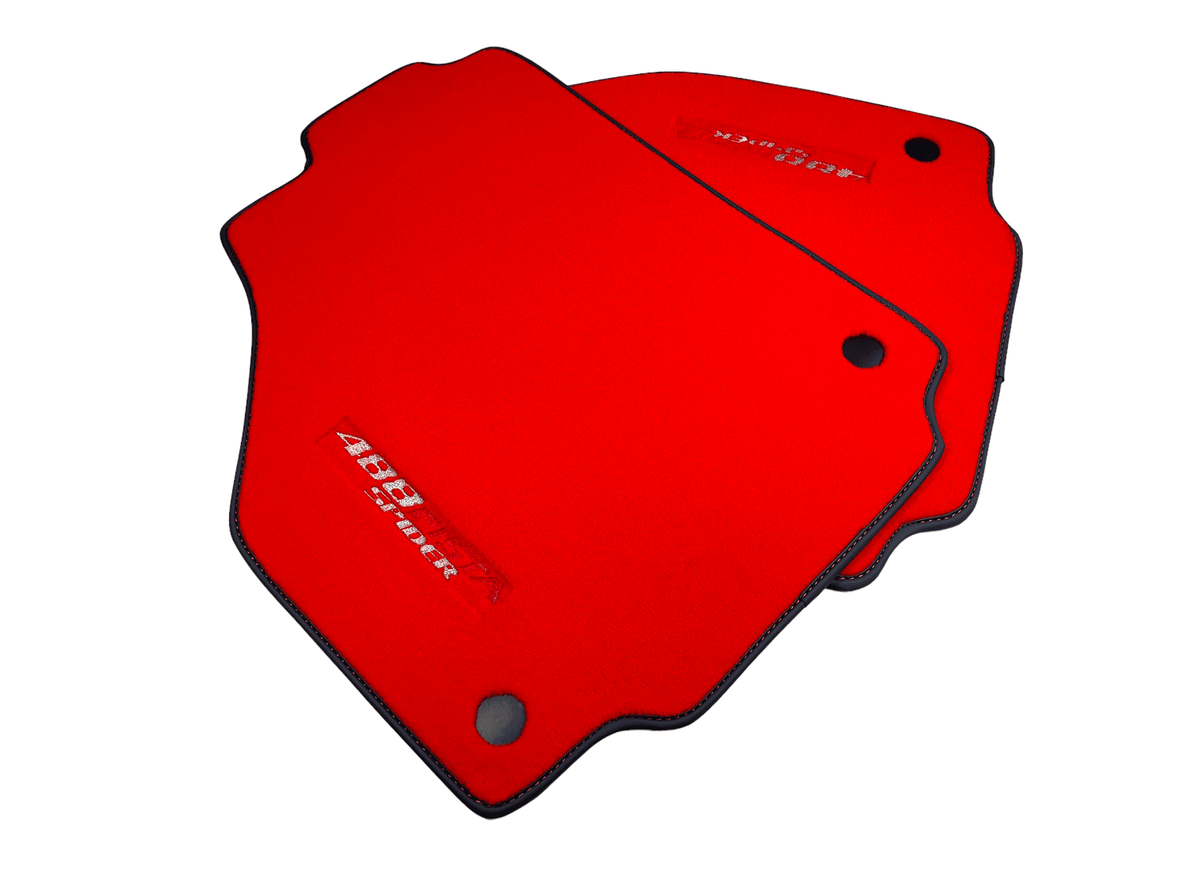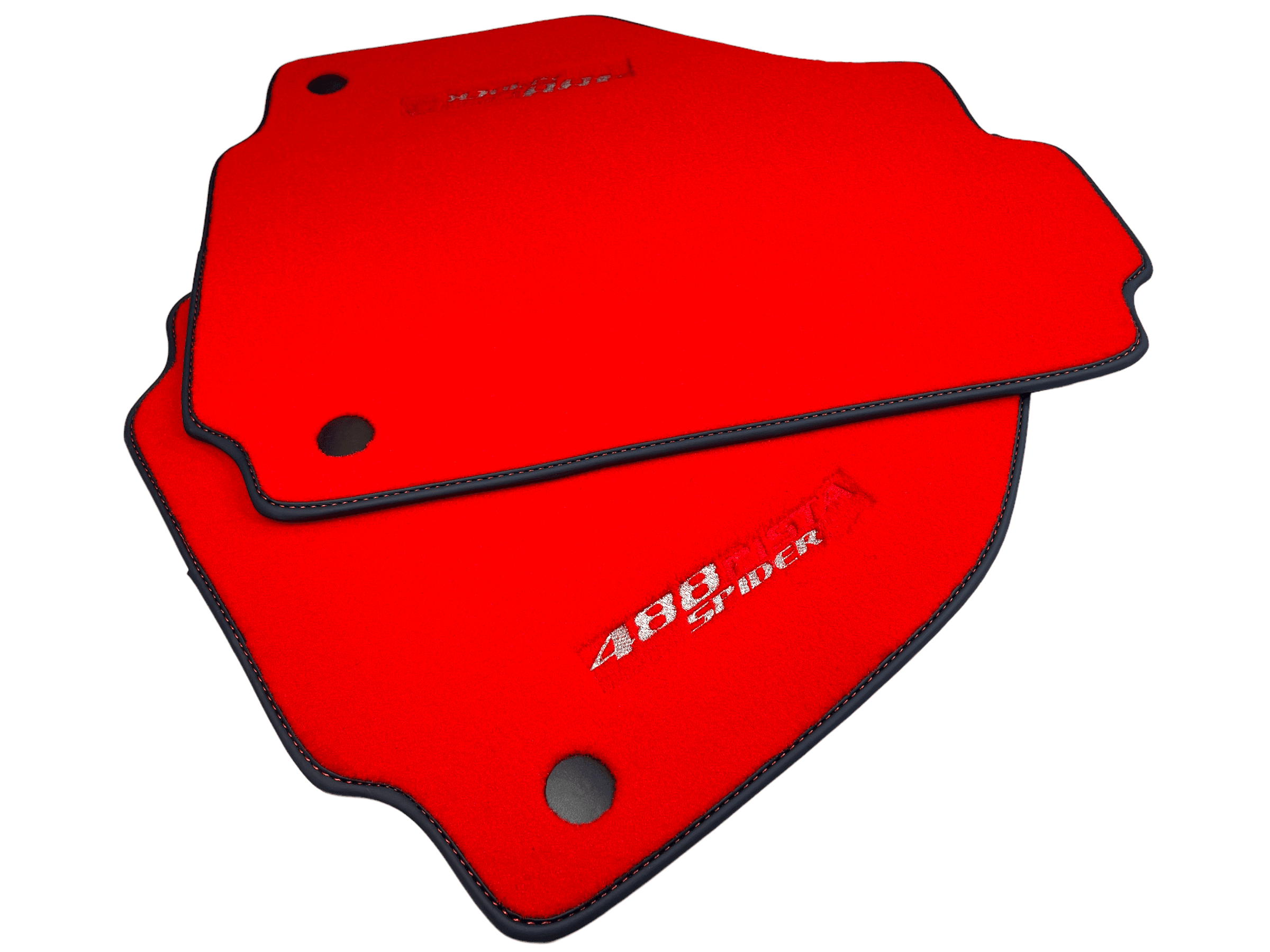 Expertly crafted for the Ferrari 488 Pista Spider 2019-2021, these red floor mats feature a luxurious carbon fiber leather material that adds a touch of sophistication to your vehicle's interior. Keep your floor protected while elevating your driving experience.