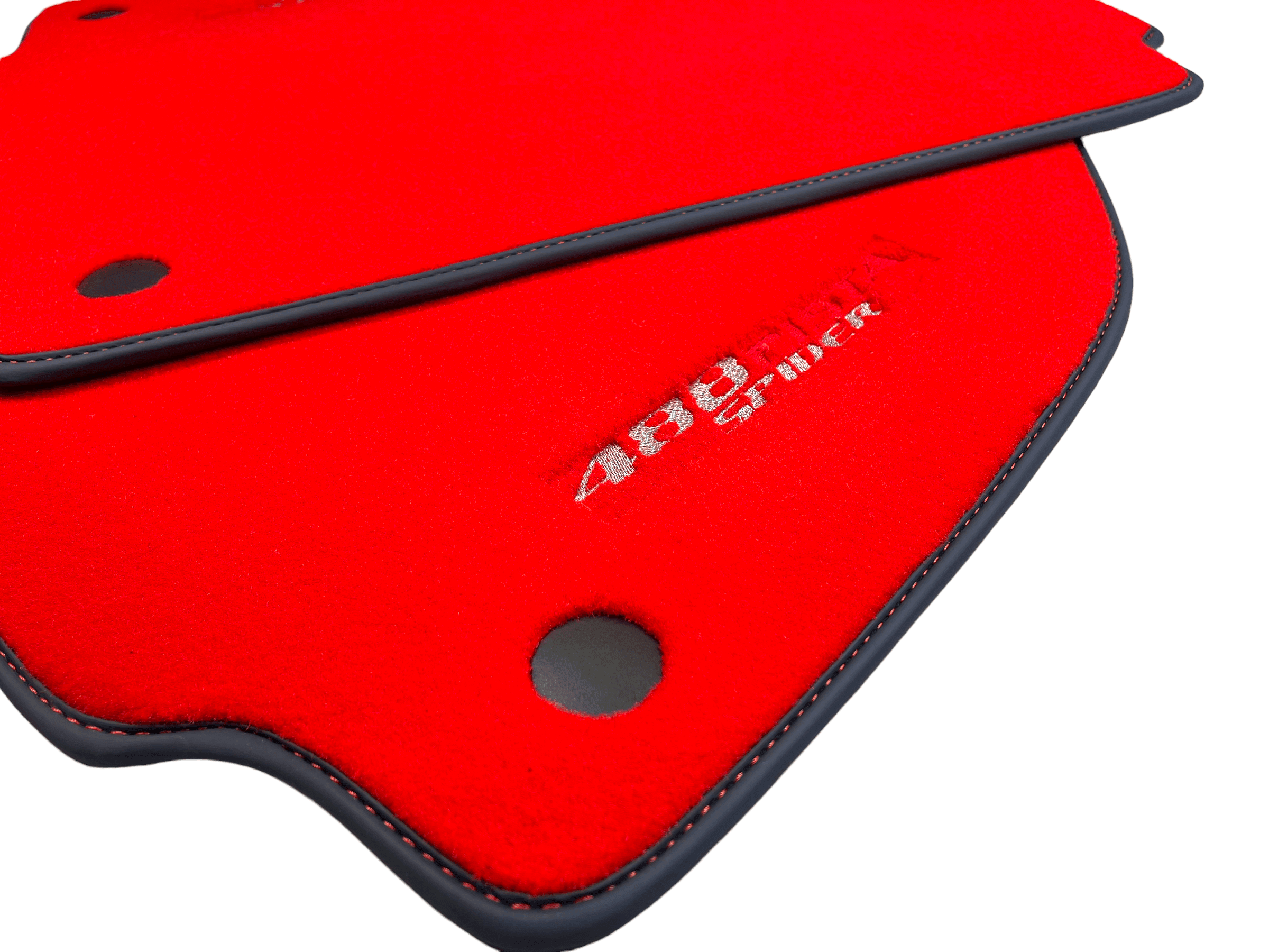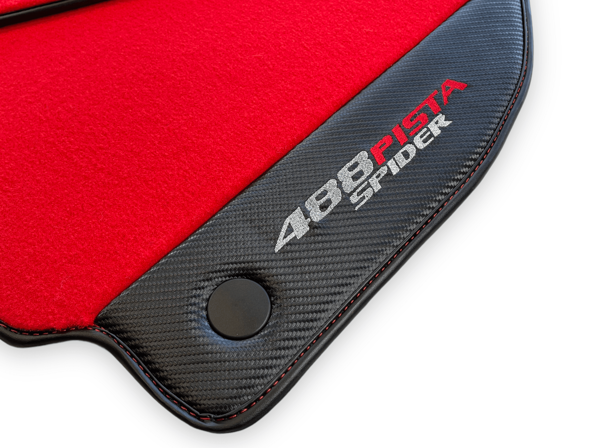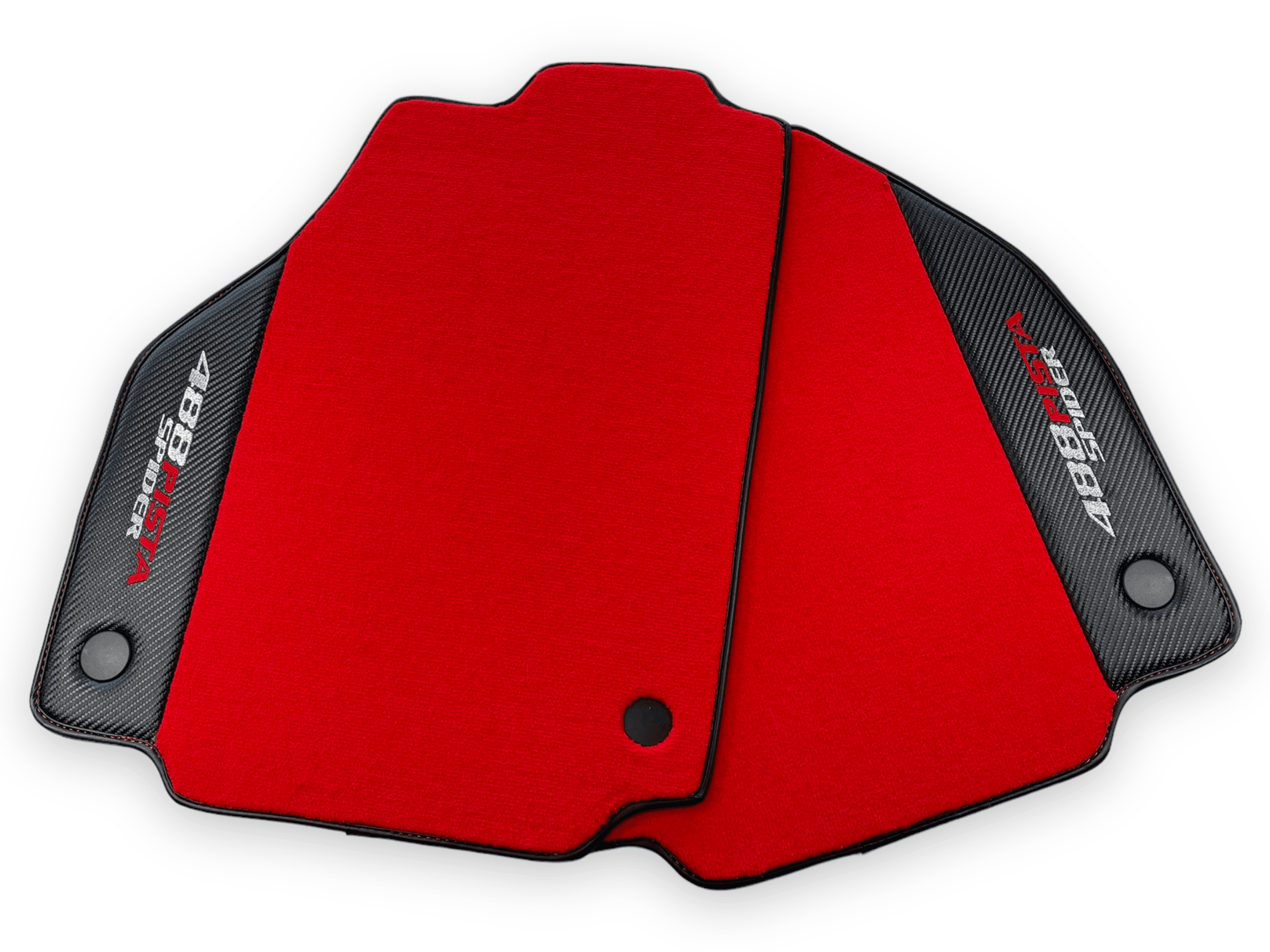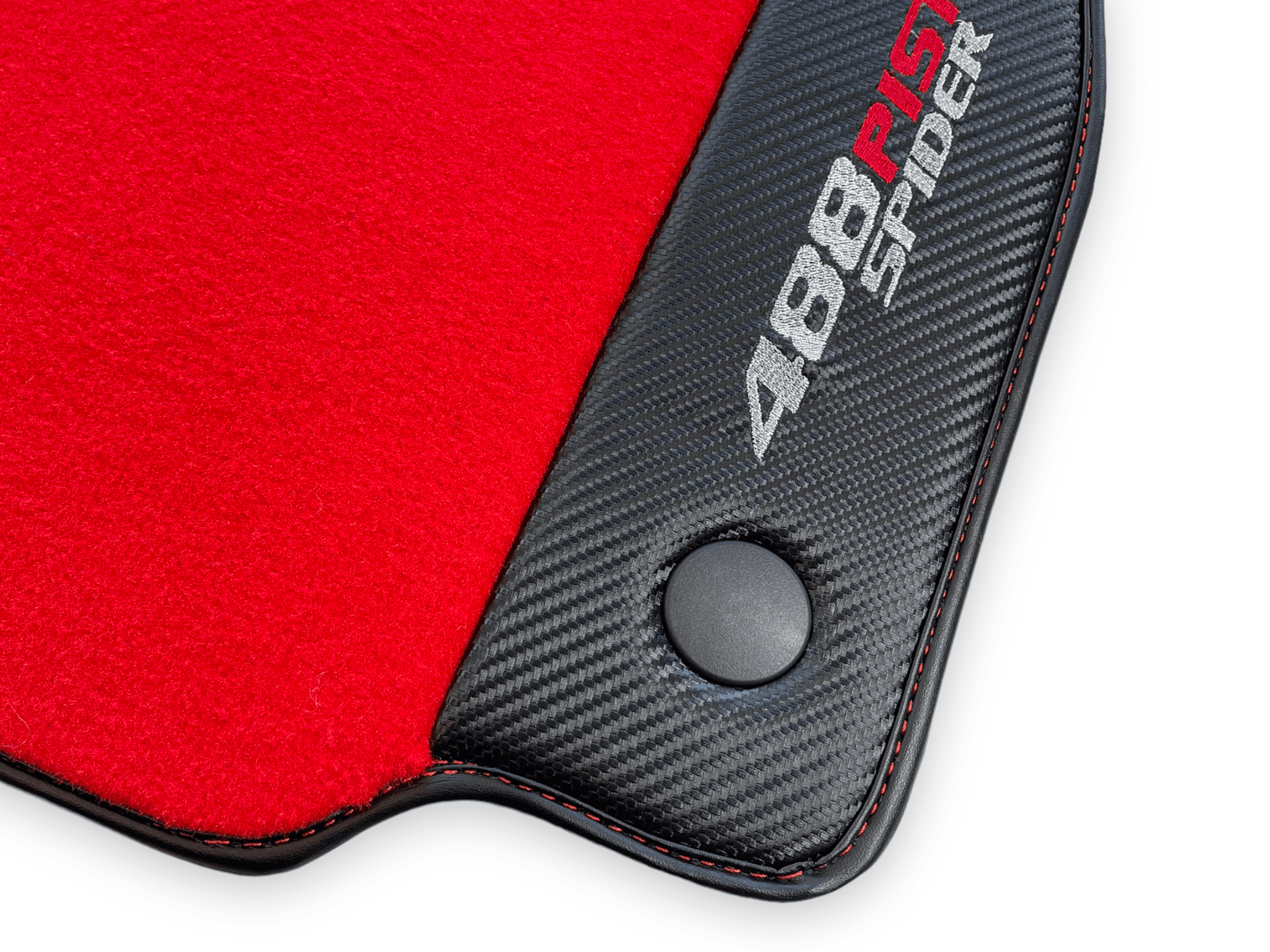 Red Floor Mats For Ferrari 488 Pista Spider 2019-2021 With Carbon Fiber Leather
