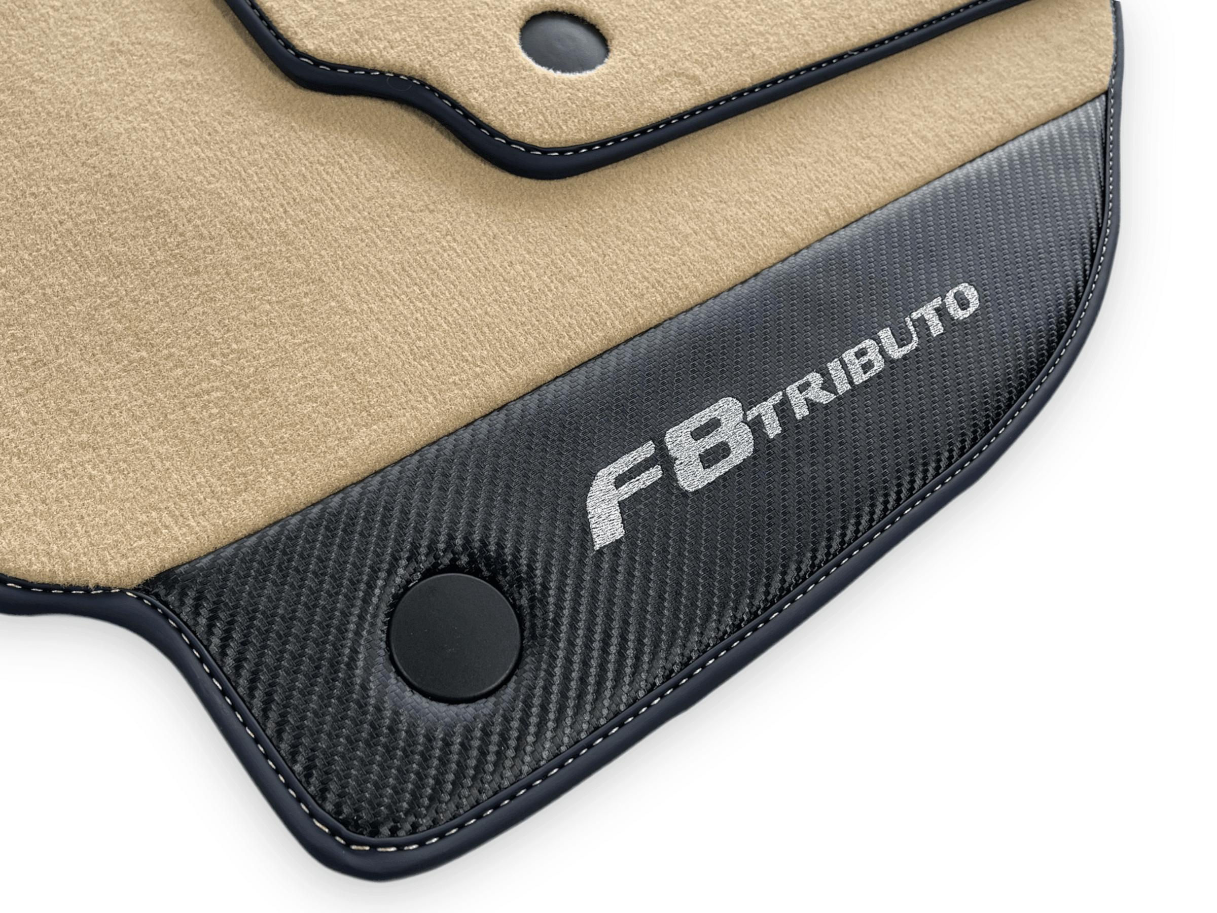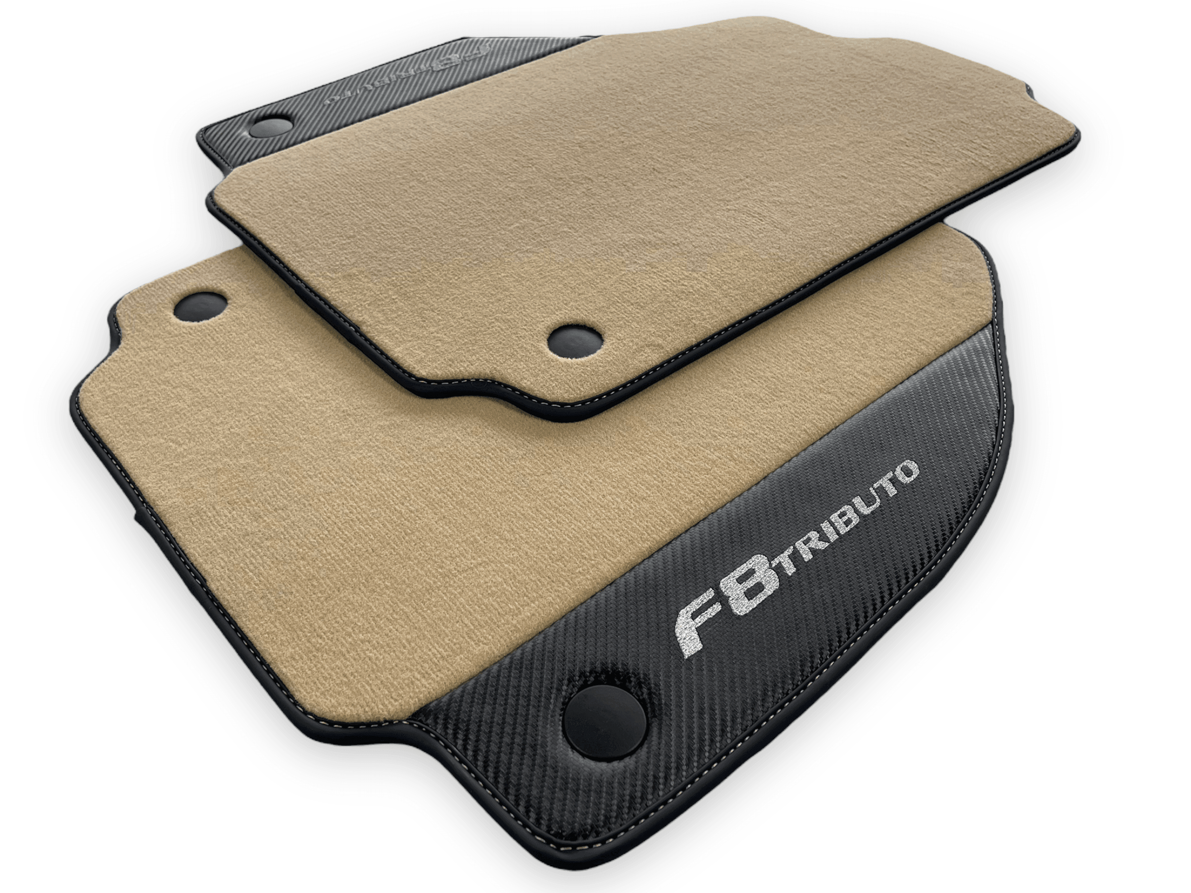 Beżowe dywaniki samochodowe do Ferrari F8 Tributo 2019-2022 z skórą węglową