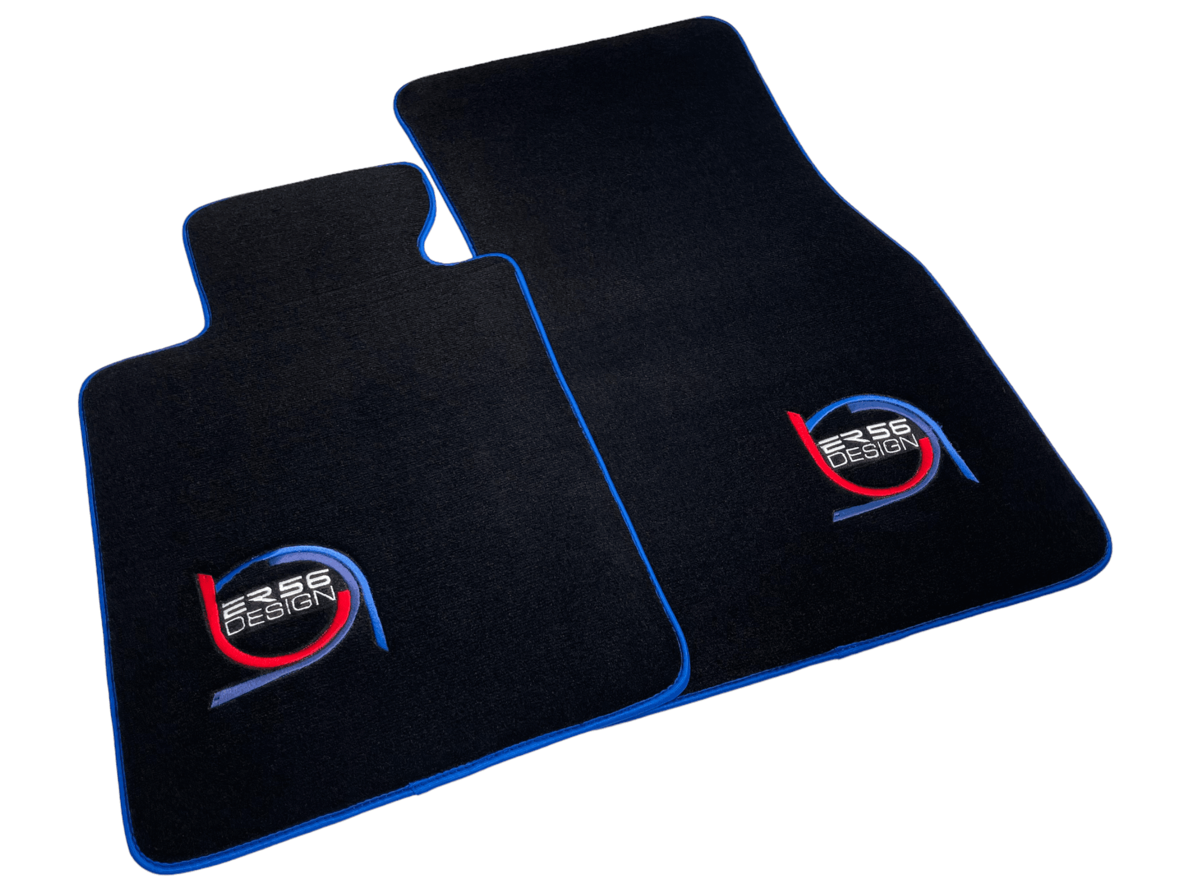 Czarne dywaniki samochodowe do BMW M3 E93 Edycja Limitowana Design ER56 z niebieskim wykończeniem