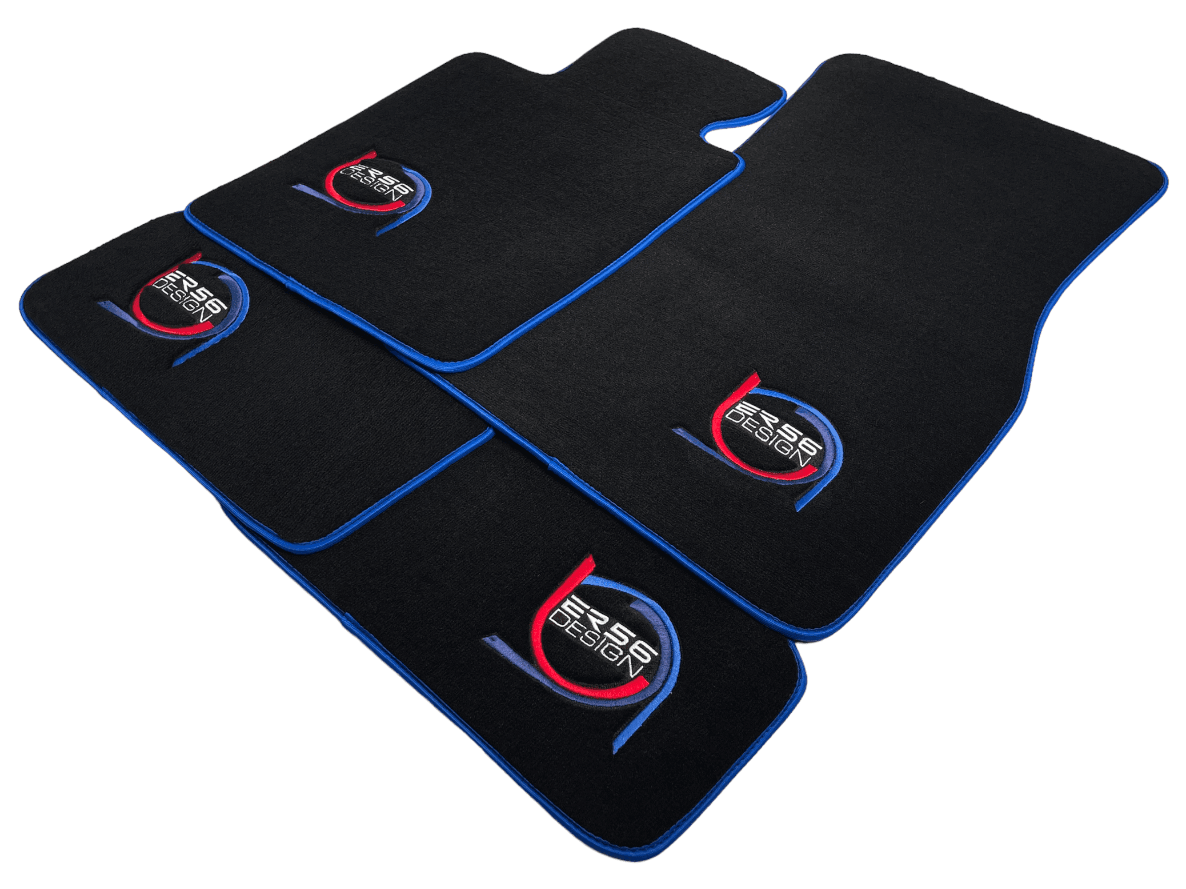 Czarne dywaniki samochodowe do BMW M5 F10 edycja limitowana design ER56 niebieska krawędź