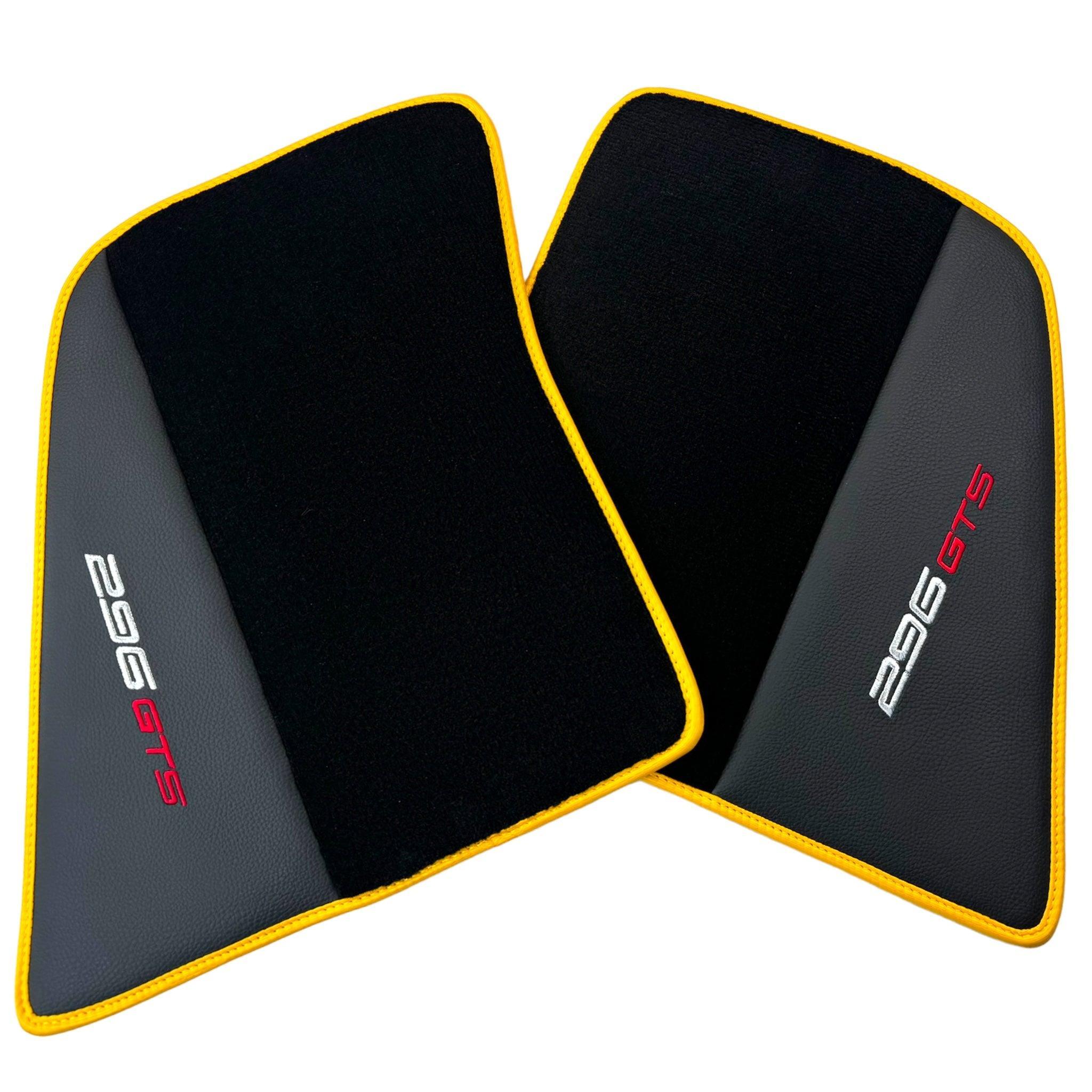 Czarne dywaniki samochodowe do Ferrari 296 GTS (2022-2025) z skórą i żółtym wykończeniem