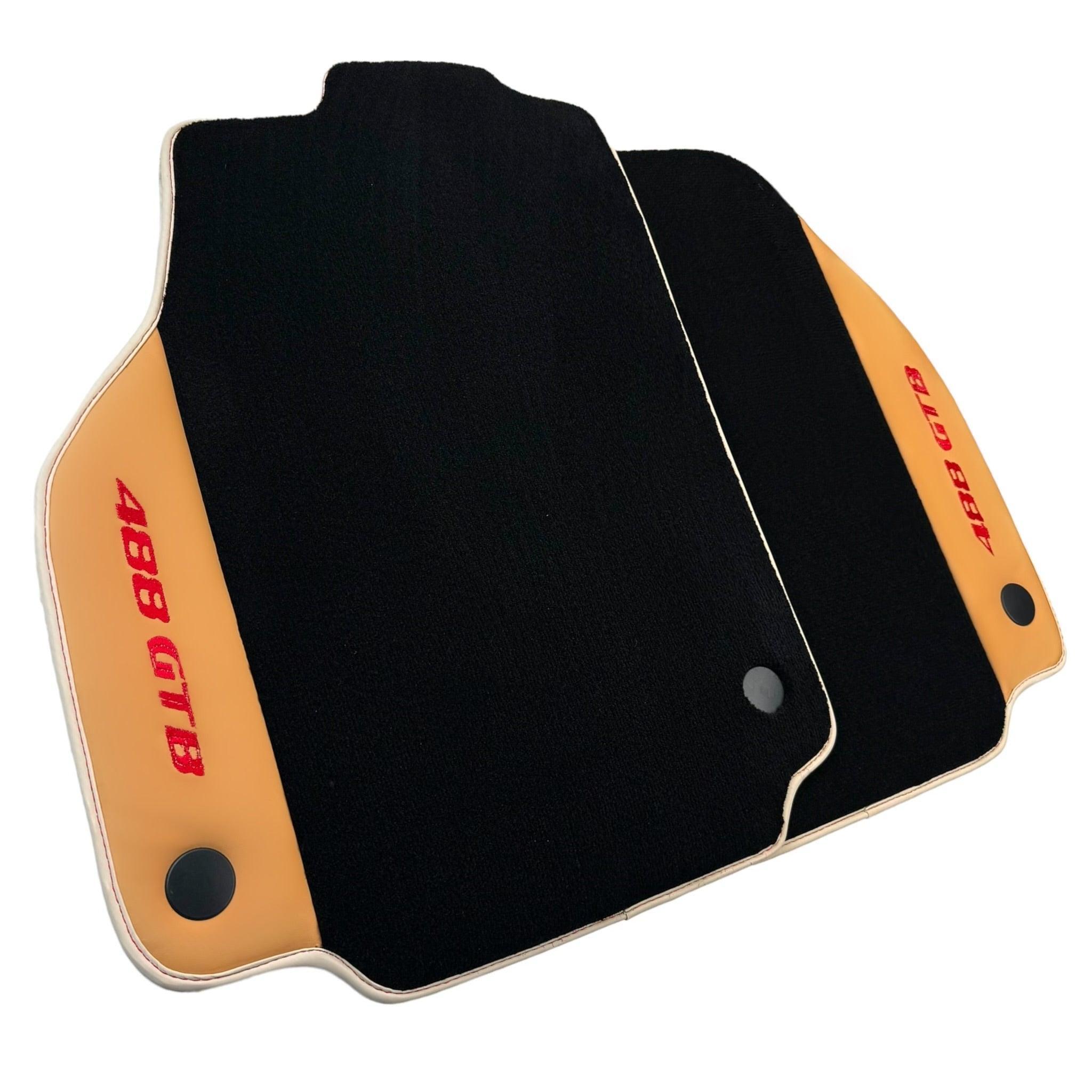 Czarne dywaniki samochodowe do Ferrari 488 GTB (2015-2022) z beżową skórą Nappa