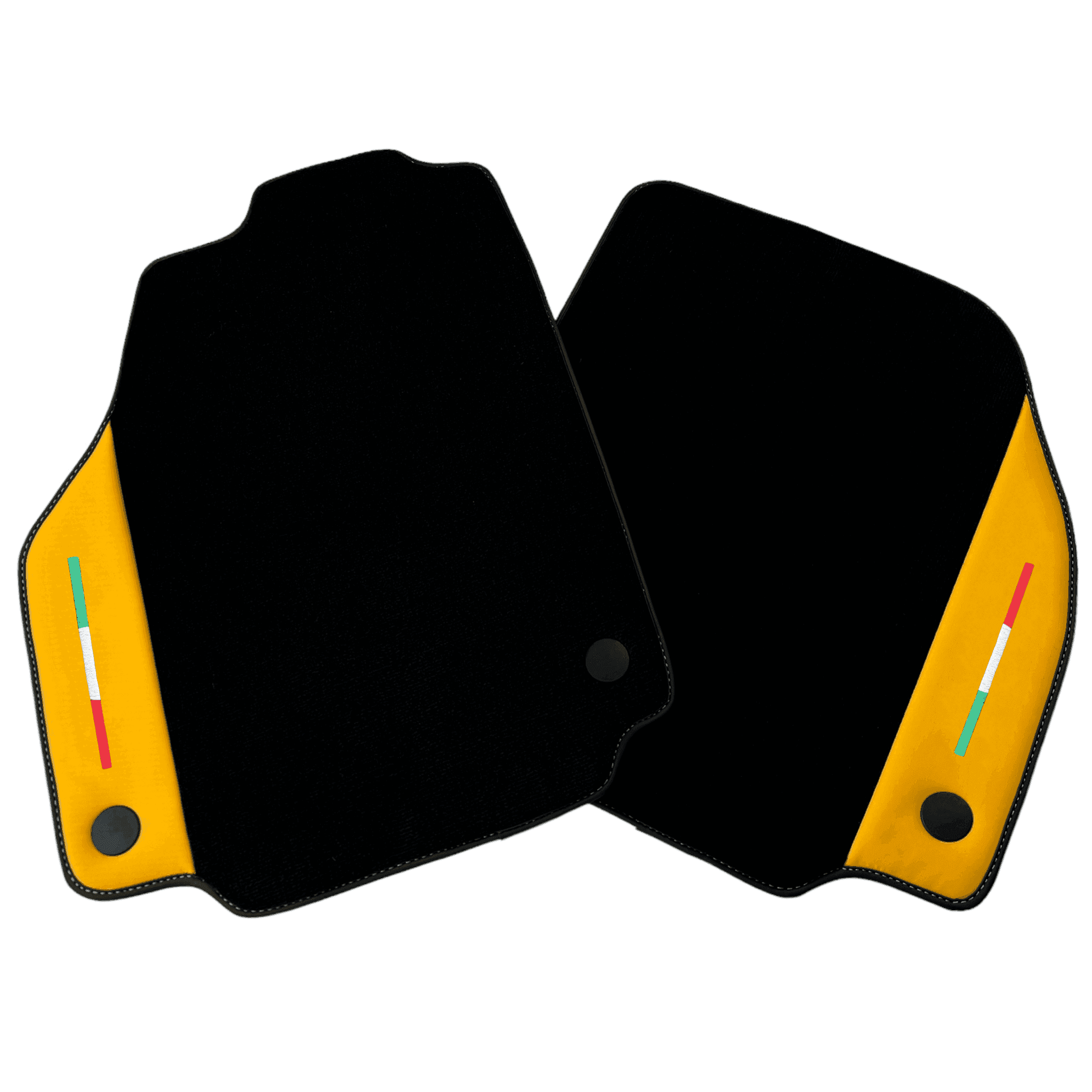 Czarne dywaniki samochodowe do Ferrari 488 GTB (2016-2022) z żółtą skórą | Wydanie włoskie