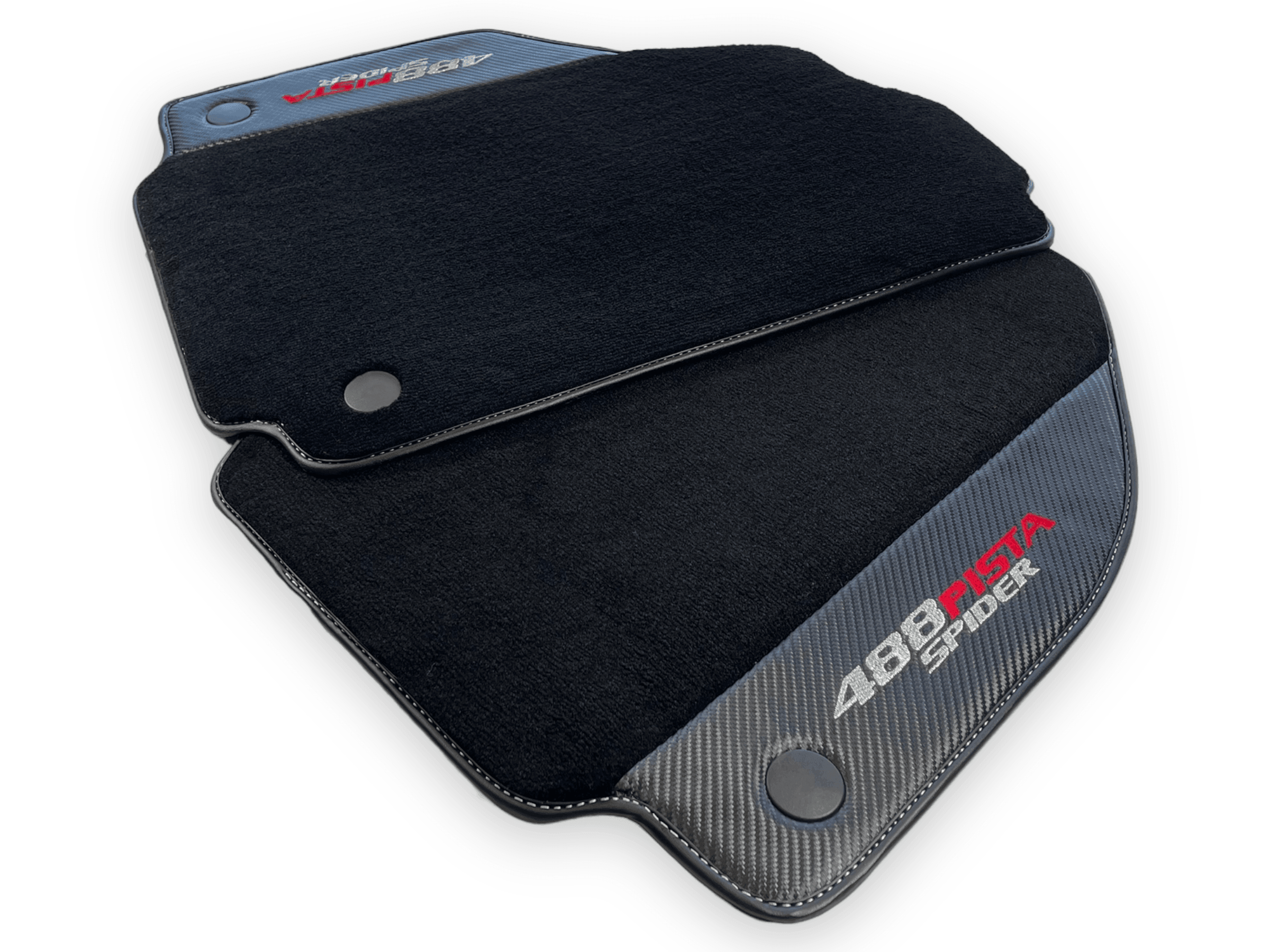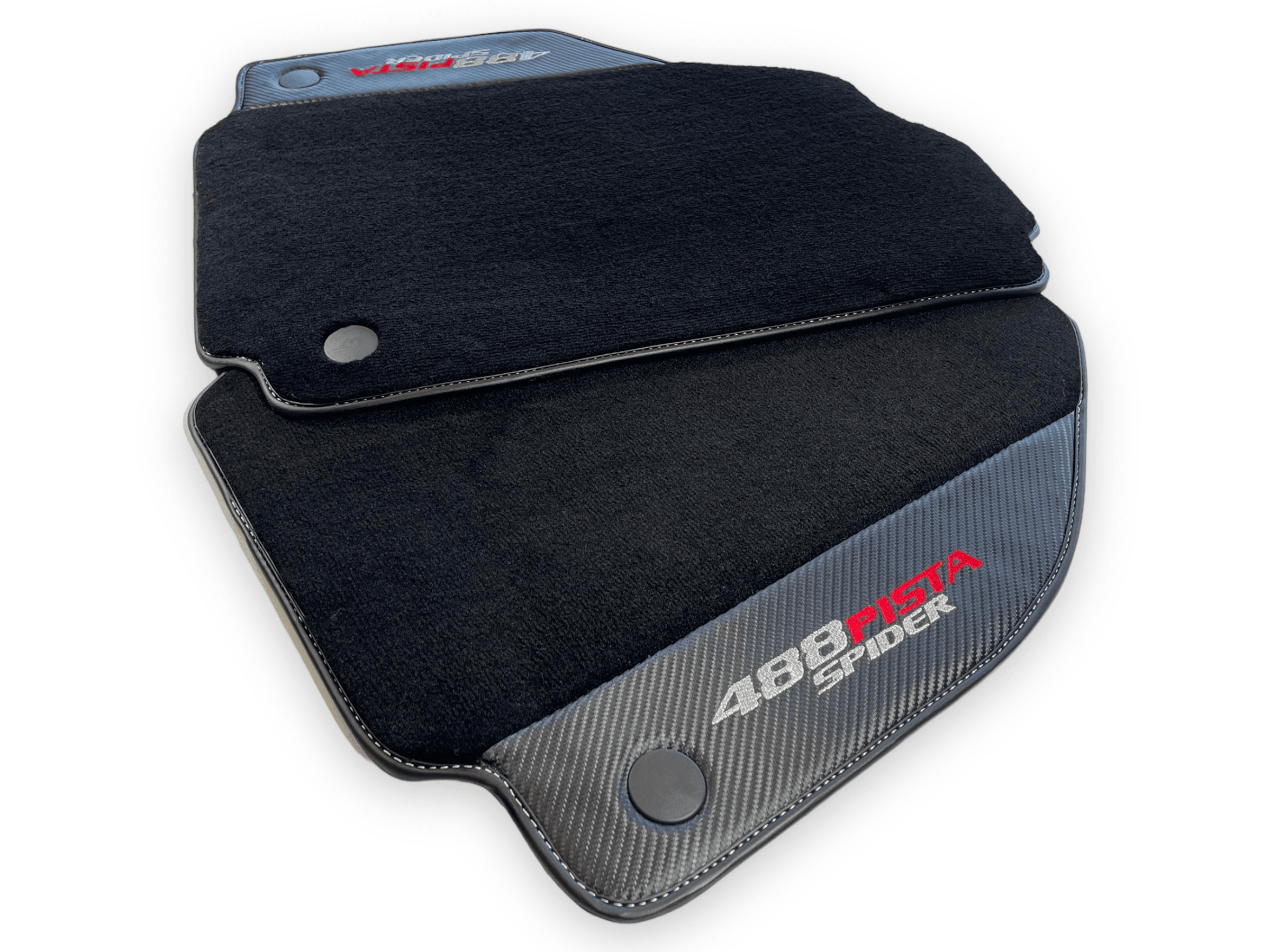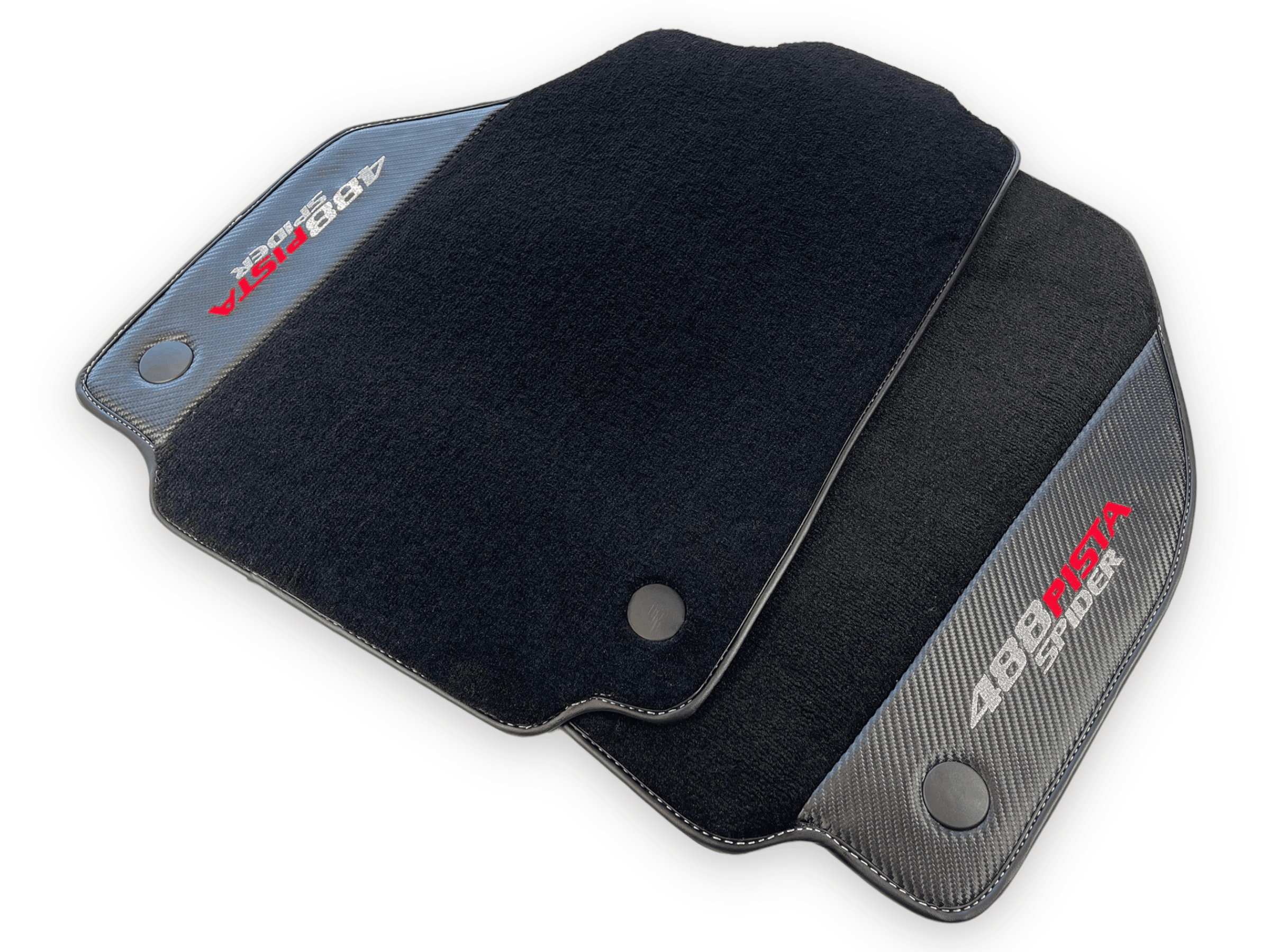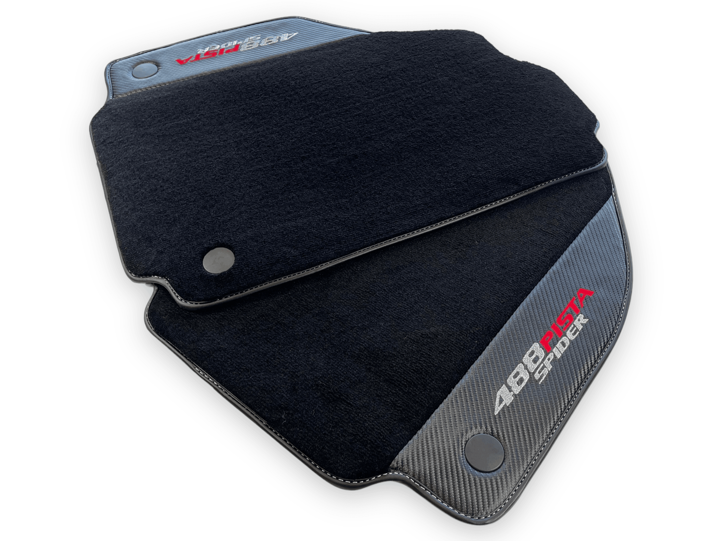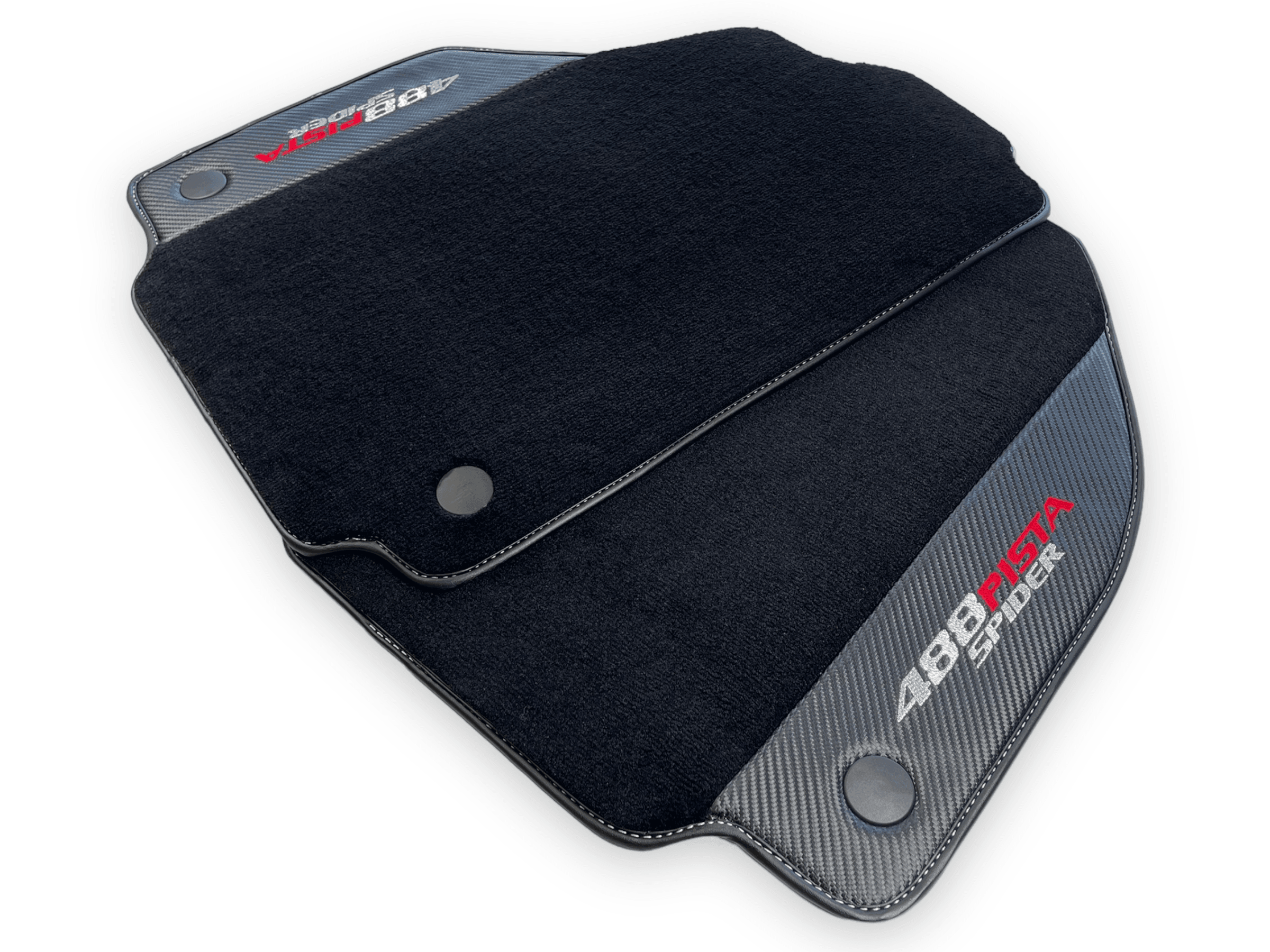 Czarne dywaniki samochodowe dla Ferrari 488 Pista Spider 2019-2021 z skórą z włókna węglowego