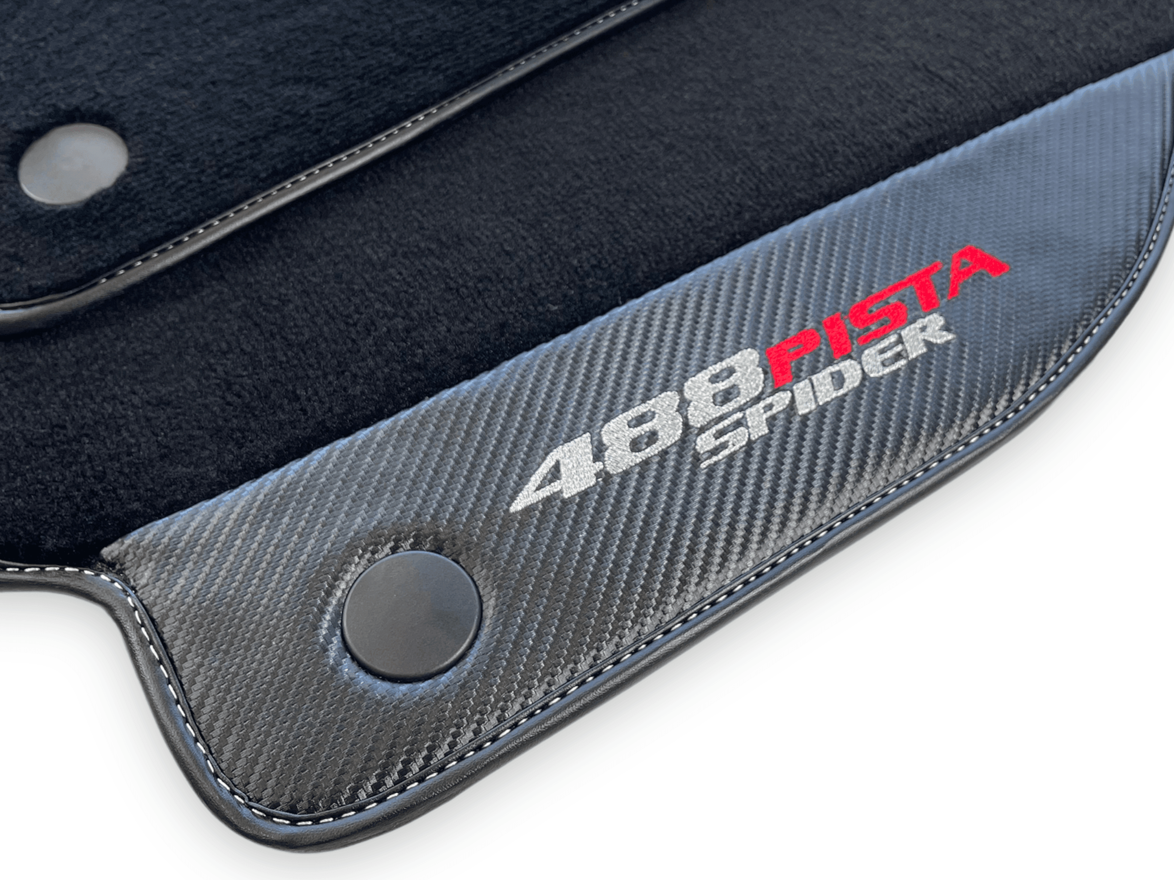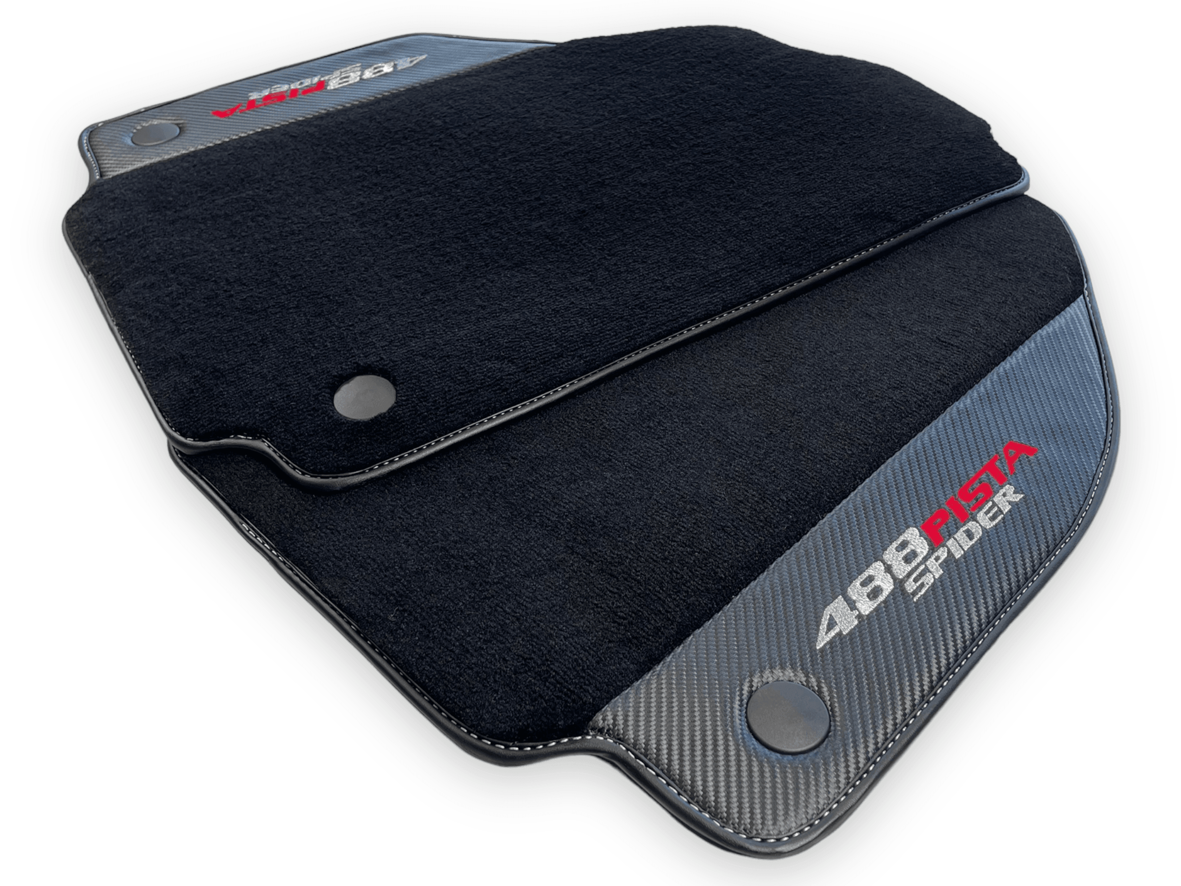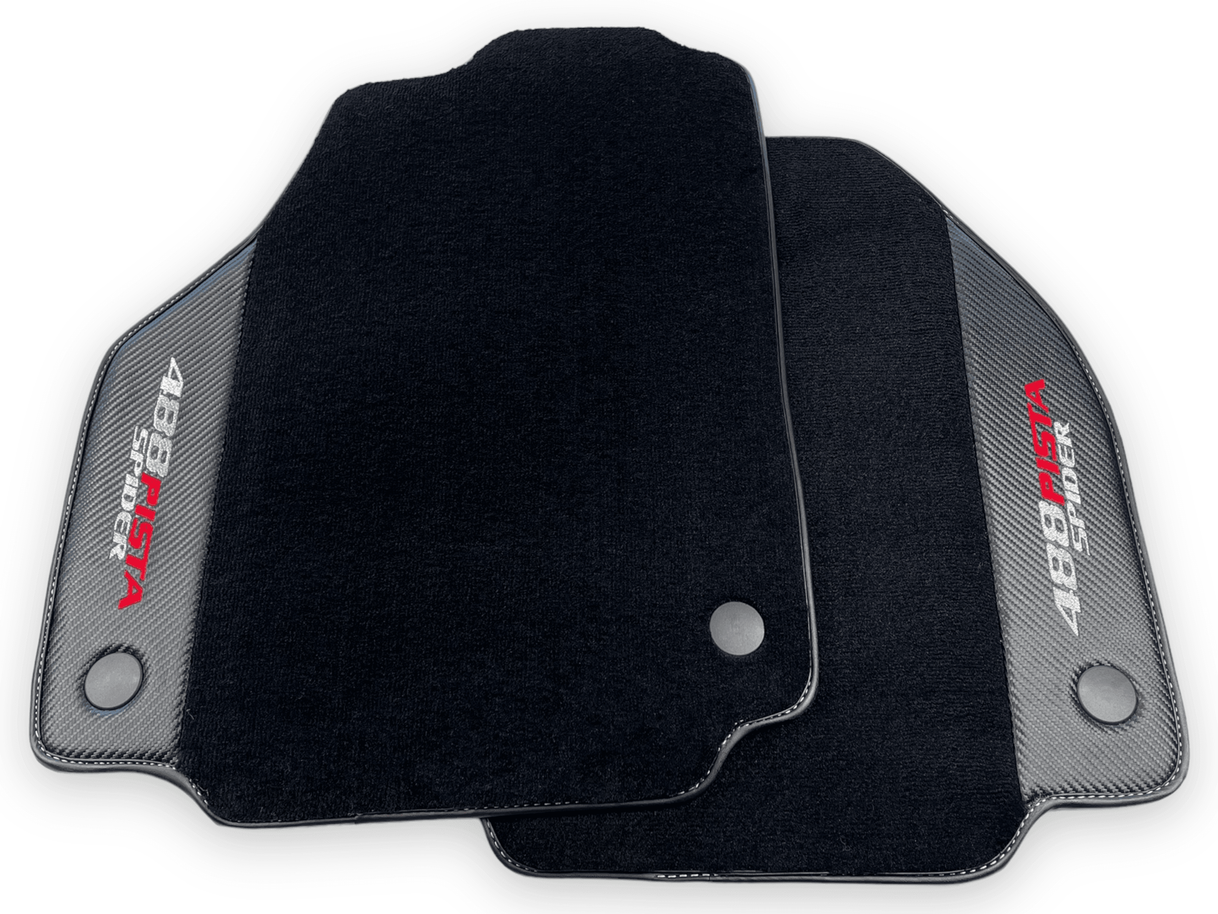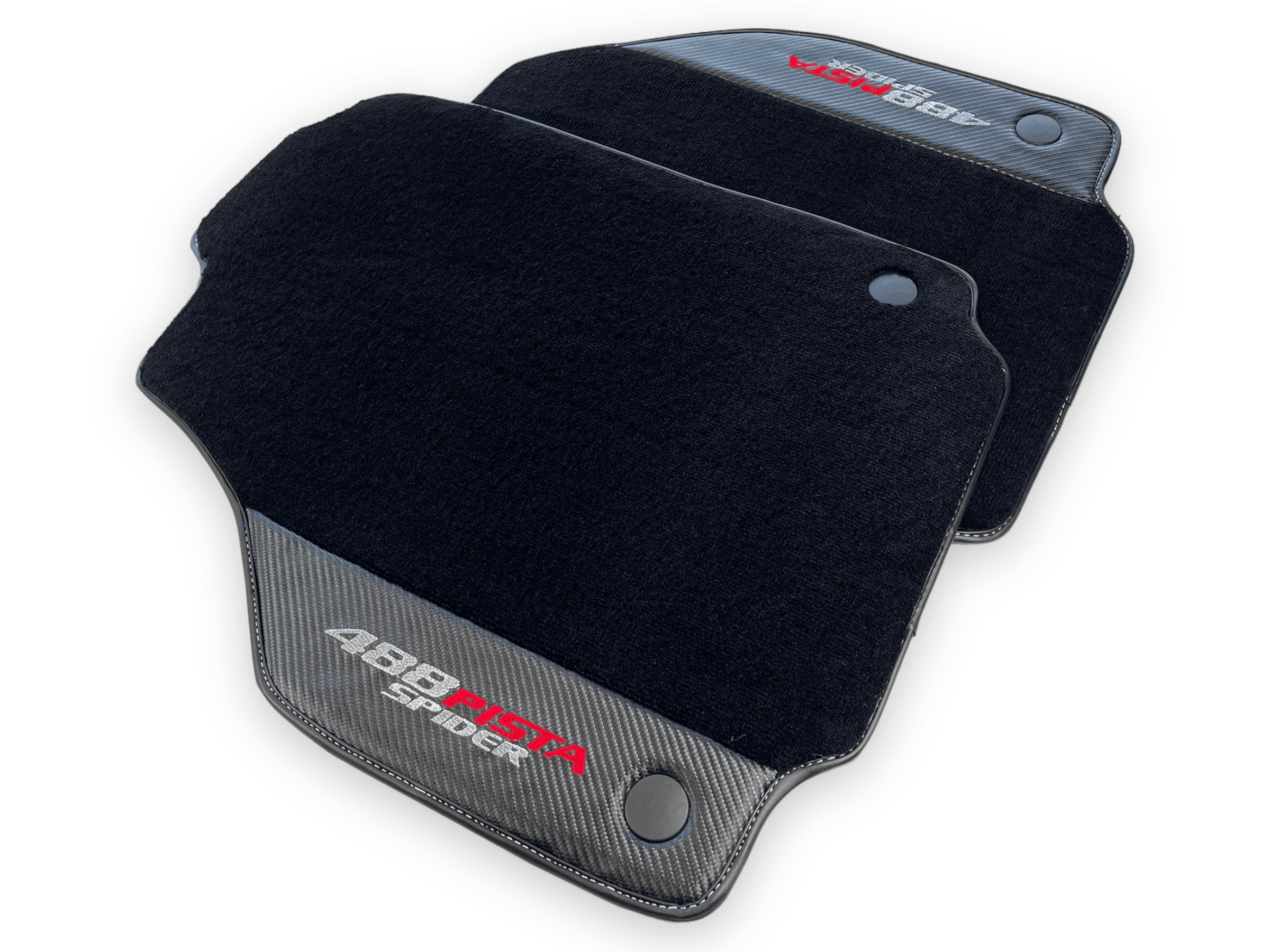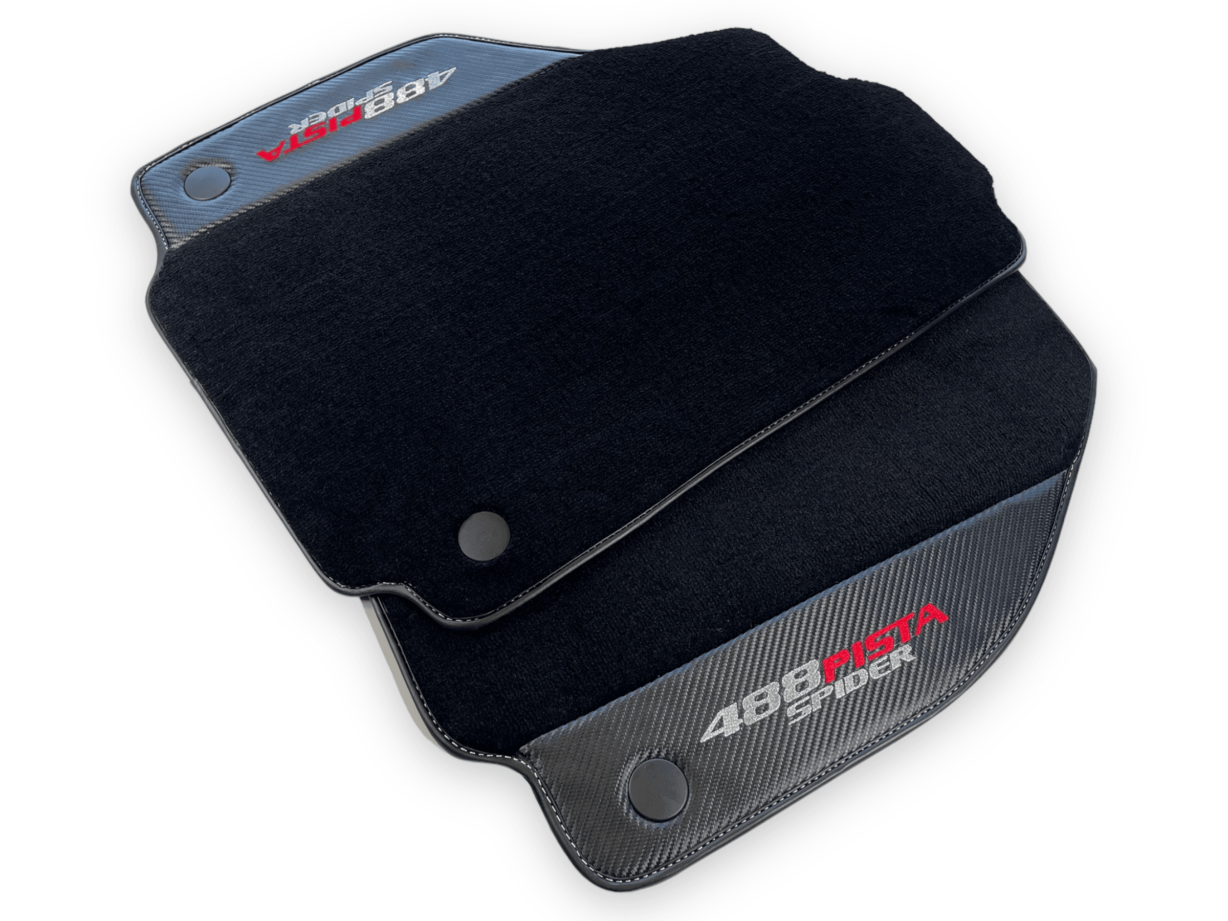 Czarne dywaniki samochodowe dla Ferrari 488 Pista Spider 2019-2021 z skórą z włókna węglowego