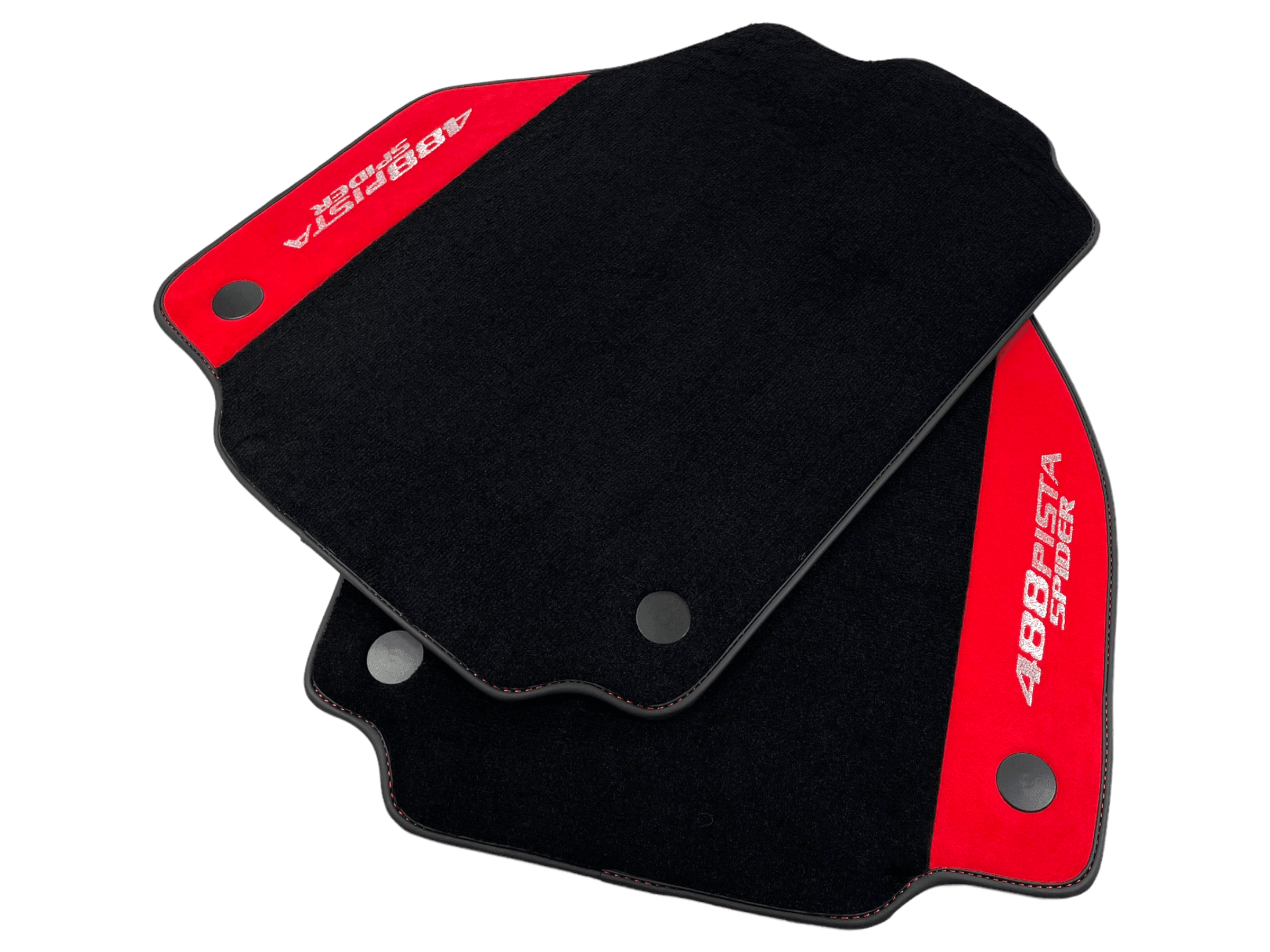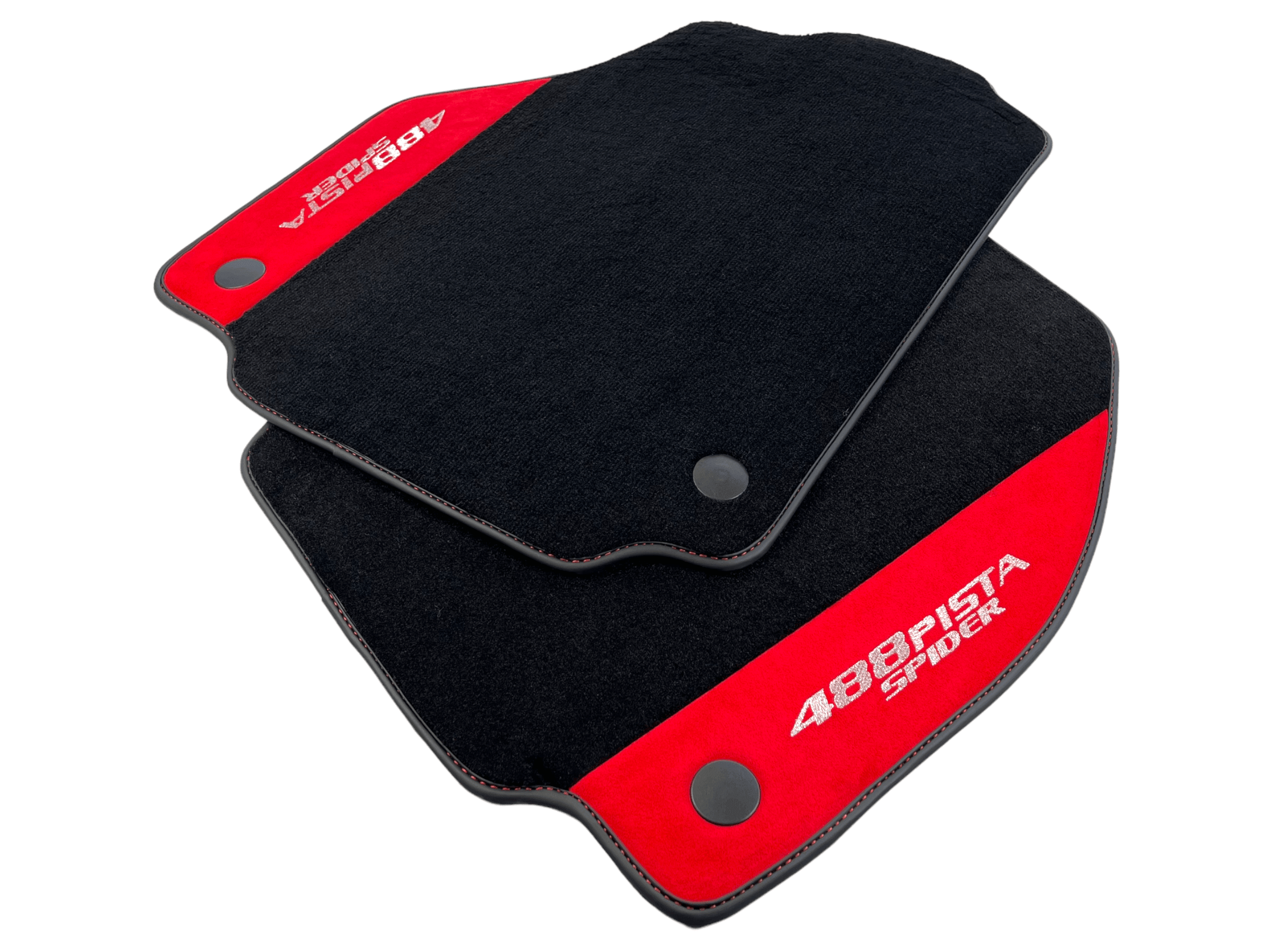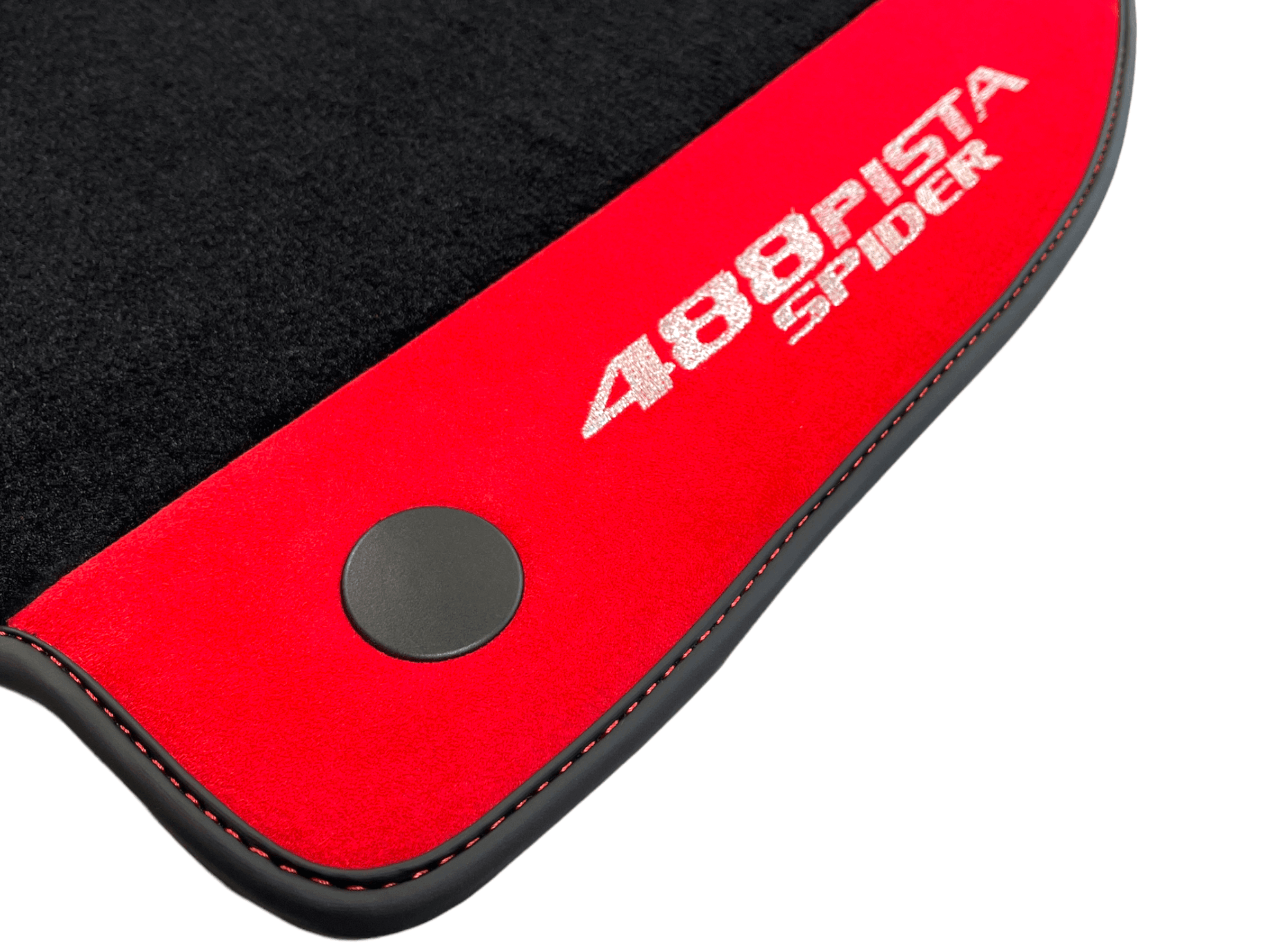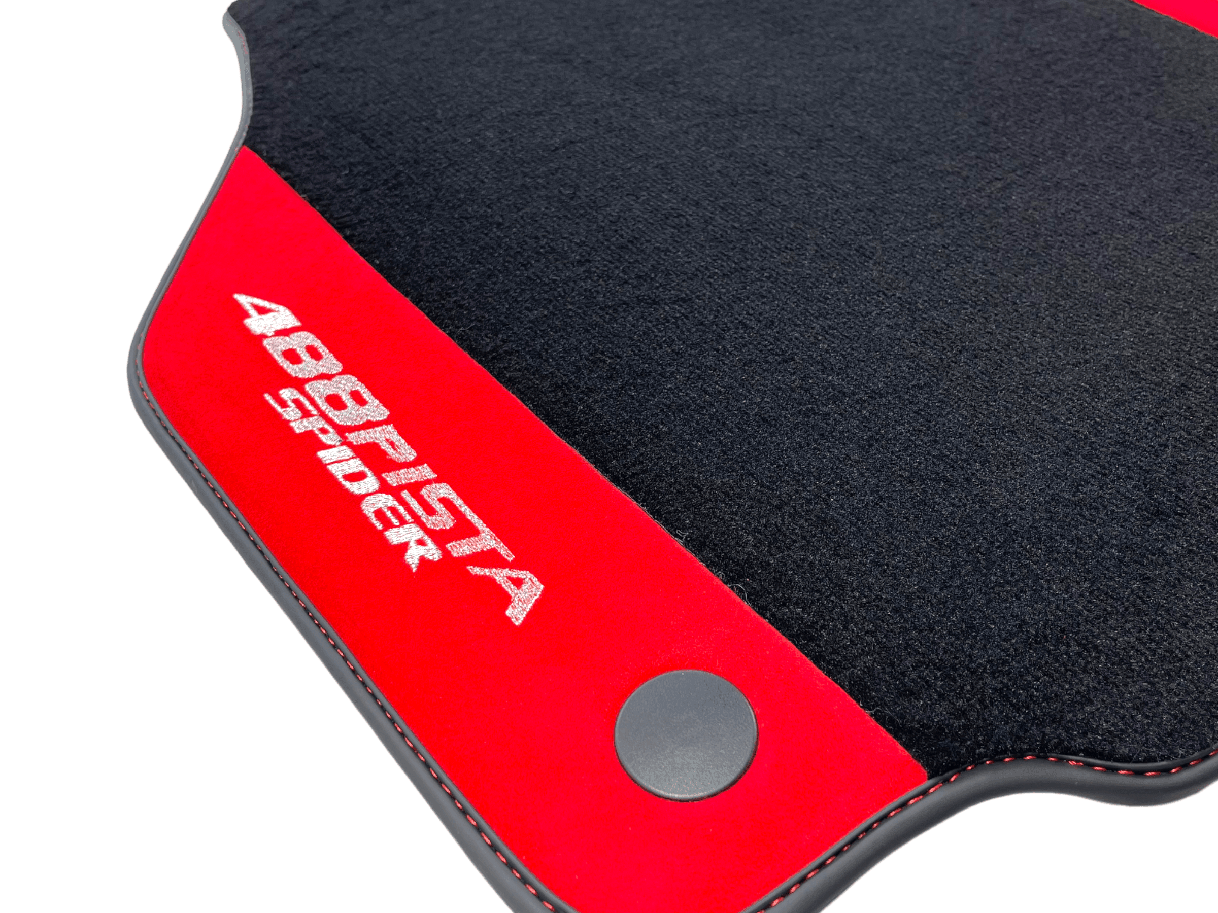 Czarne Dywaniki Samochodowe Do Ferrari 488 Pista Spider 2019-2021 Z Czerwoną Skórą Alcantara