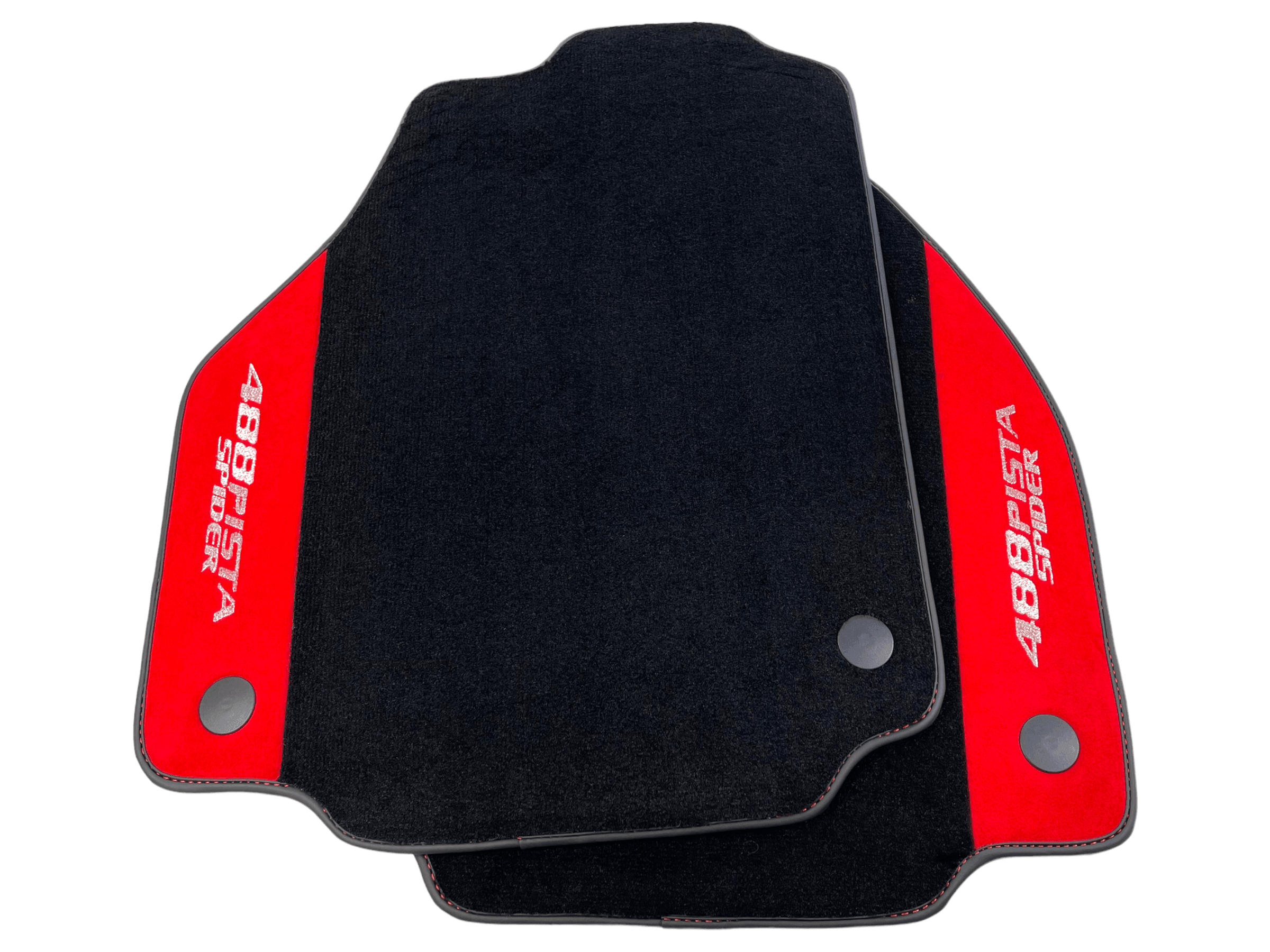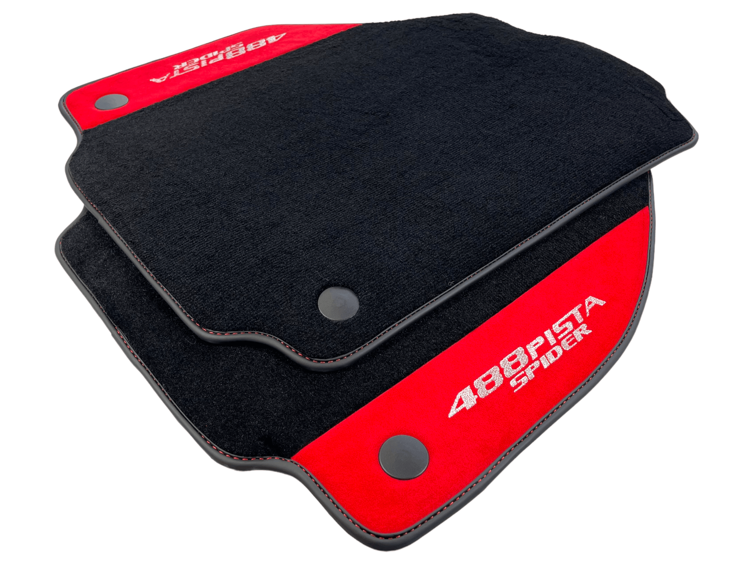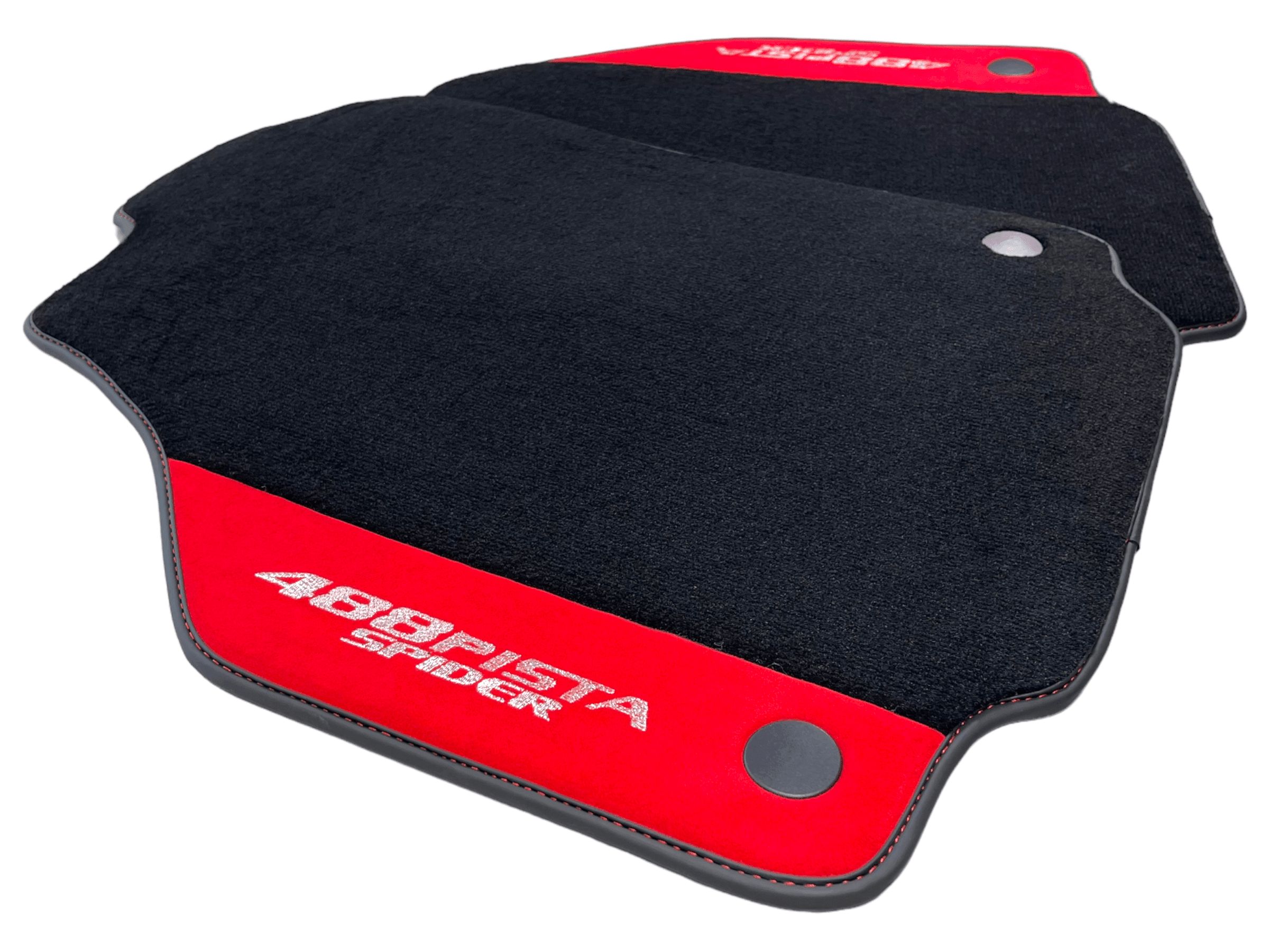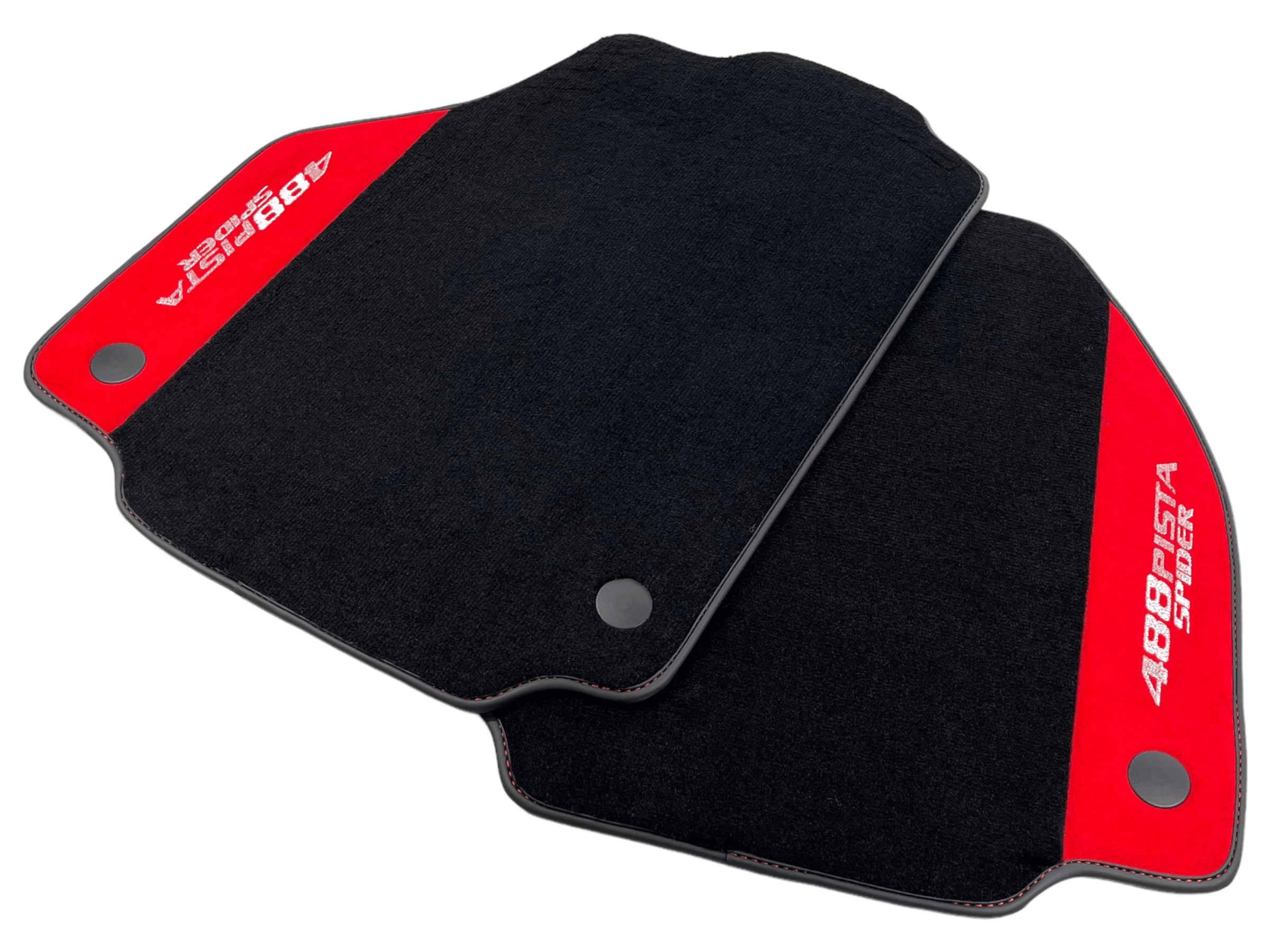 Czarne Dywaniki Samochodowe Do Ferrari 488 Pista Spider 2019-2021 Z Czerwoną Skórą Alcantara