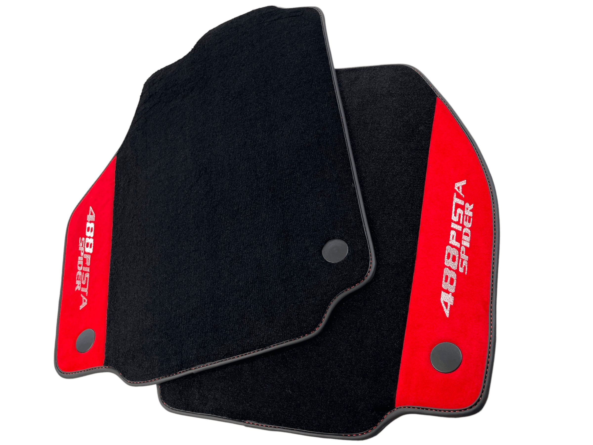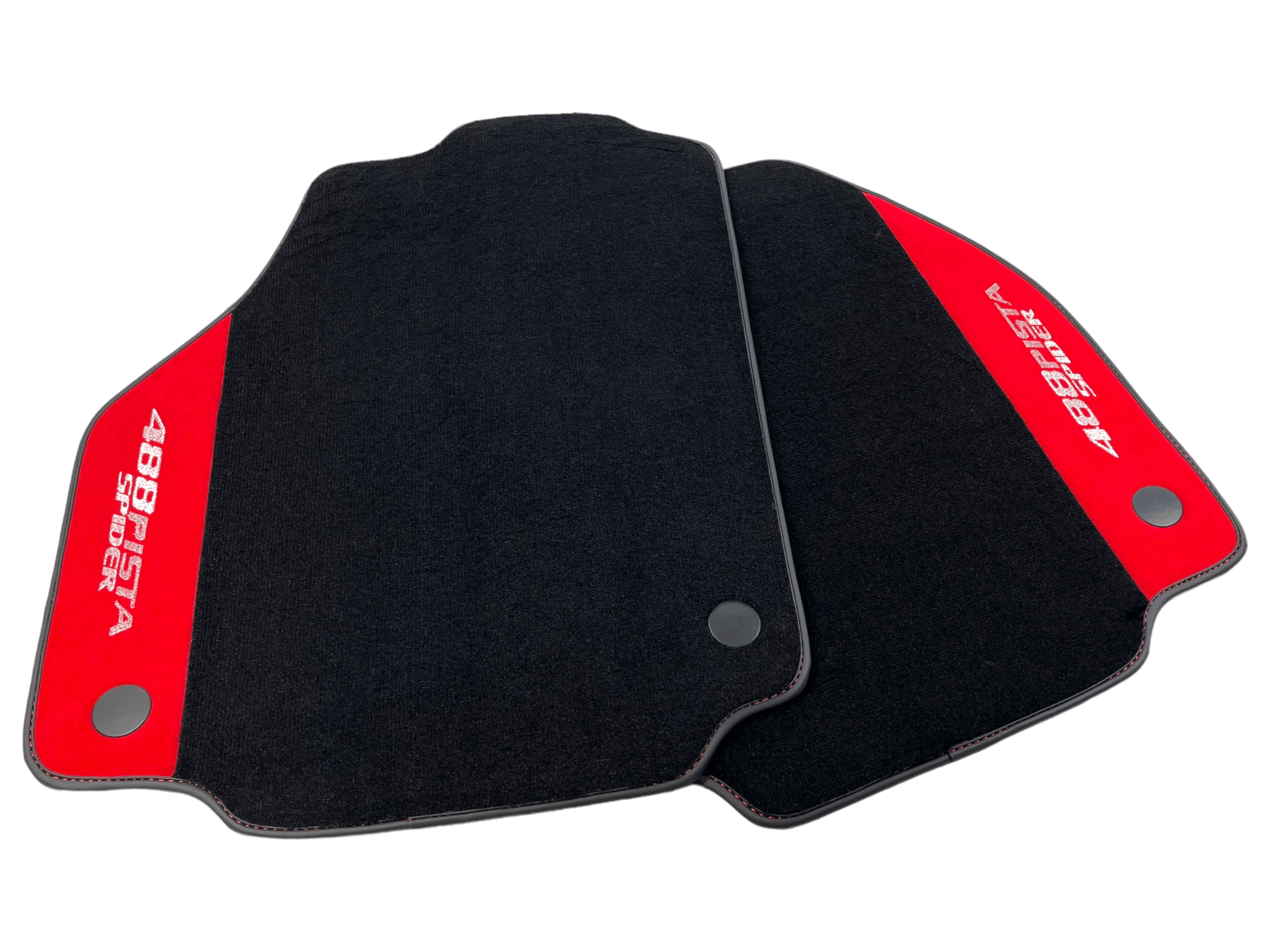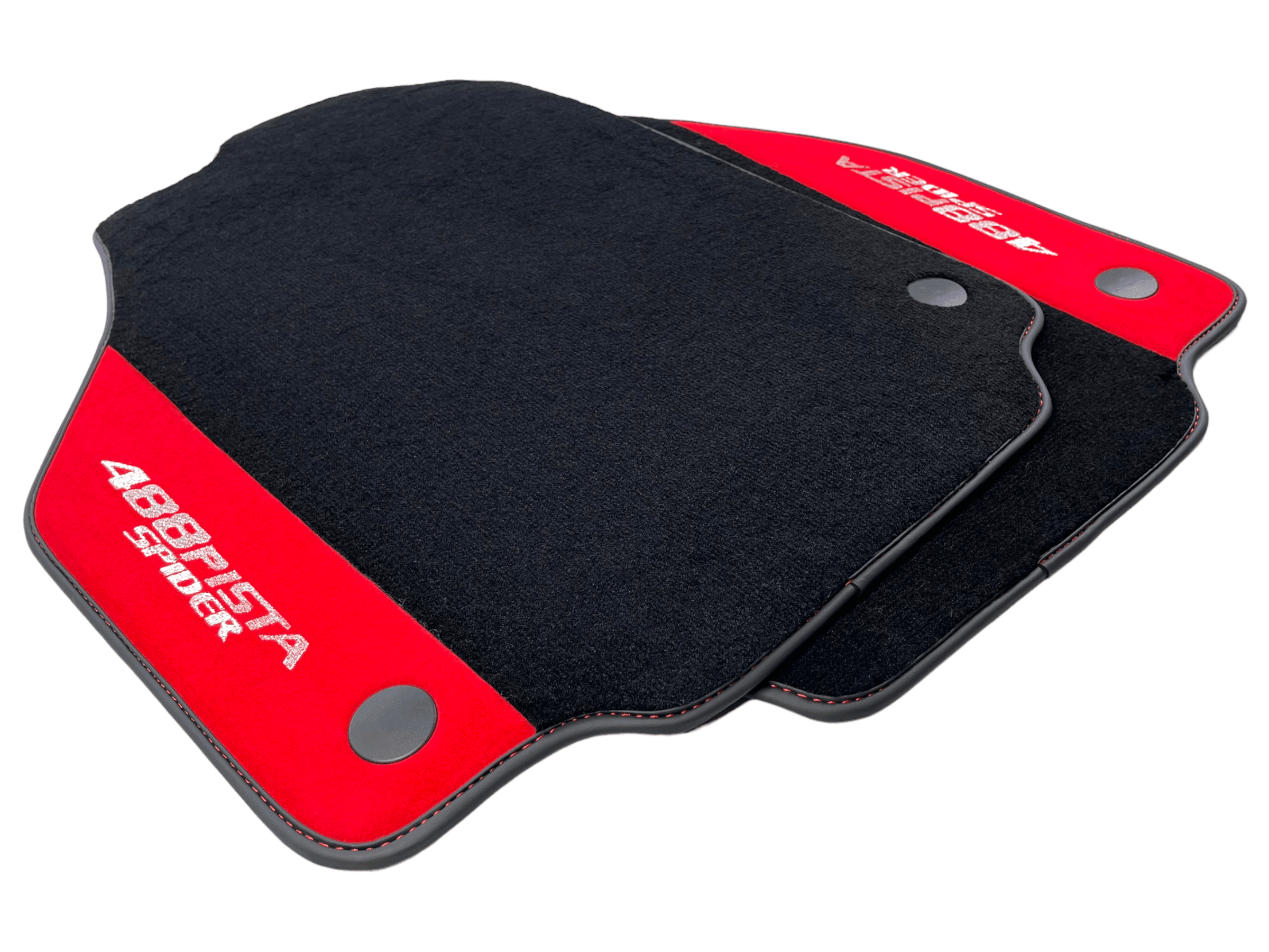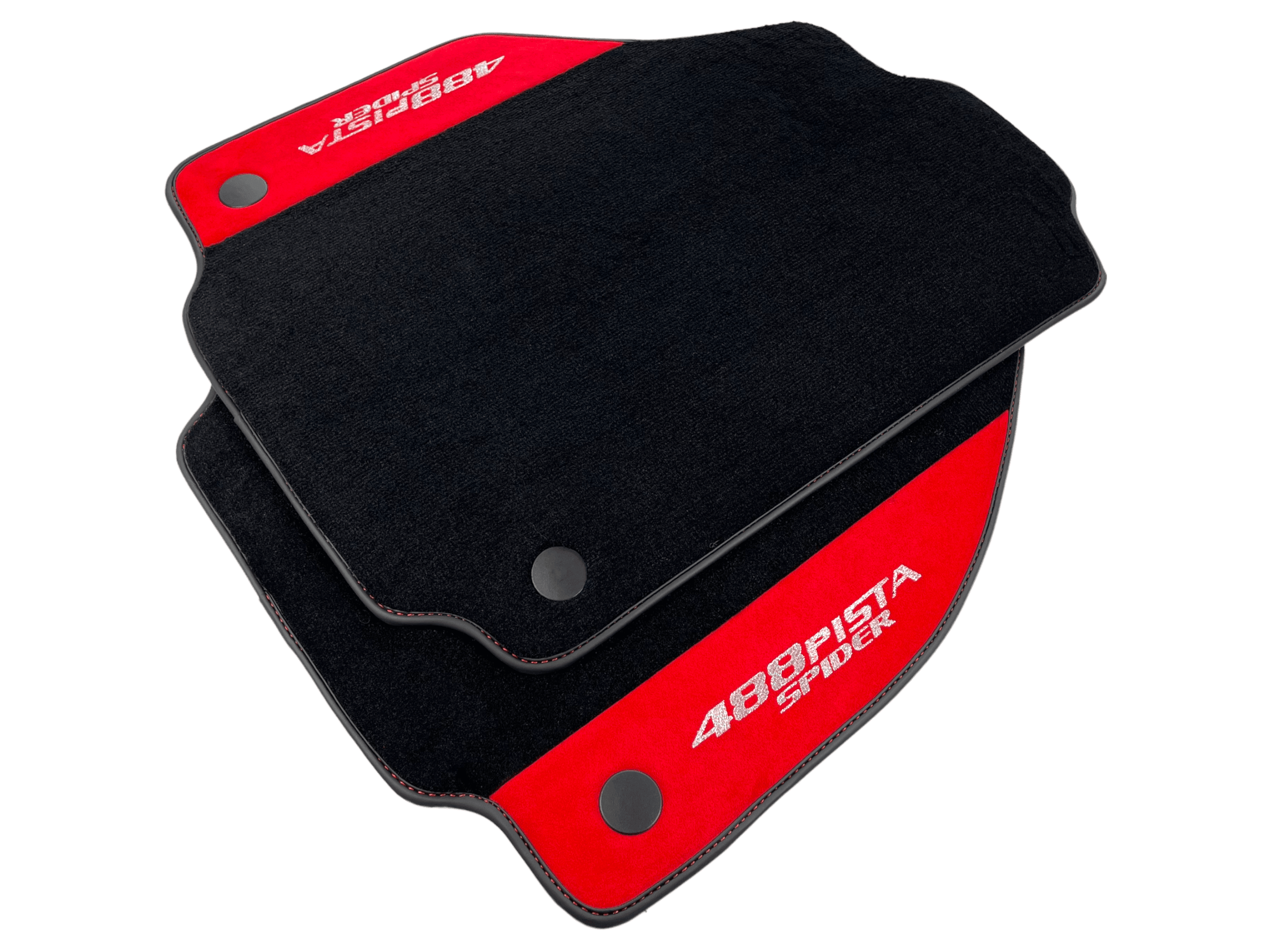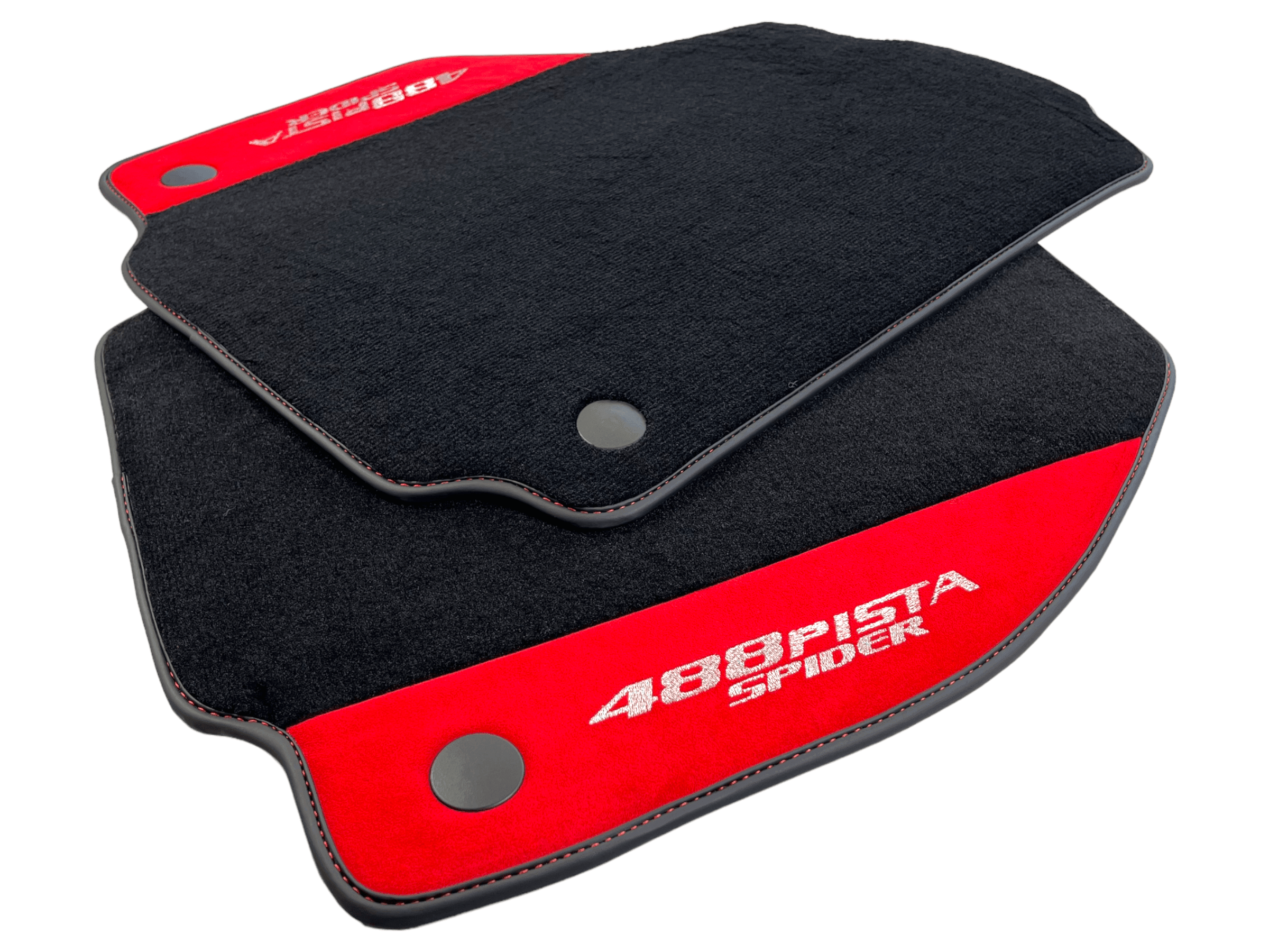 Czarne Dywaniki Samochodowe Do Ferrari 488 Pista Spider 2019-2021 Z Czerwoną Skórą Alcantara