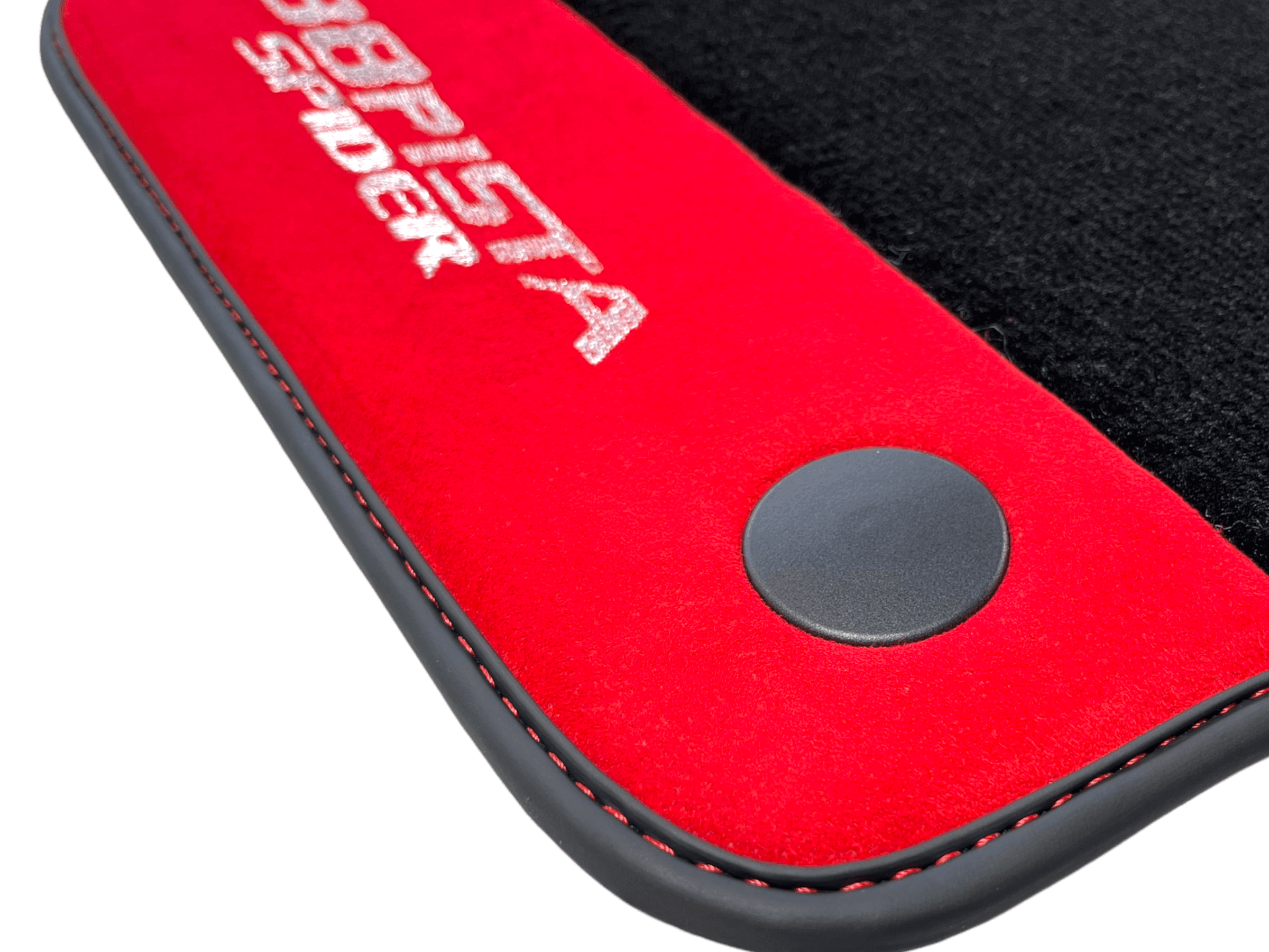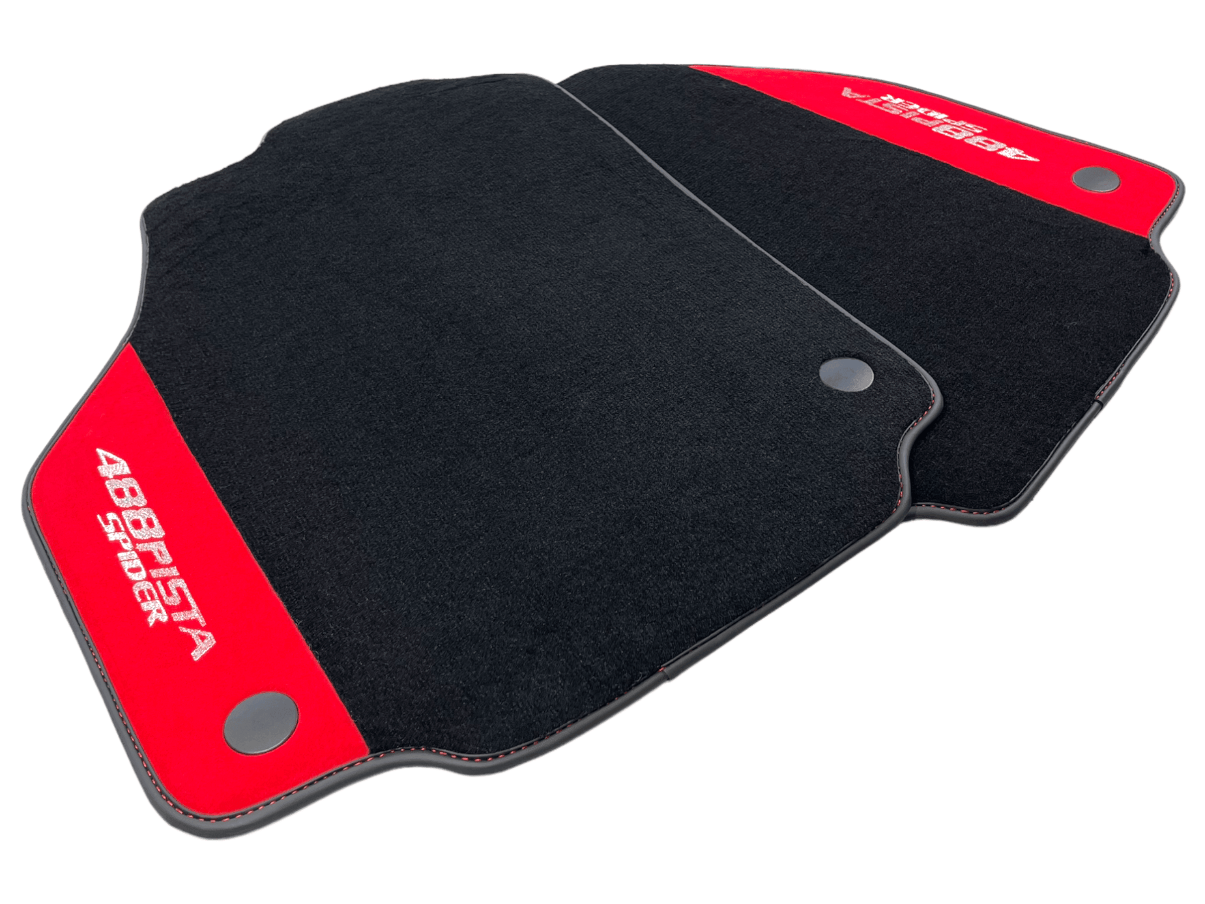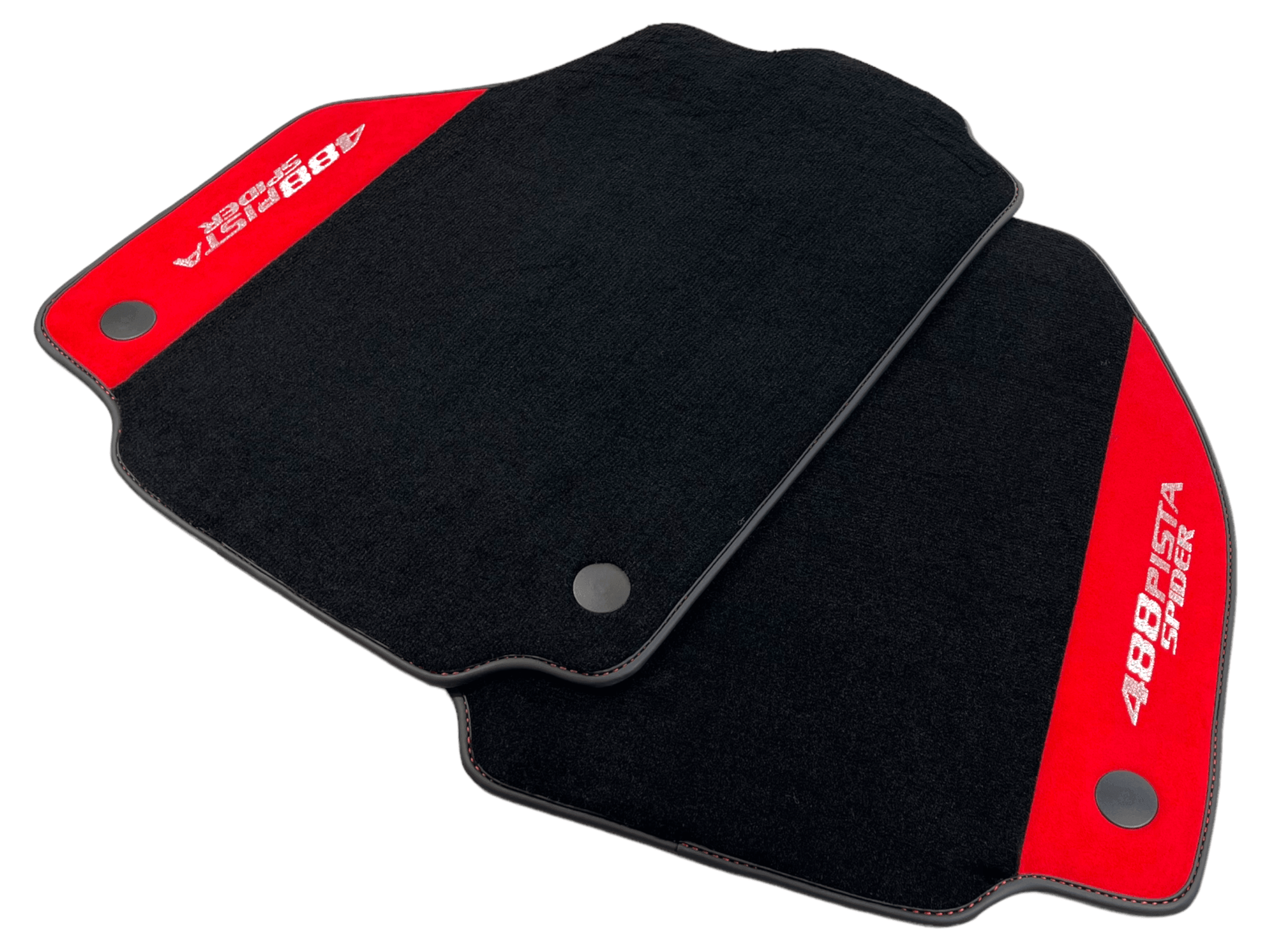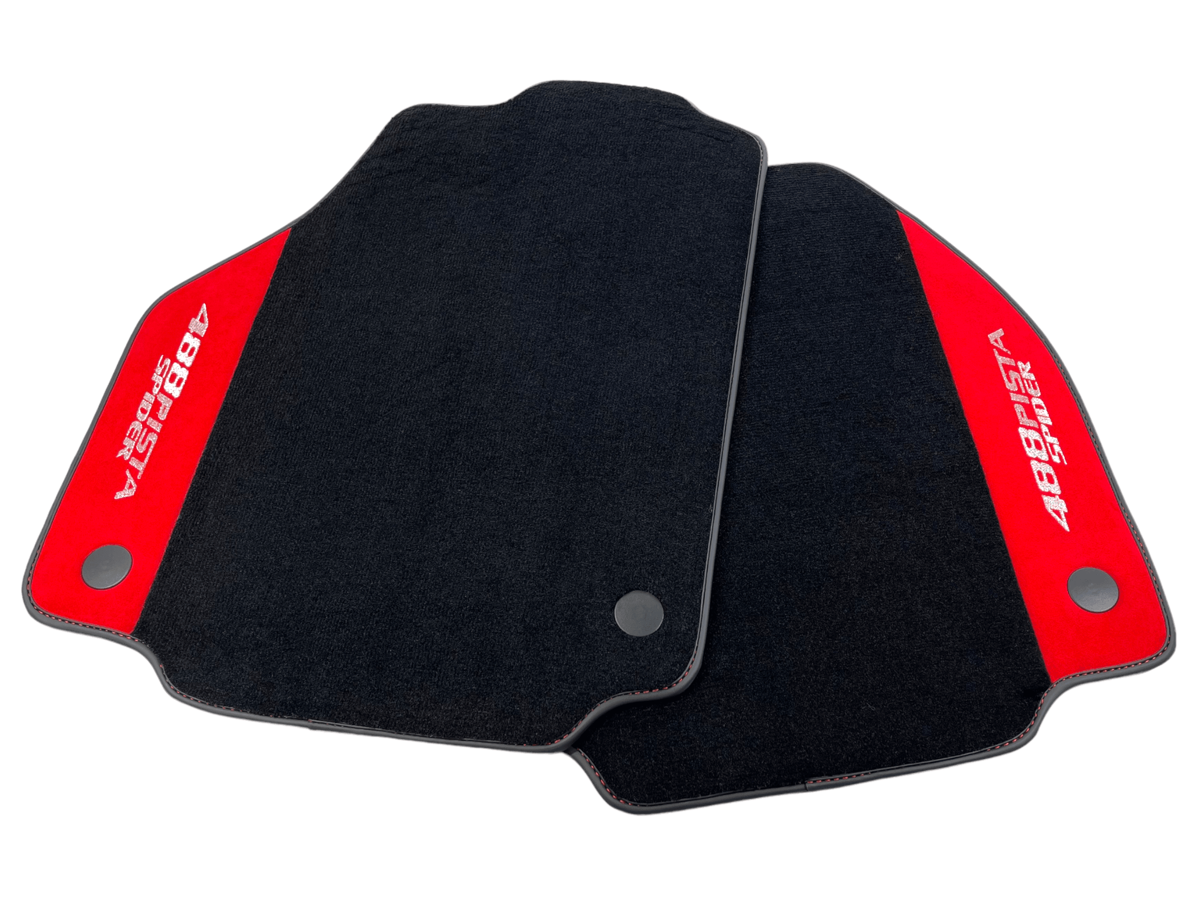 Czarne Dywaniki Samochodowe Do Ferrari 488 Pista Spider 2019-2021 Z Czerwoną Skórą Alcantara