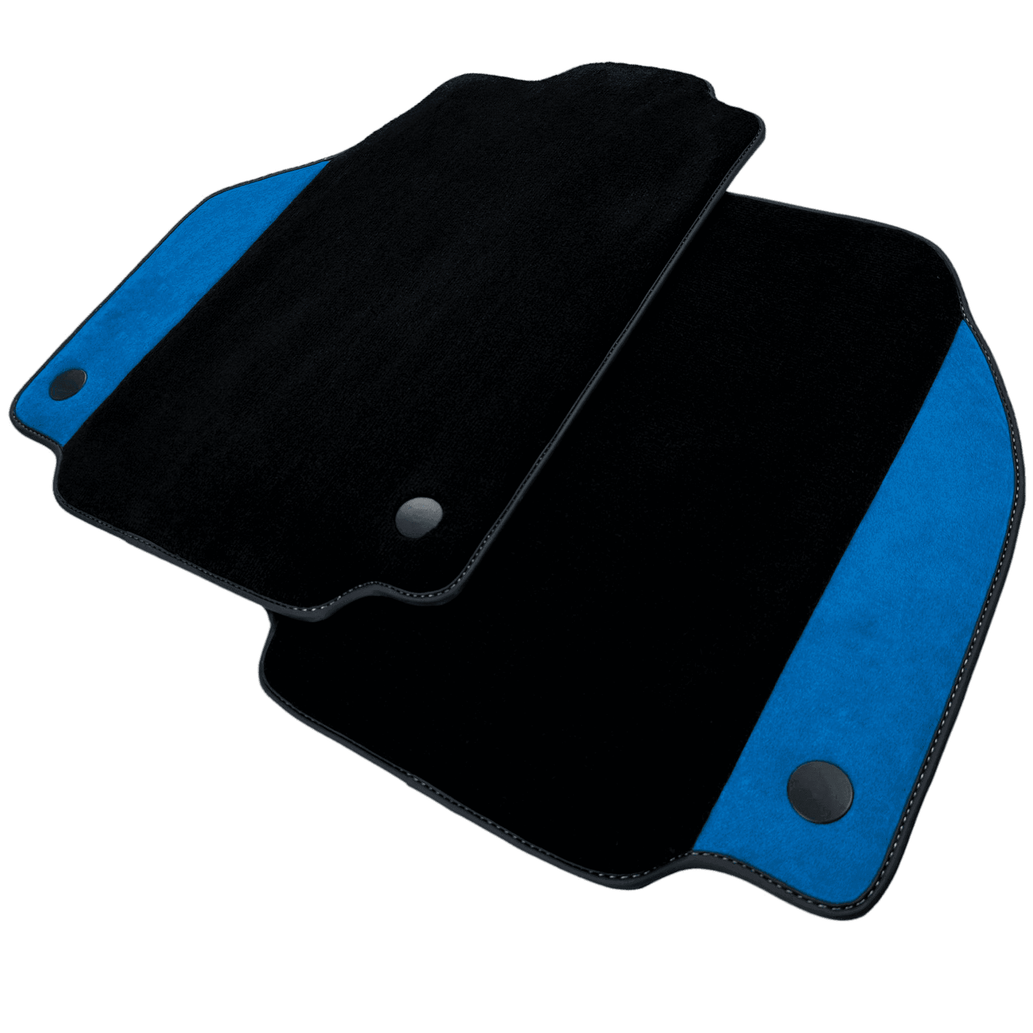 Czarne dywaniki samochodowe do Ferrari 488 Pista Spider 2019-2021 z niebieską skórą Alcantara