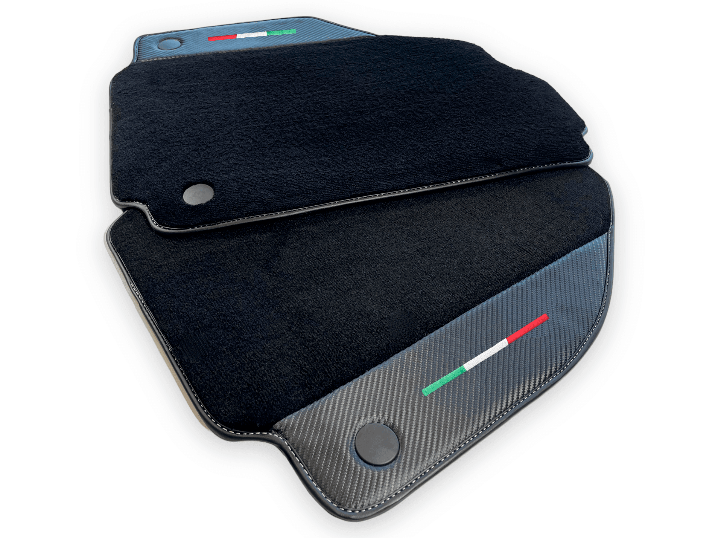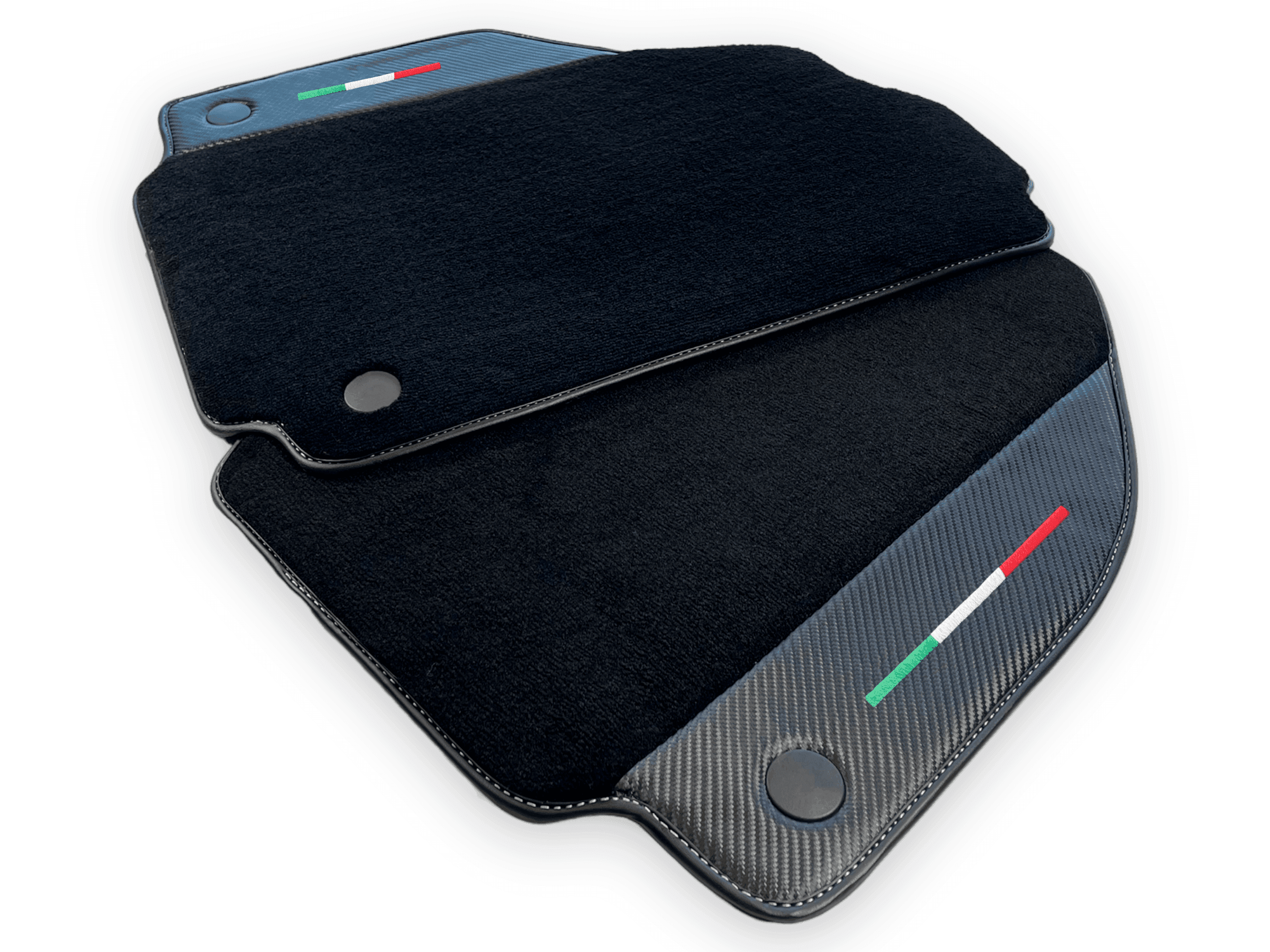Czarne maty samochodowe dla Ferrari 488 Pista Spider 2019-2021 z włókna węglowego