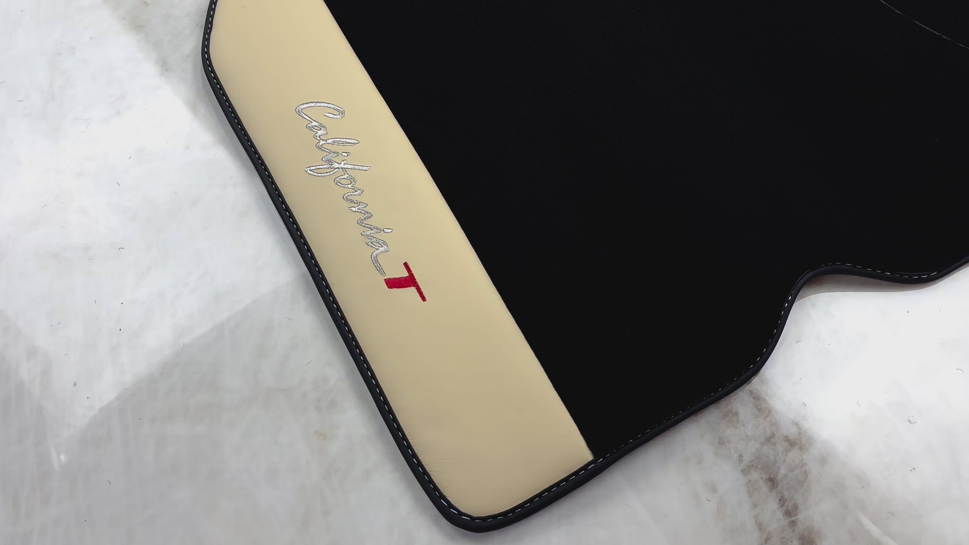 Czarne dywaniki samochodowe do Ferrari California T (2015–2018) ze skóry Crema Nappa
